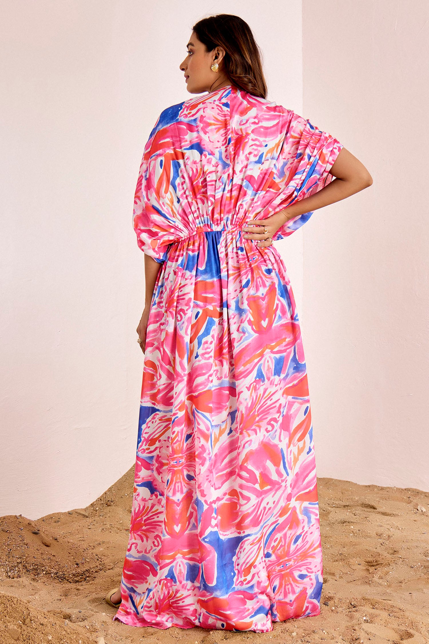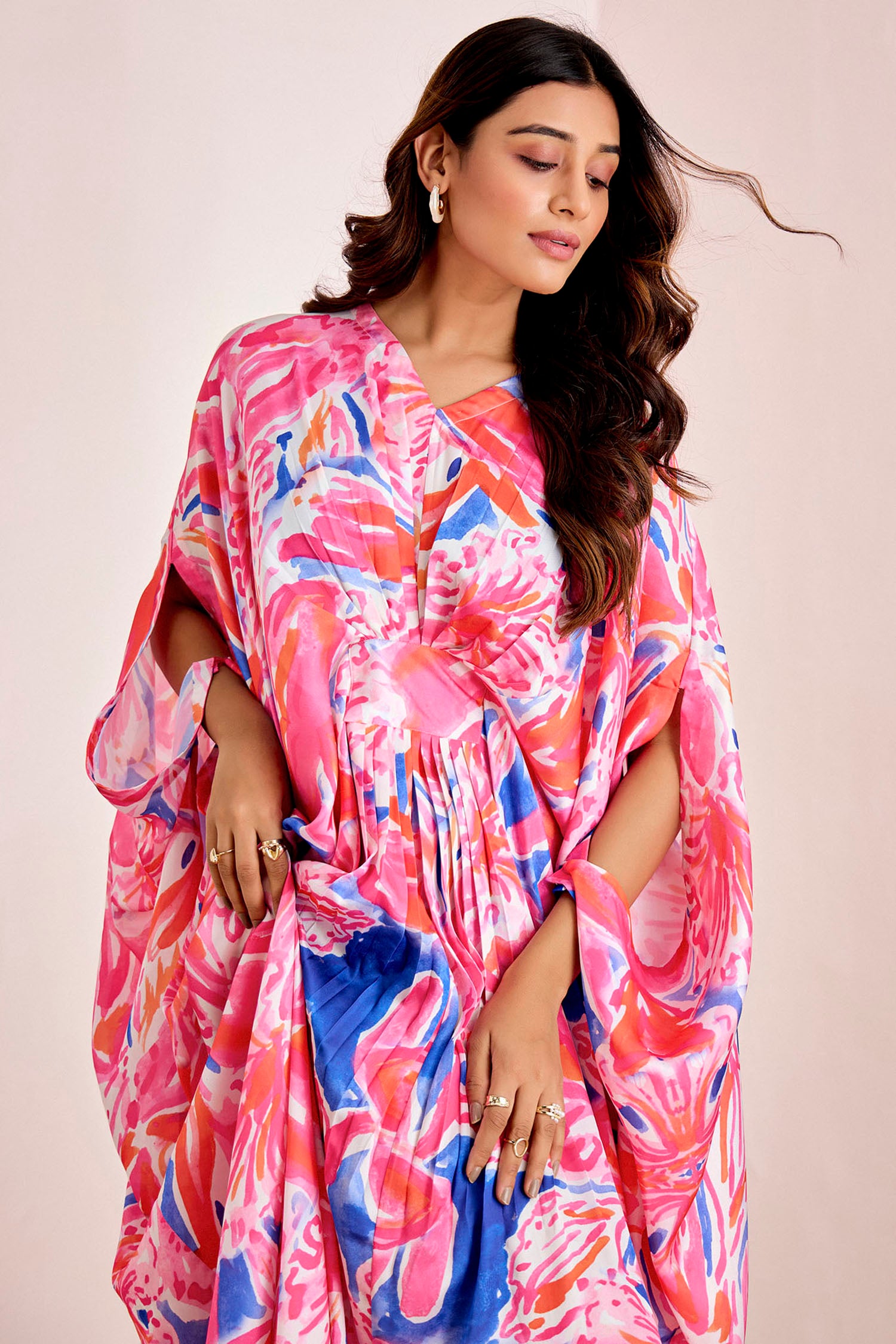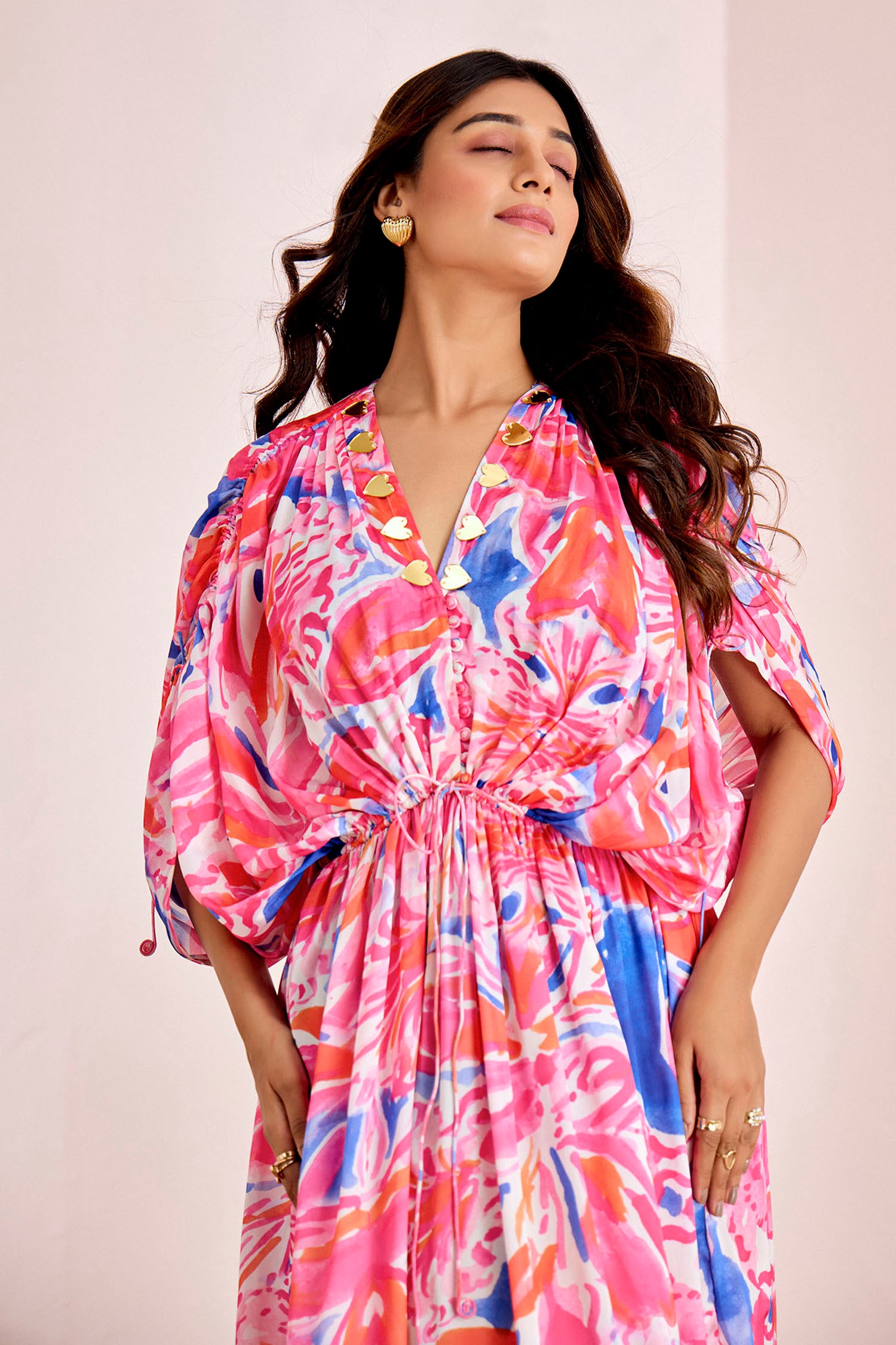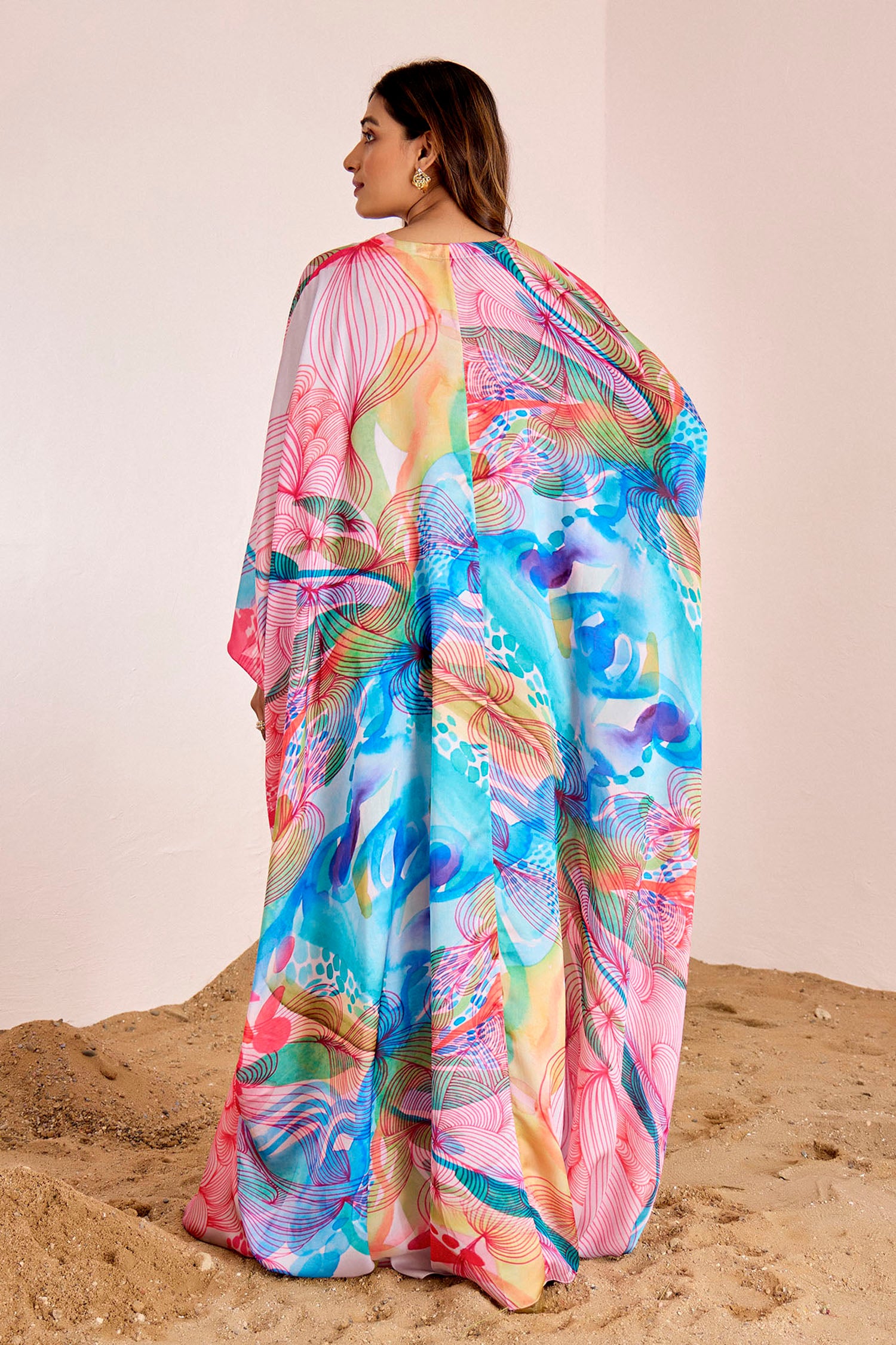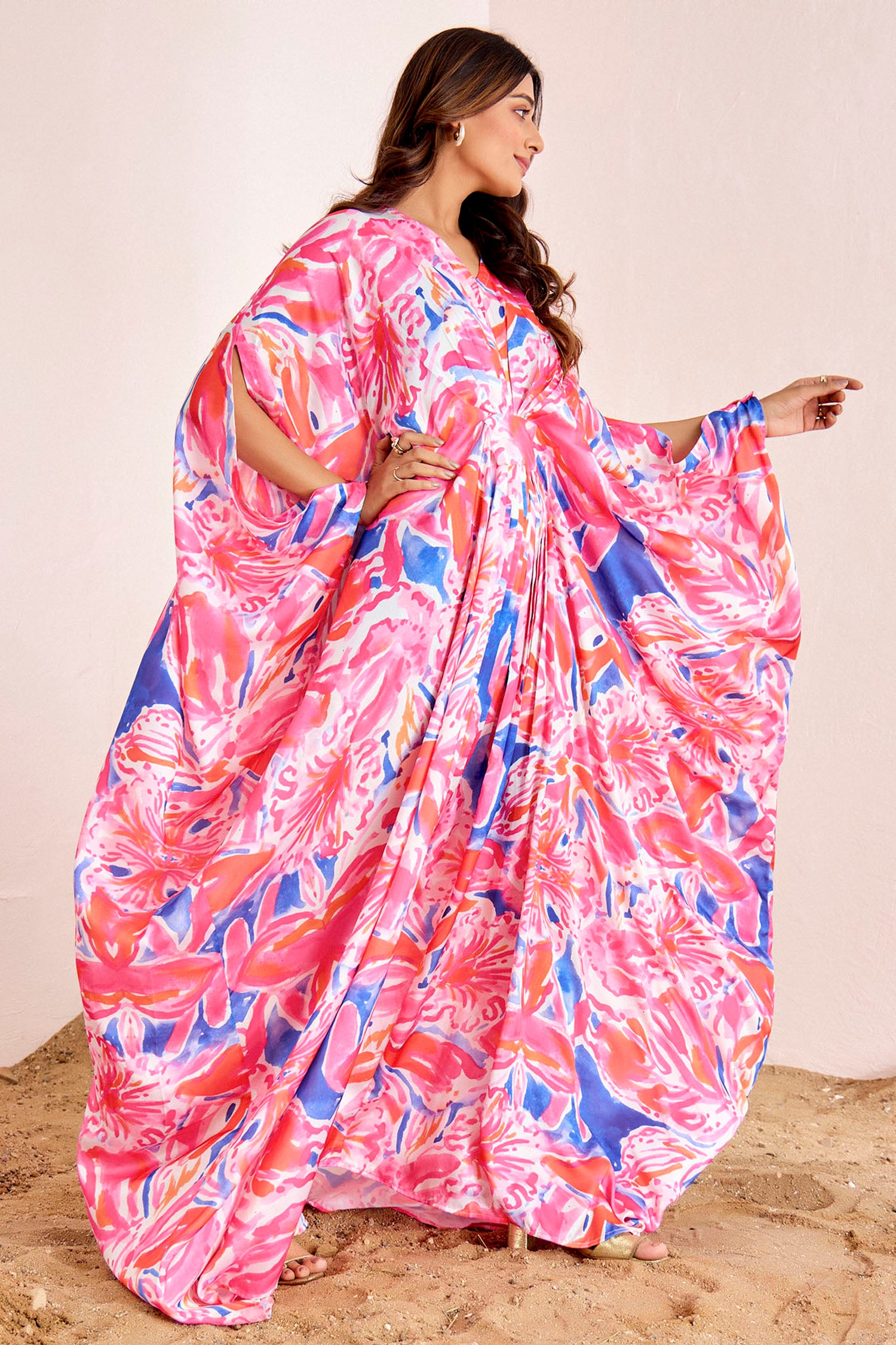Thread Embroidered Floral Gown with Gathers and Chudi Sleeves
