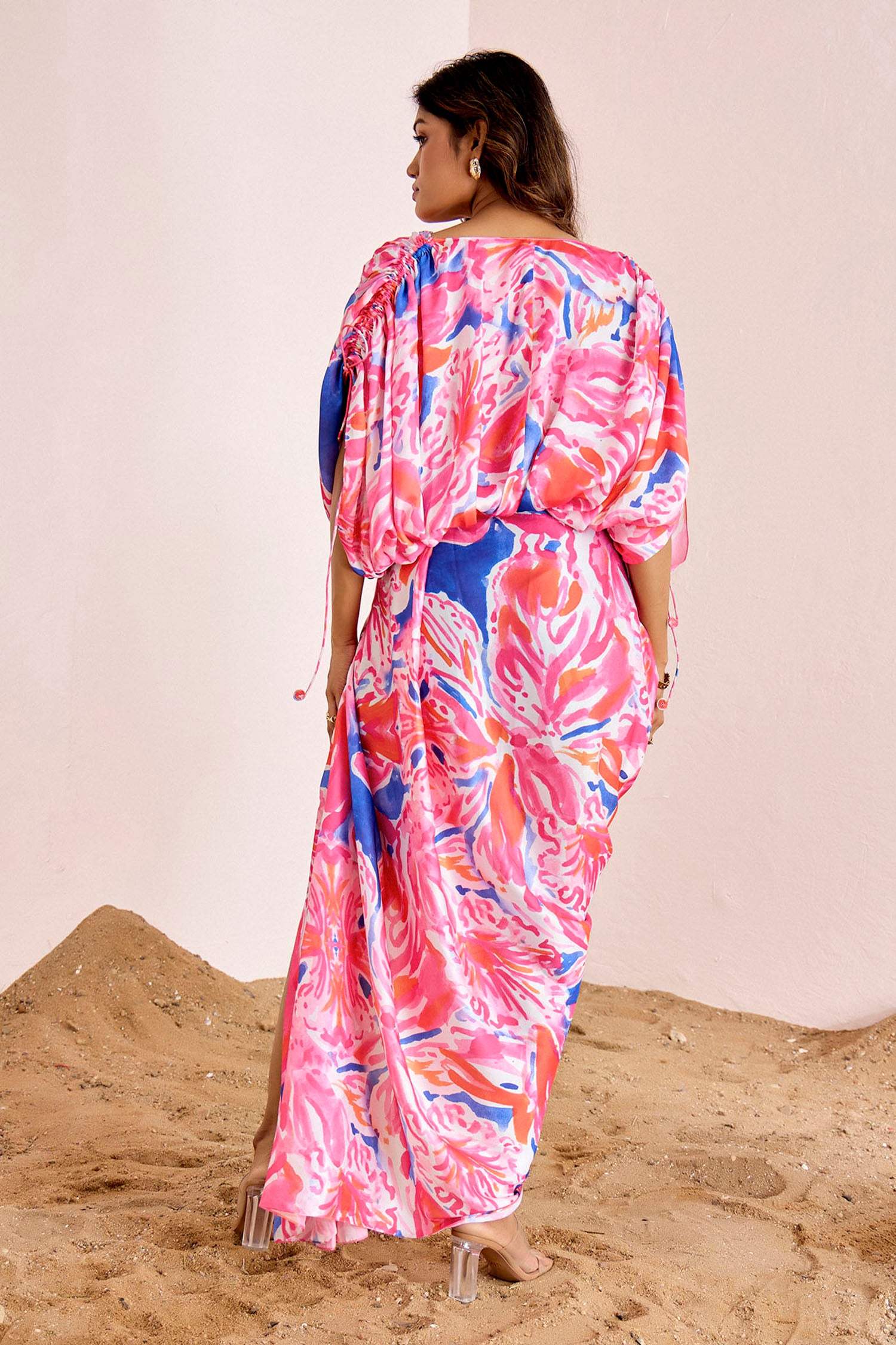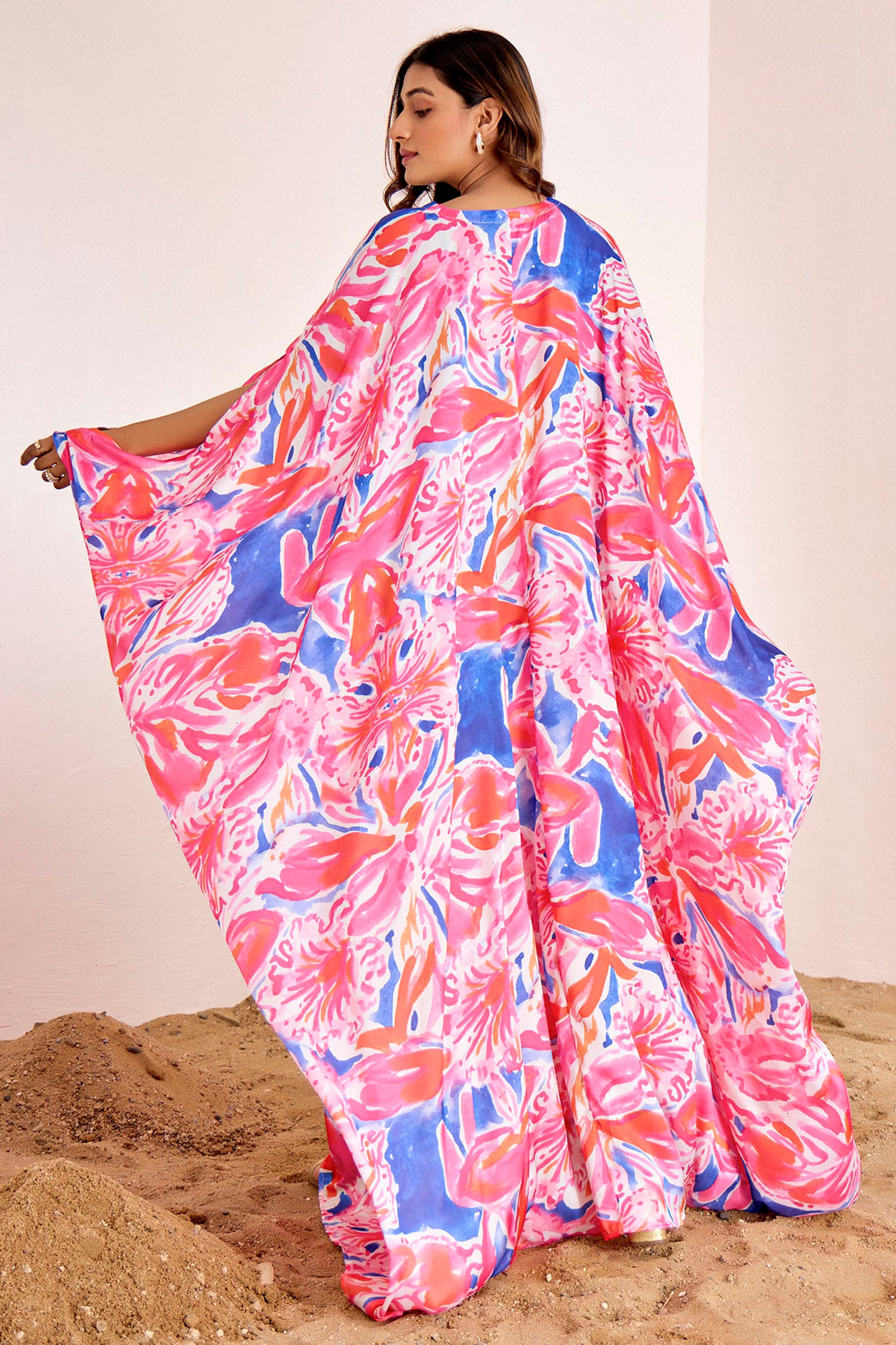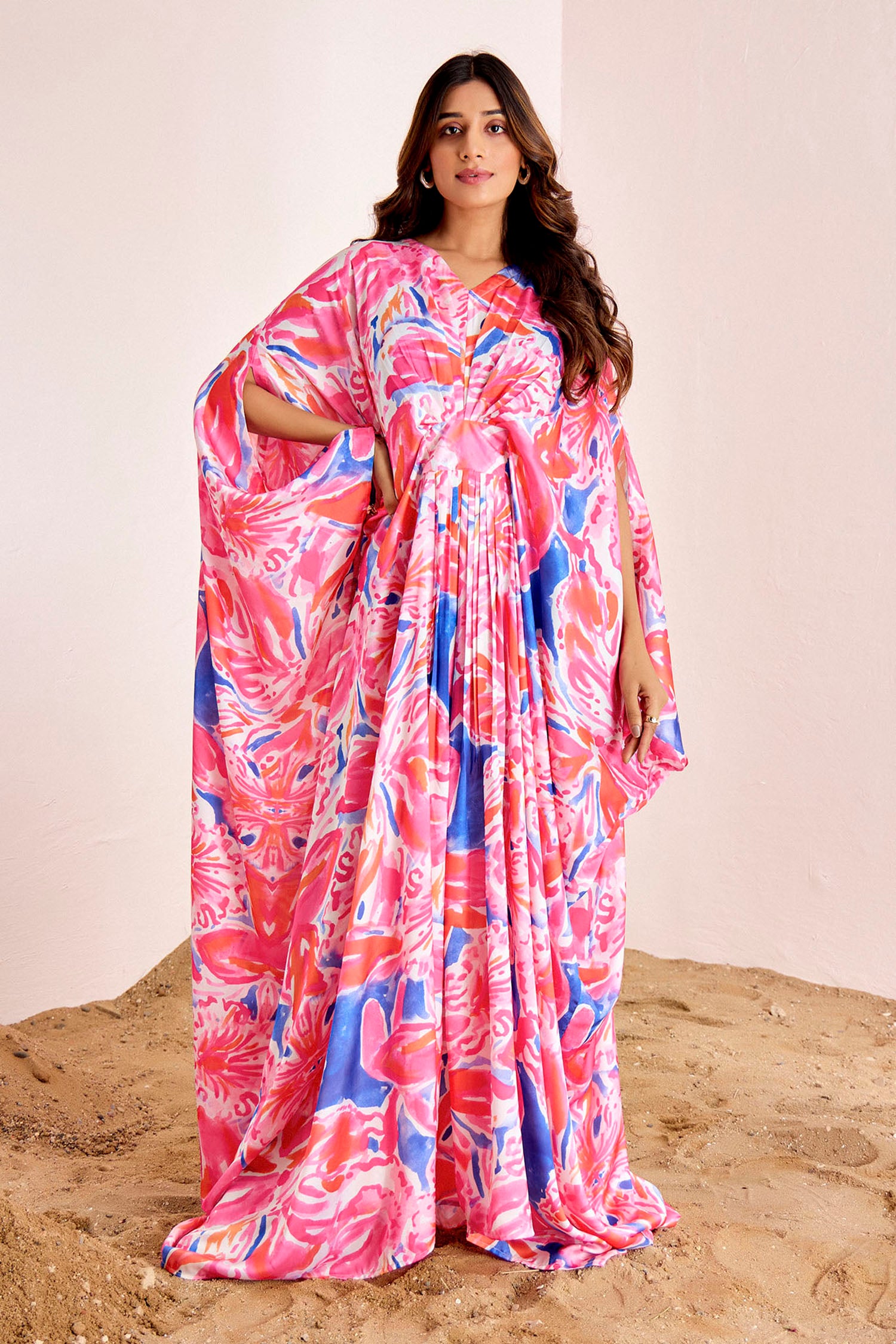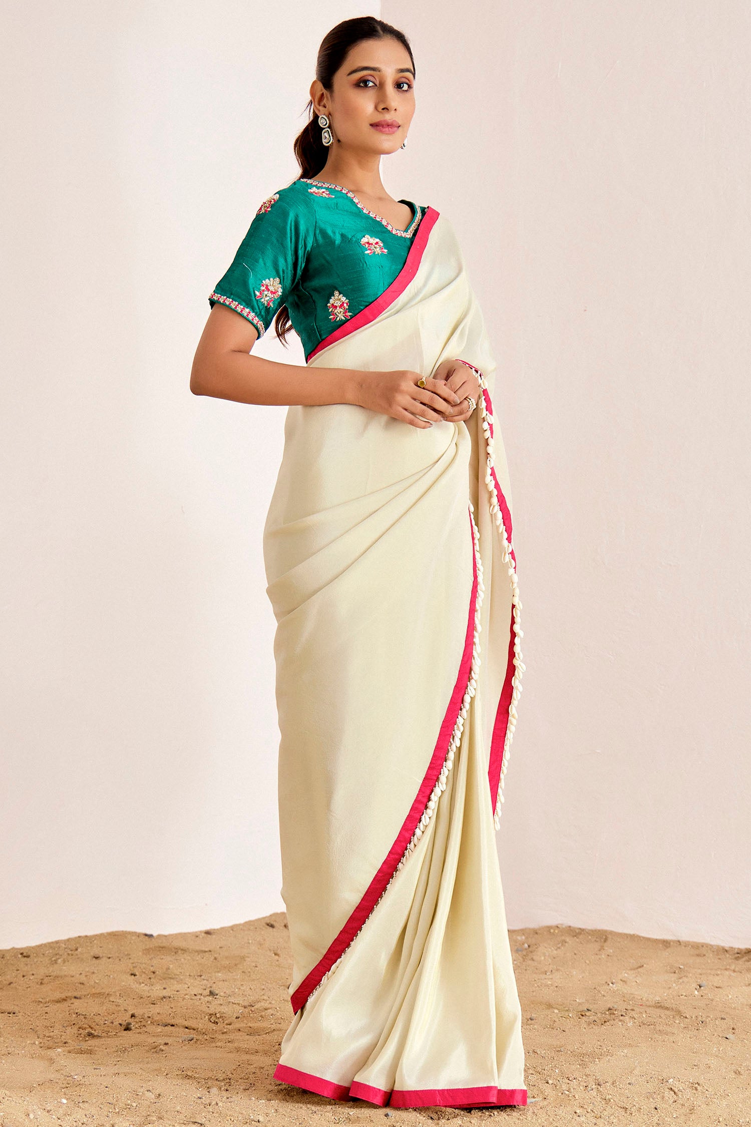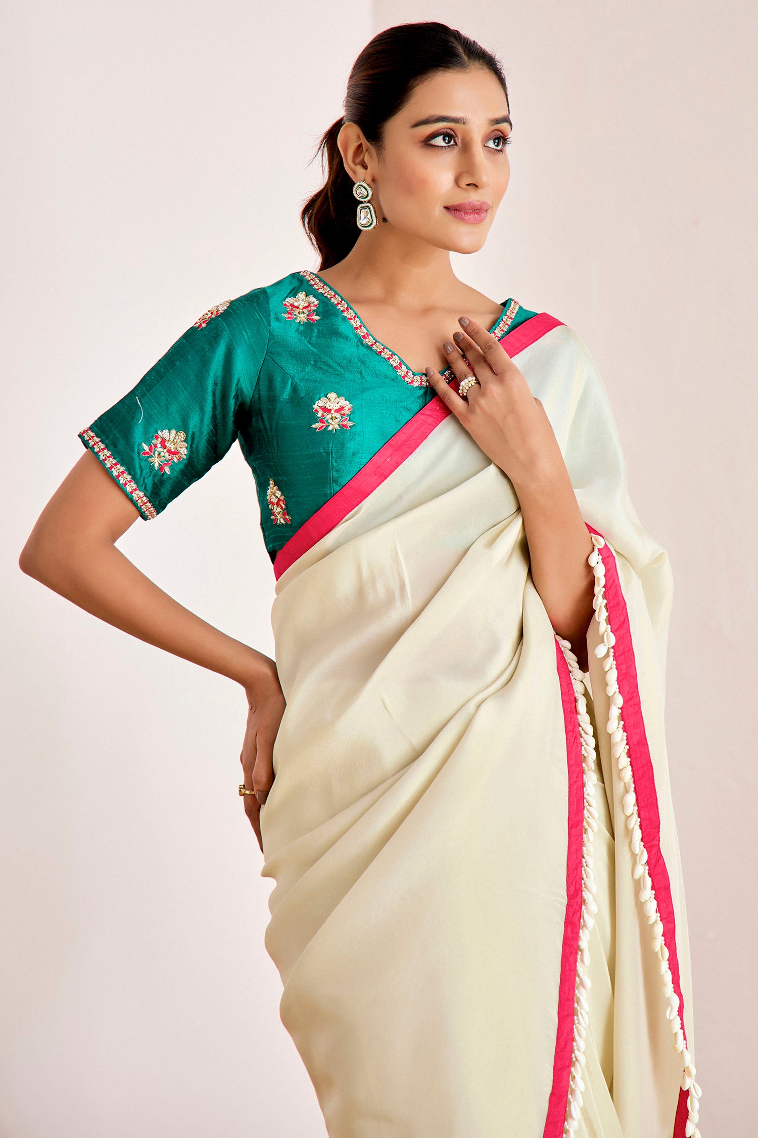 Pre-Draped Saree with Embellished Blouse and Ruching Details