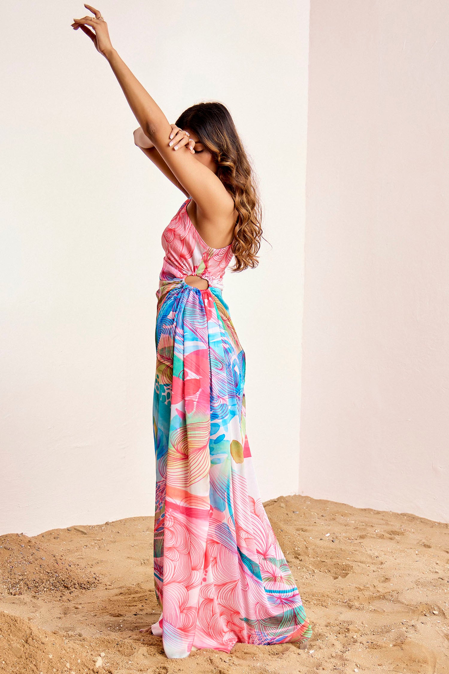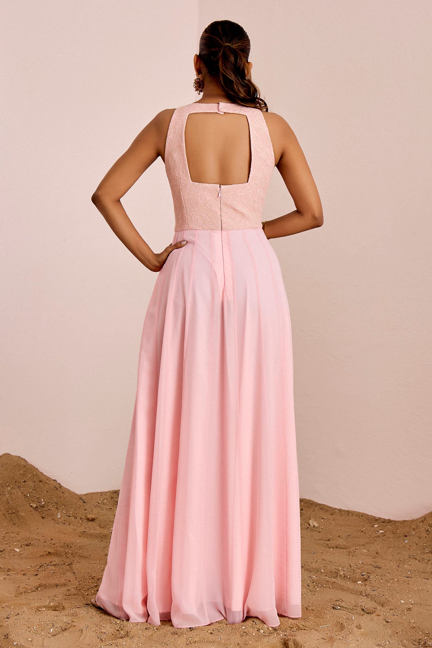 Backless Long Dress with Plunging Neckline and Tie-Up Back