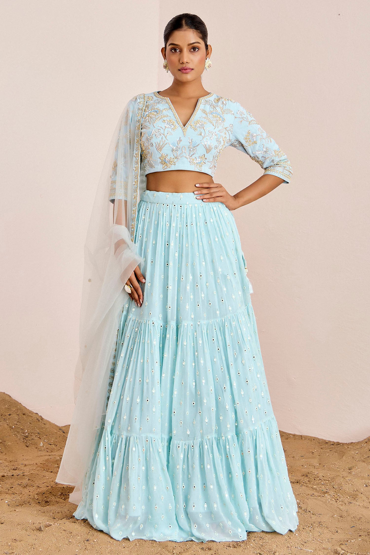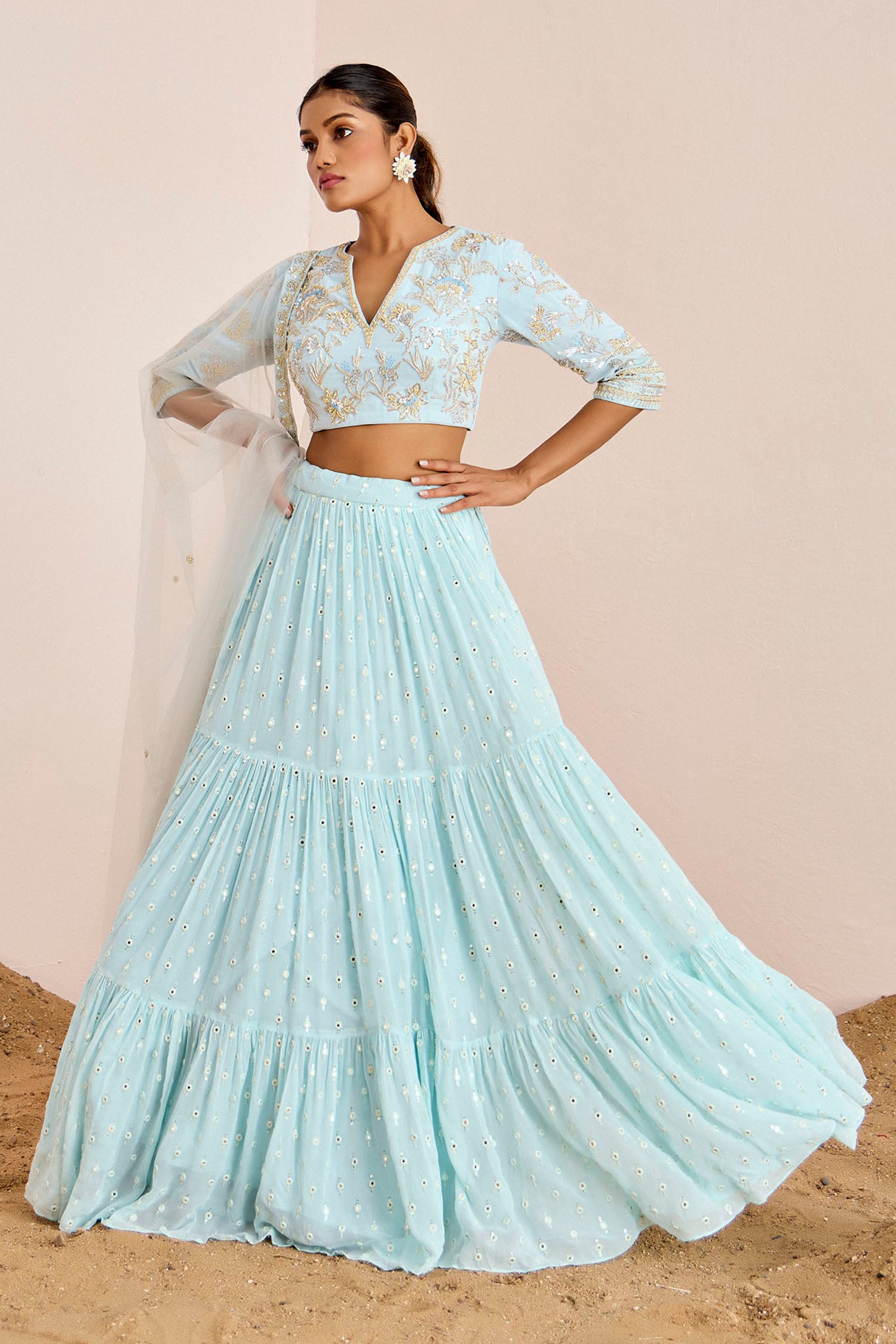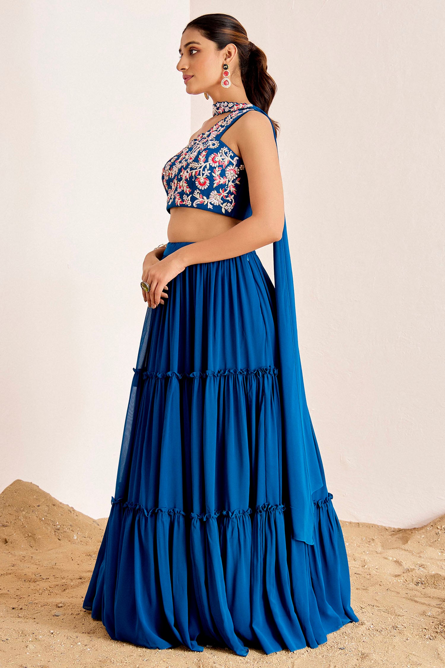 Tiered Machine Embroidered Lehenga with Handwork Blouse