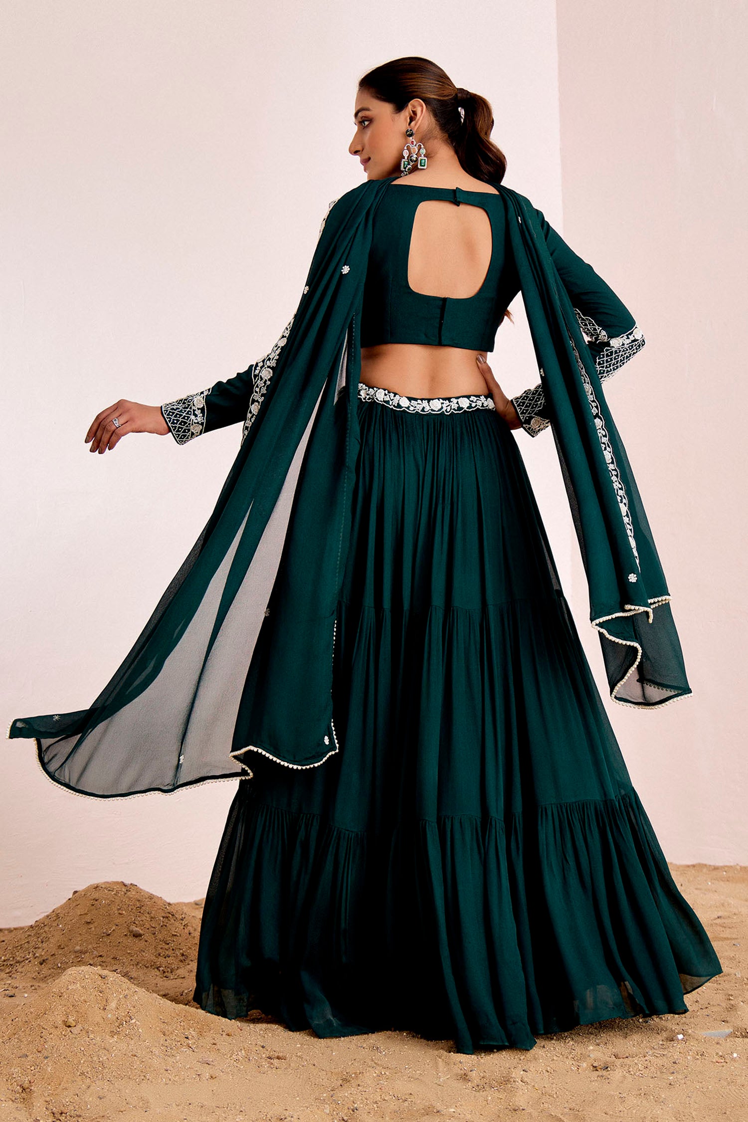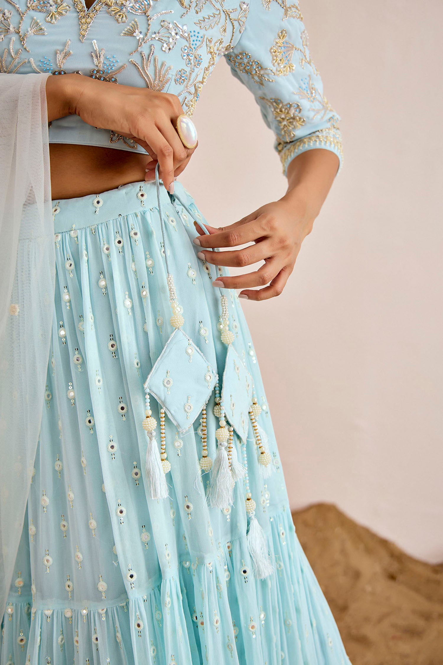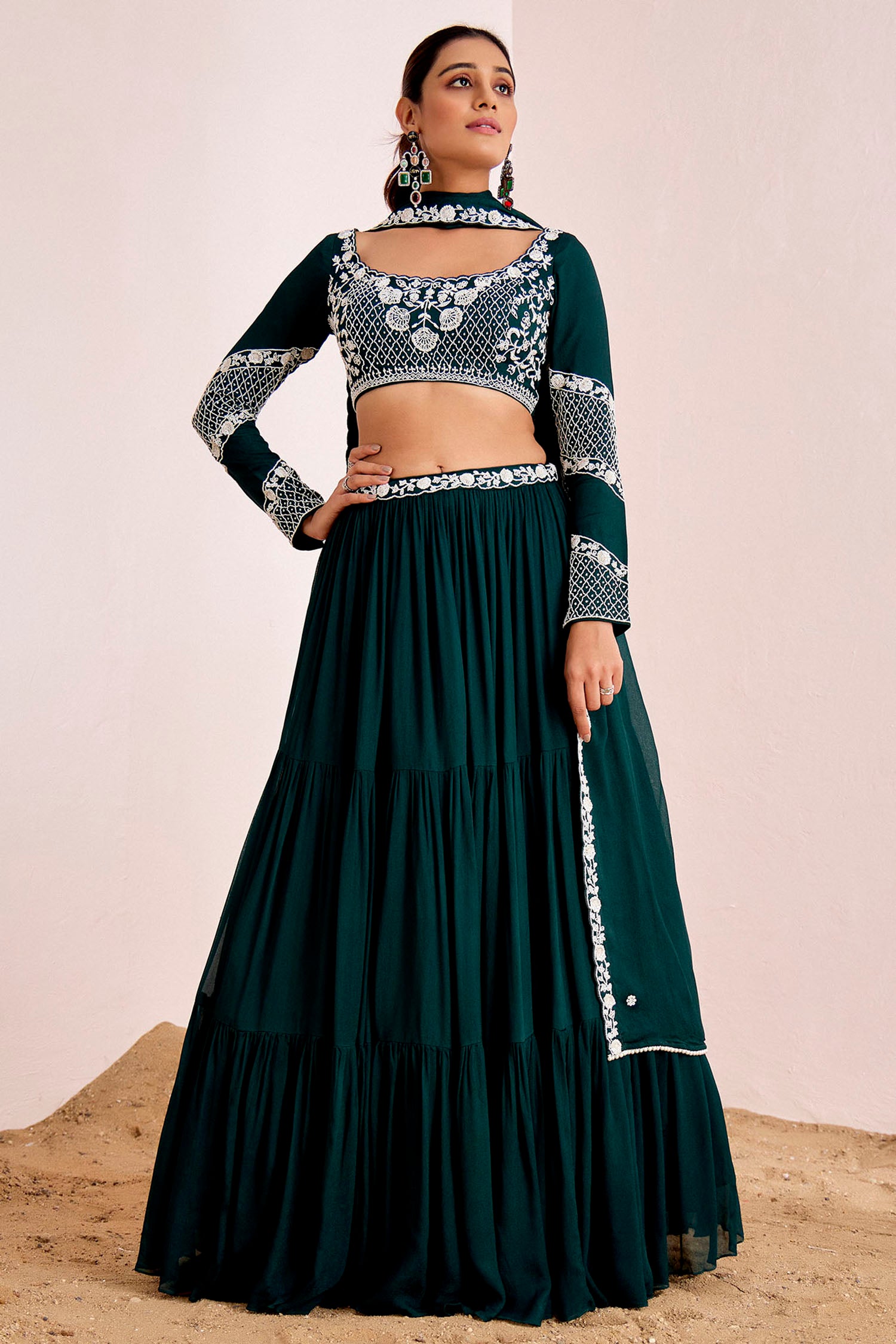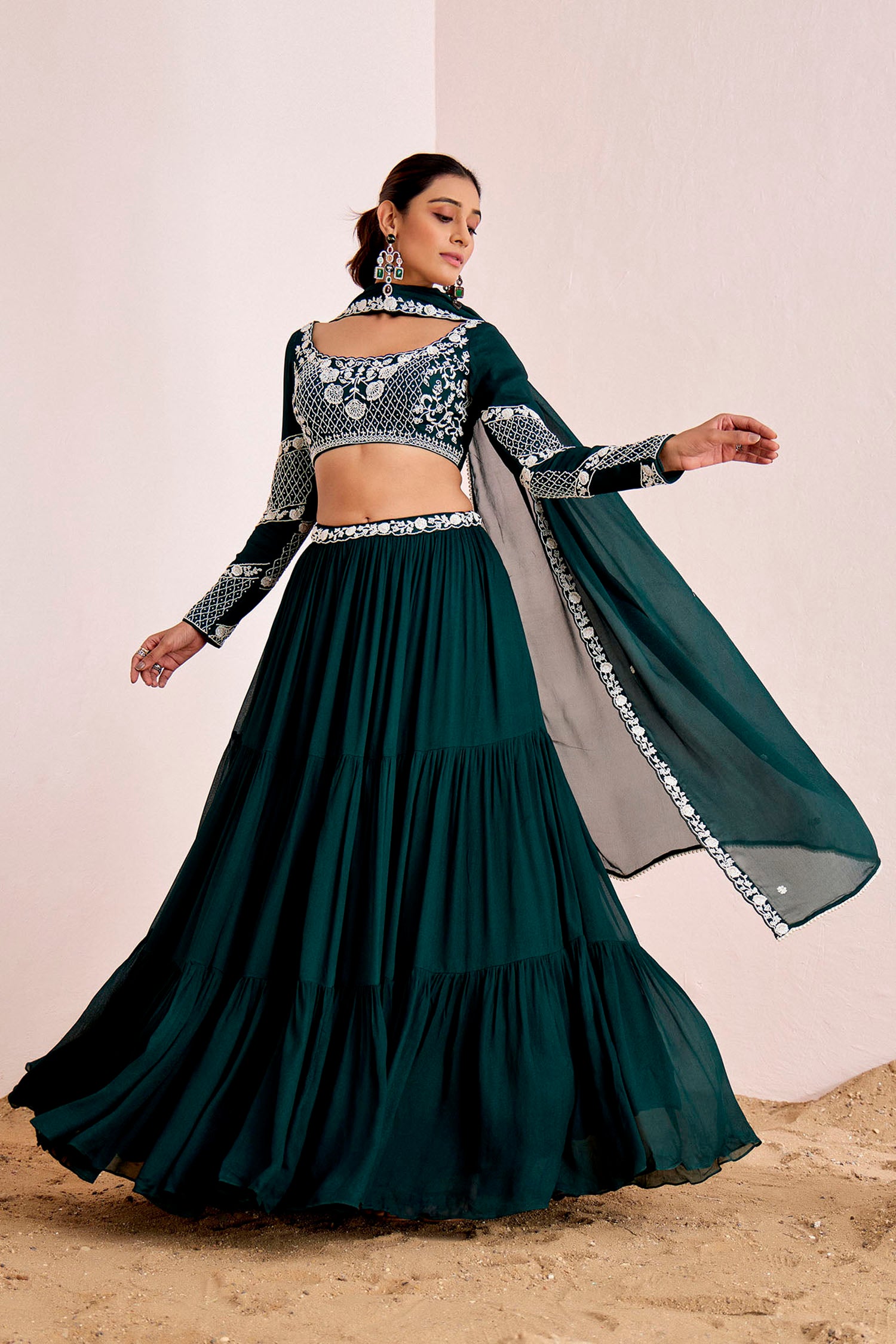 Tiered Machine Embroidered Lehenga with Handwork Blouse