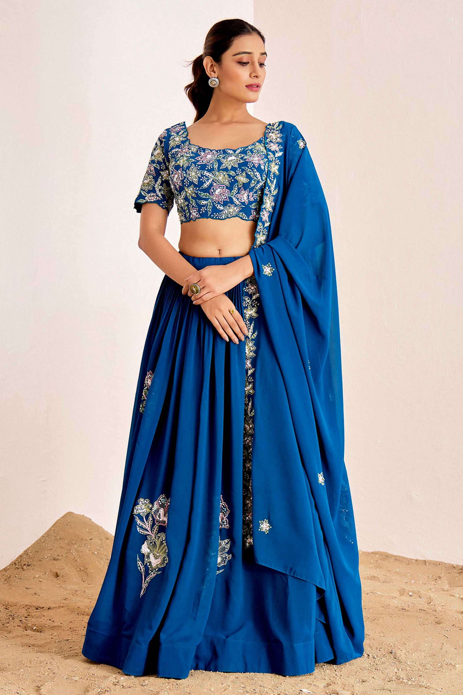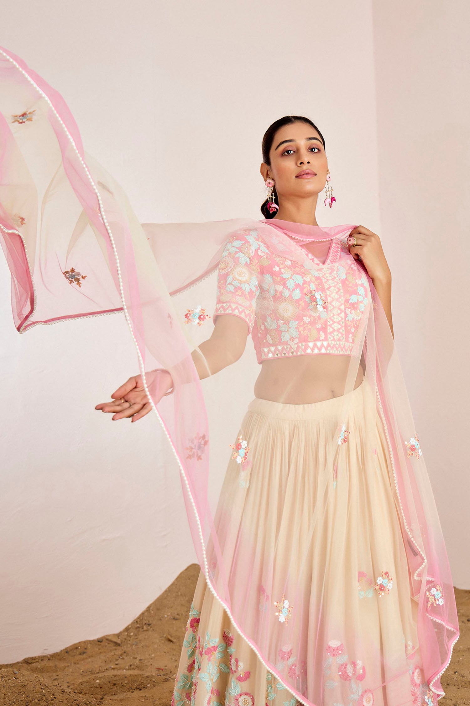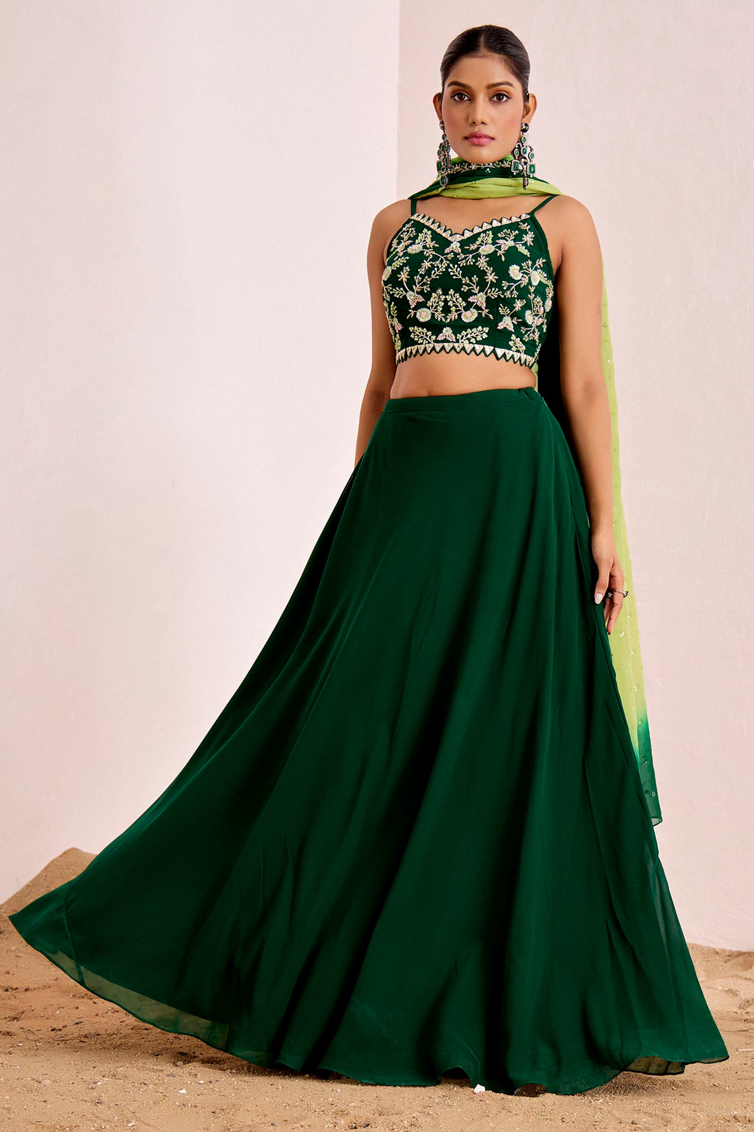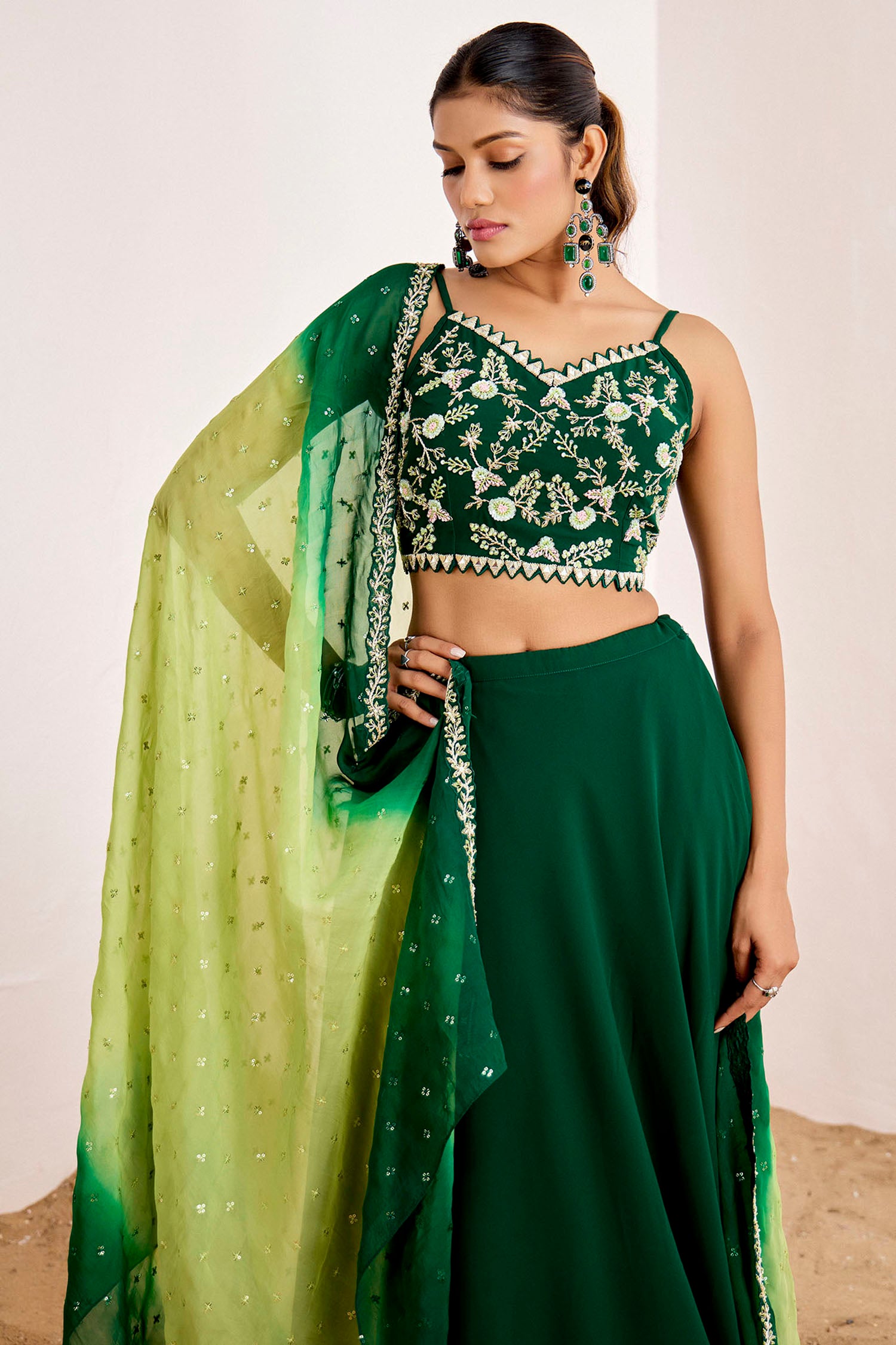 Plain Lehenga with Heavy Hand Embroidered Blouse and Shaded Organza Dupatta