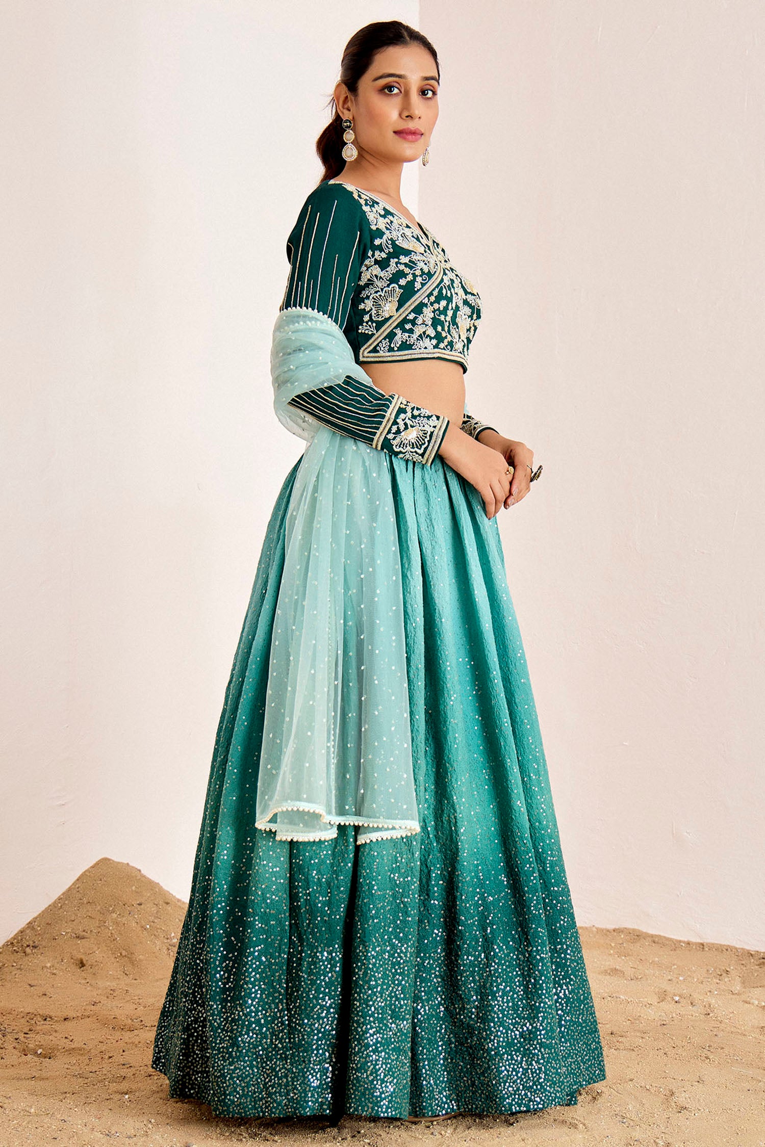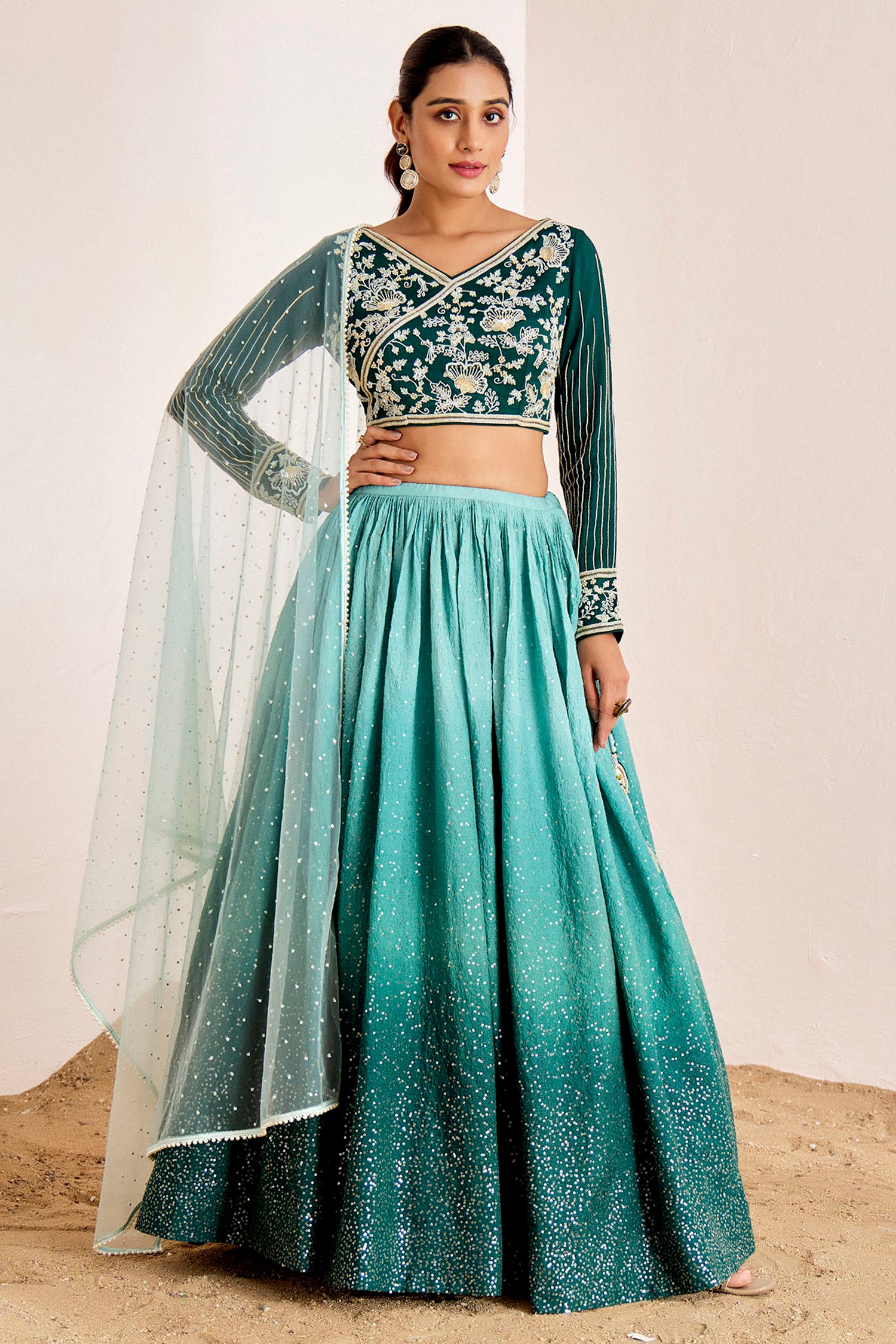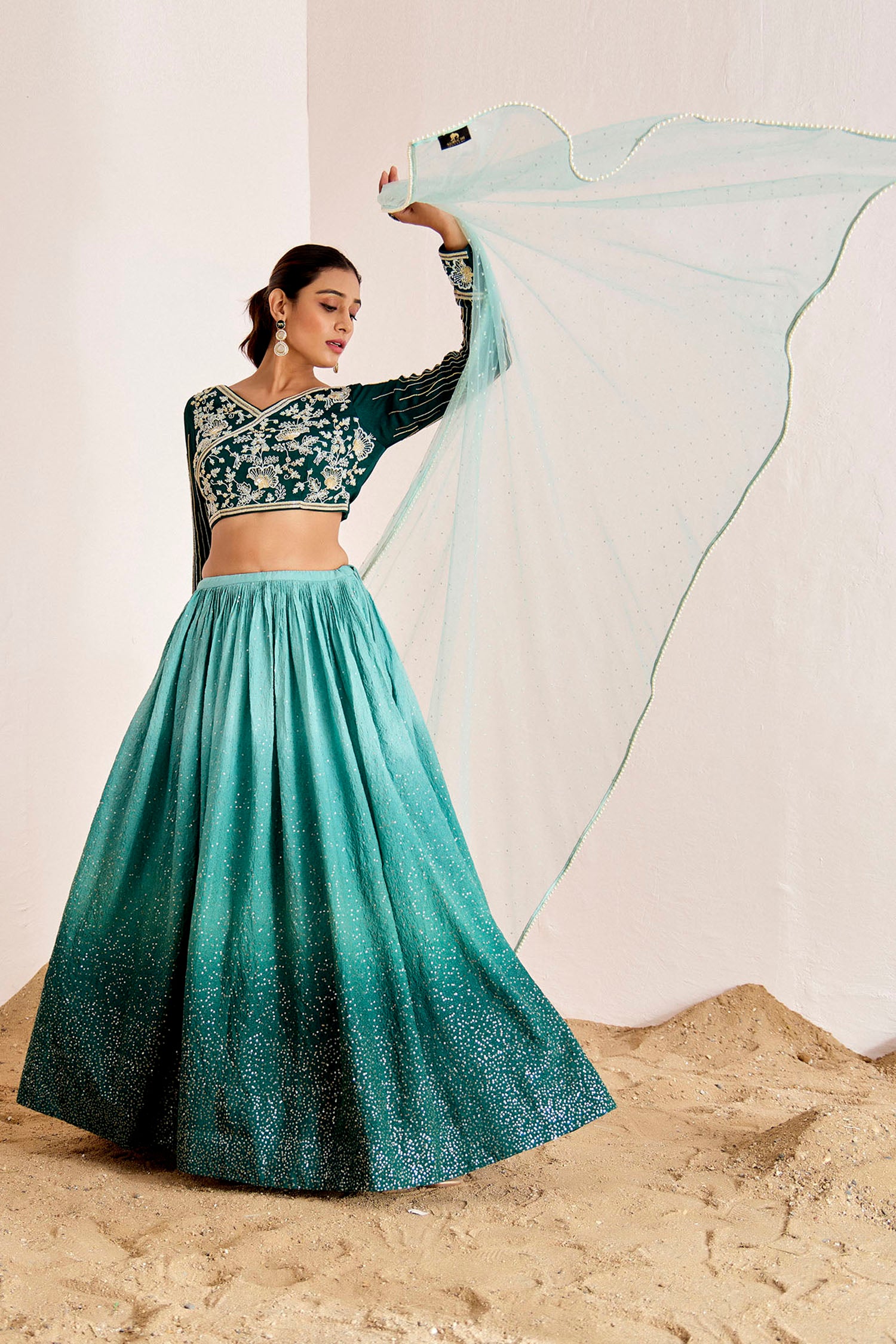 Ombre Sequin Embroidered Lehenga with Hand Embroidered Blouse
