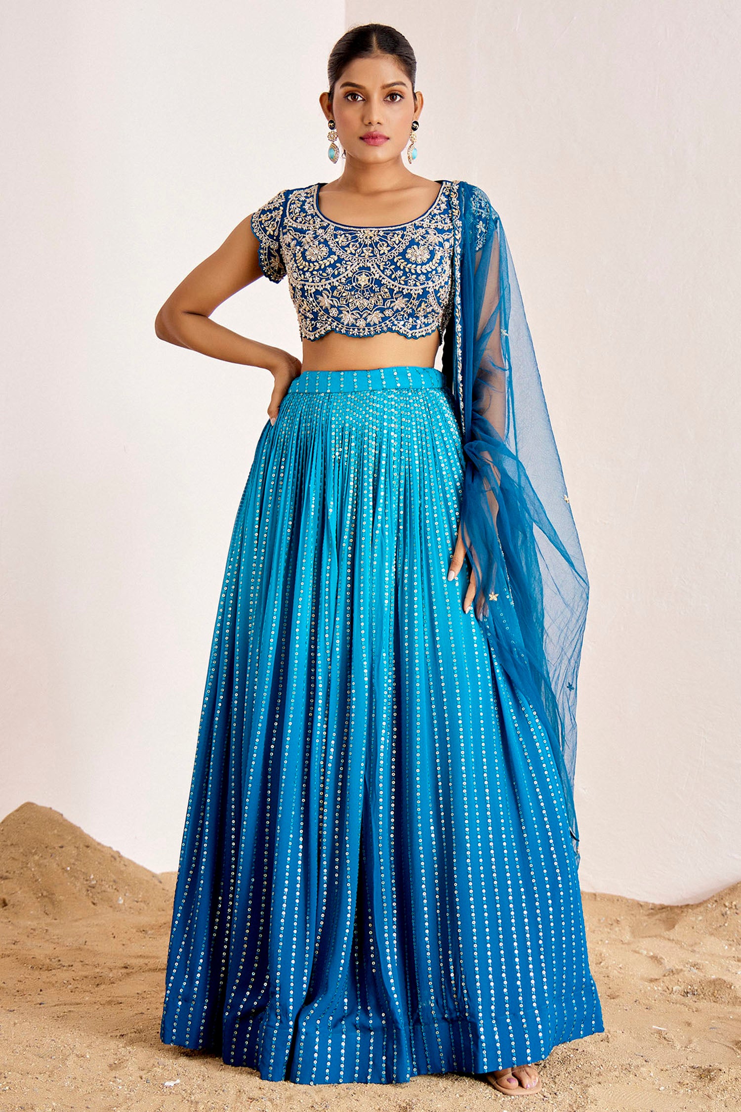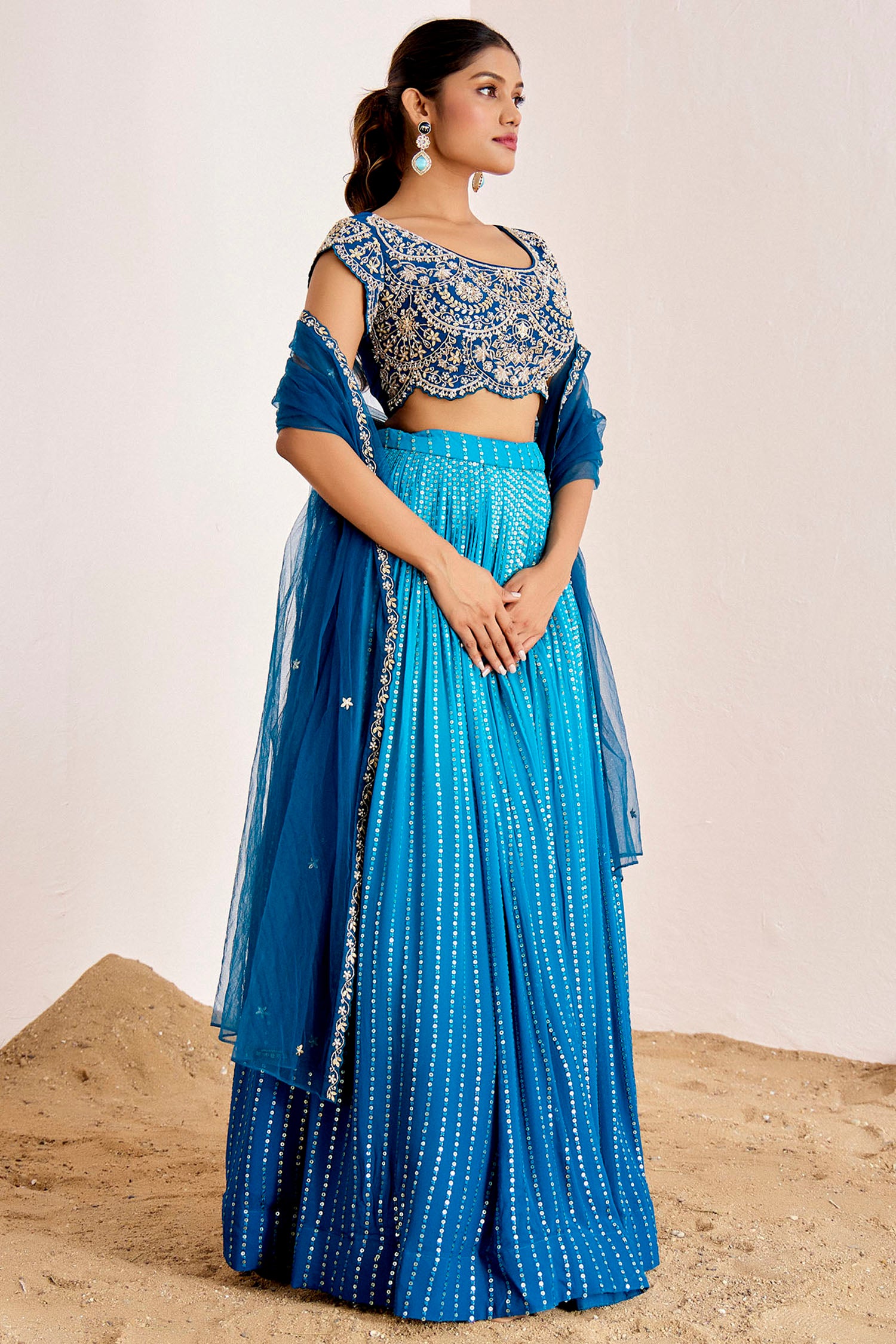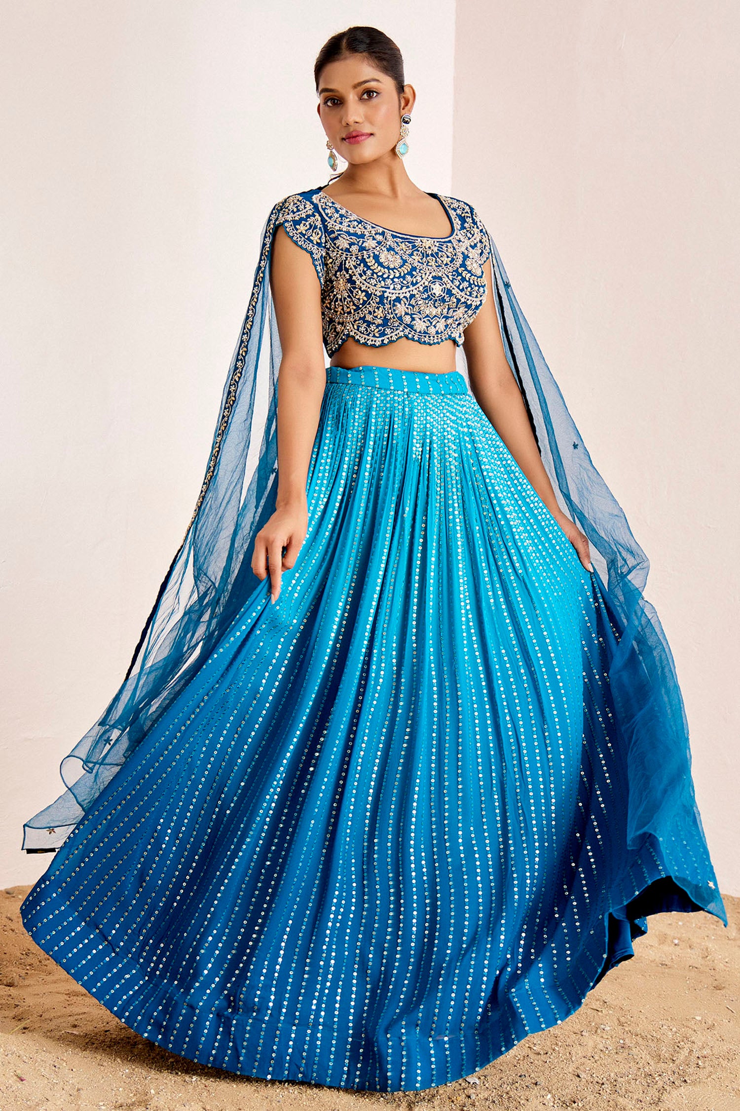 Ombre Sequin Embroidered Lehenga with Hand Embroidered Blouse