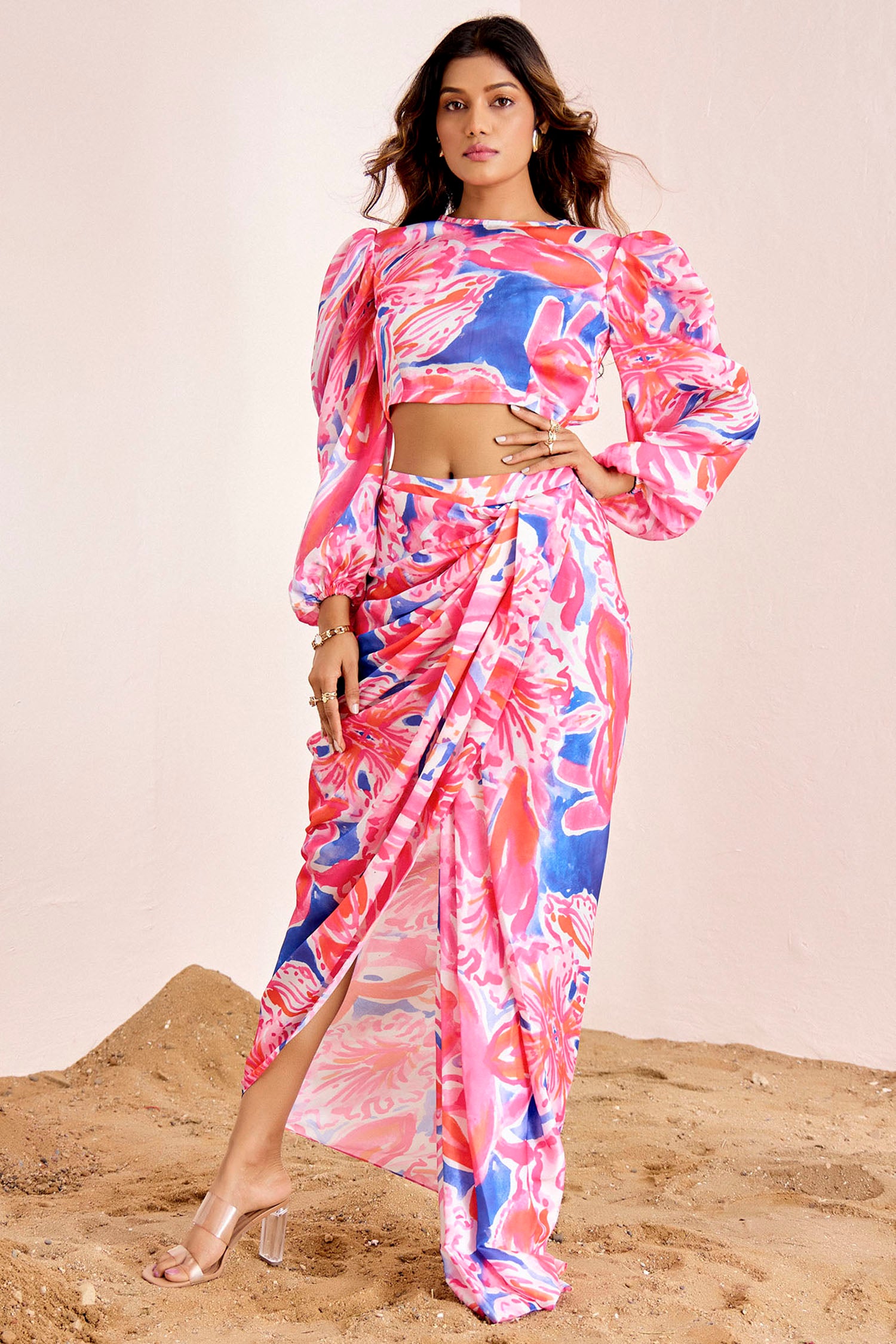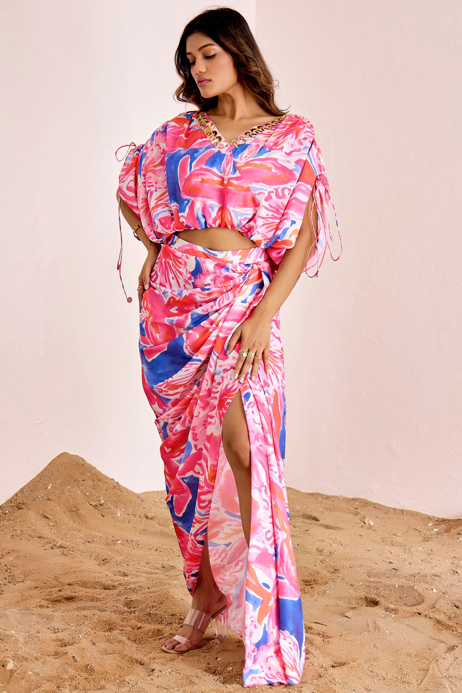 Crop Top and Drape Skirt Set with Embellished Neckline