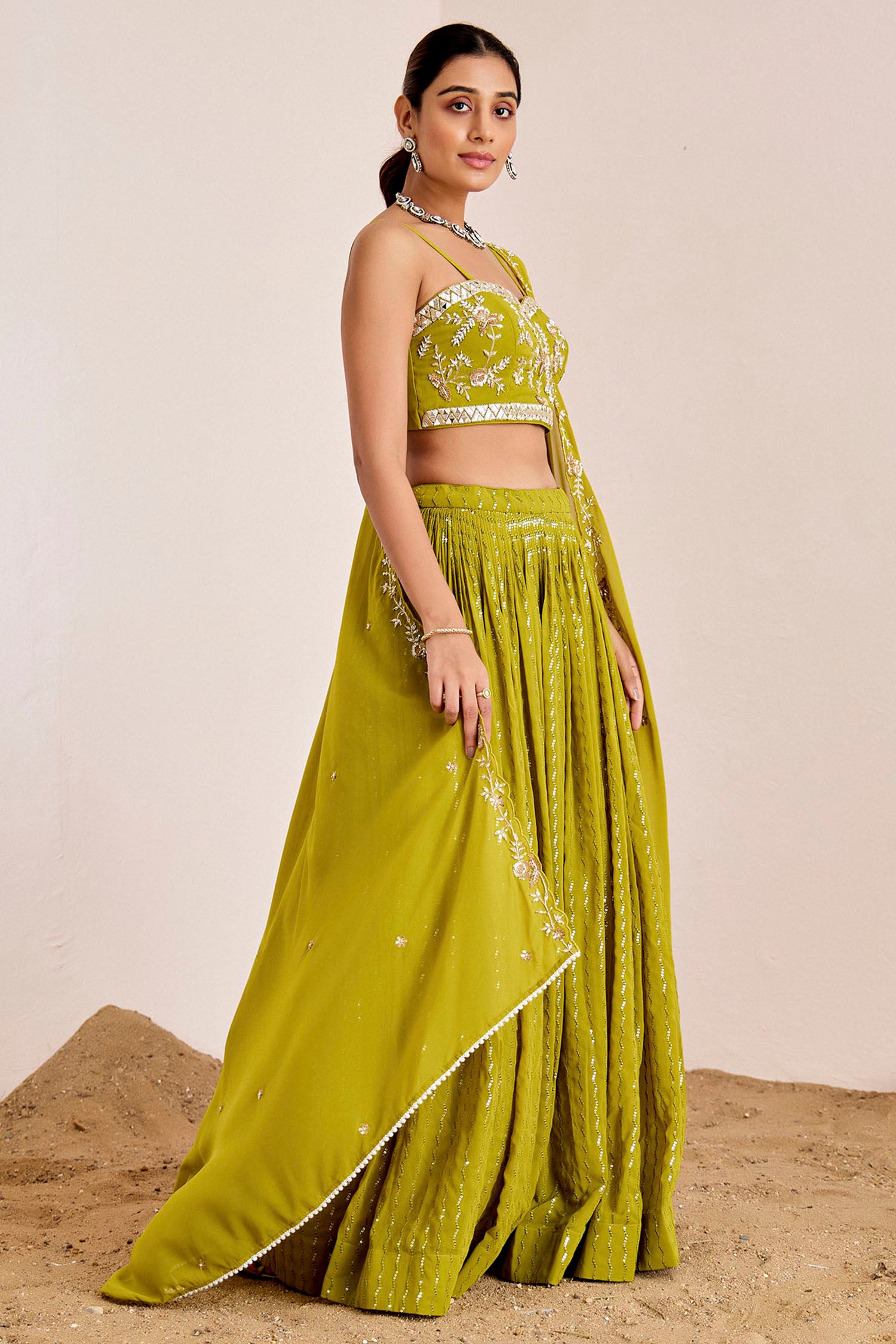Zigzag Sequin Lehenga with One Shoulder Hand Embroidered Blouse and Ruffle Dupatta