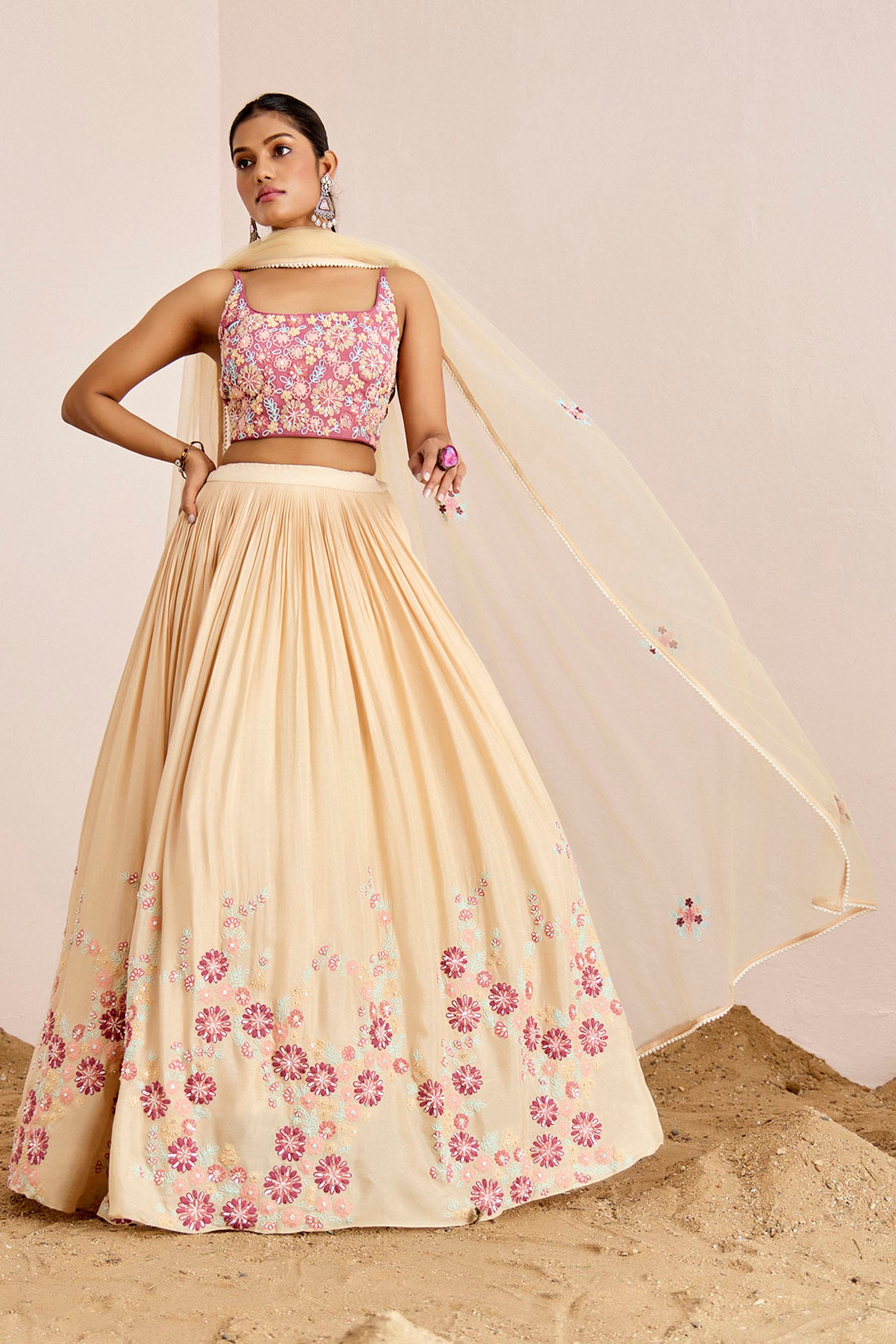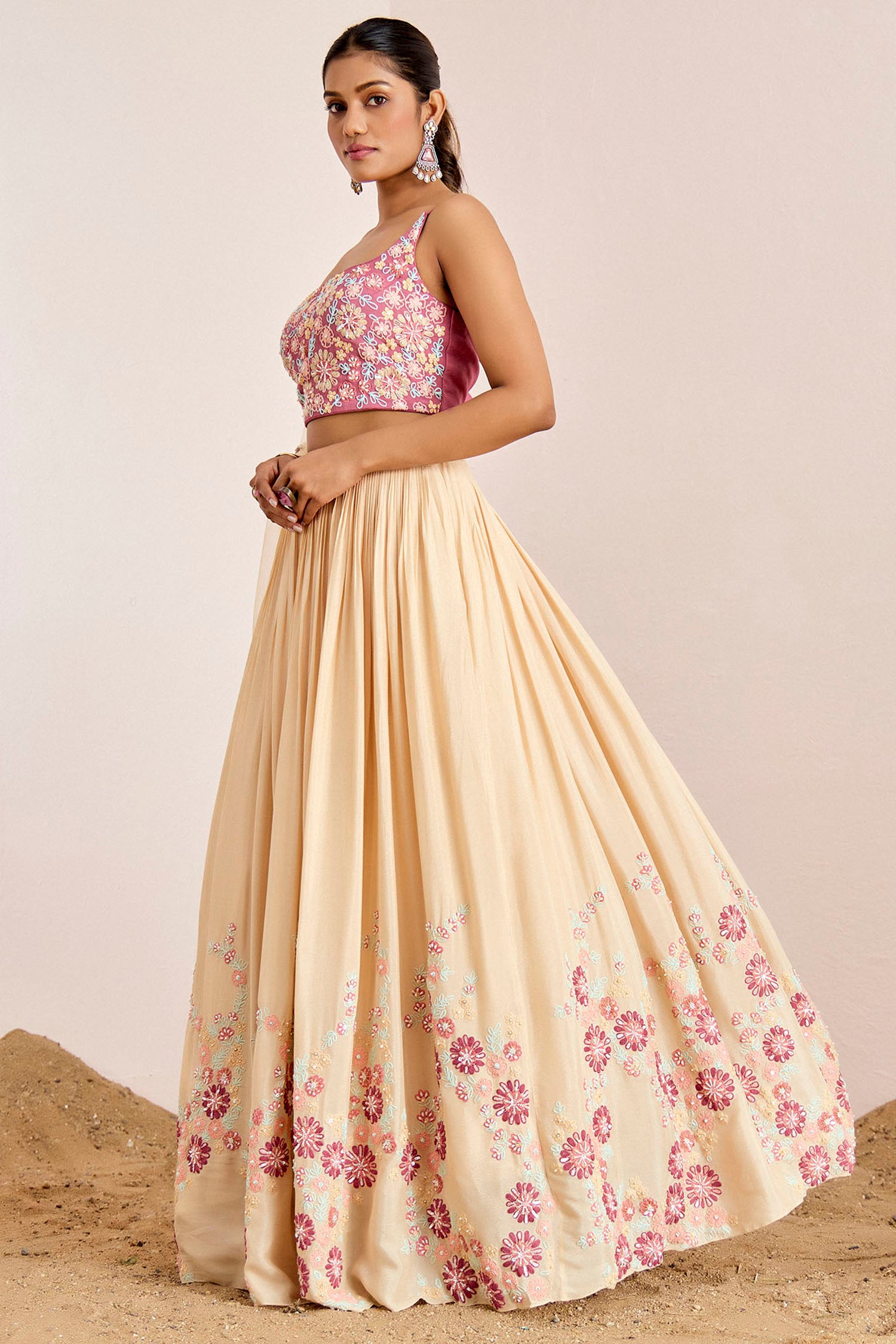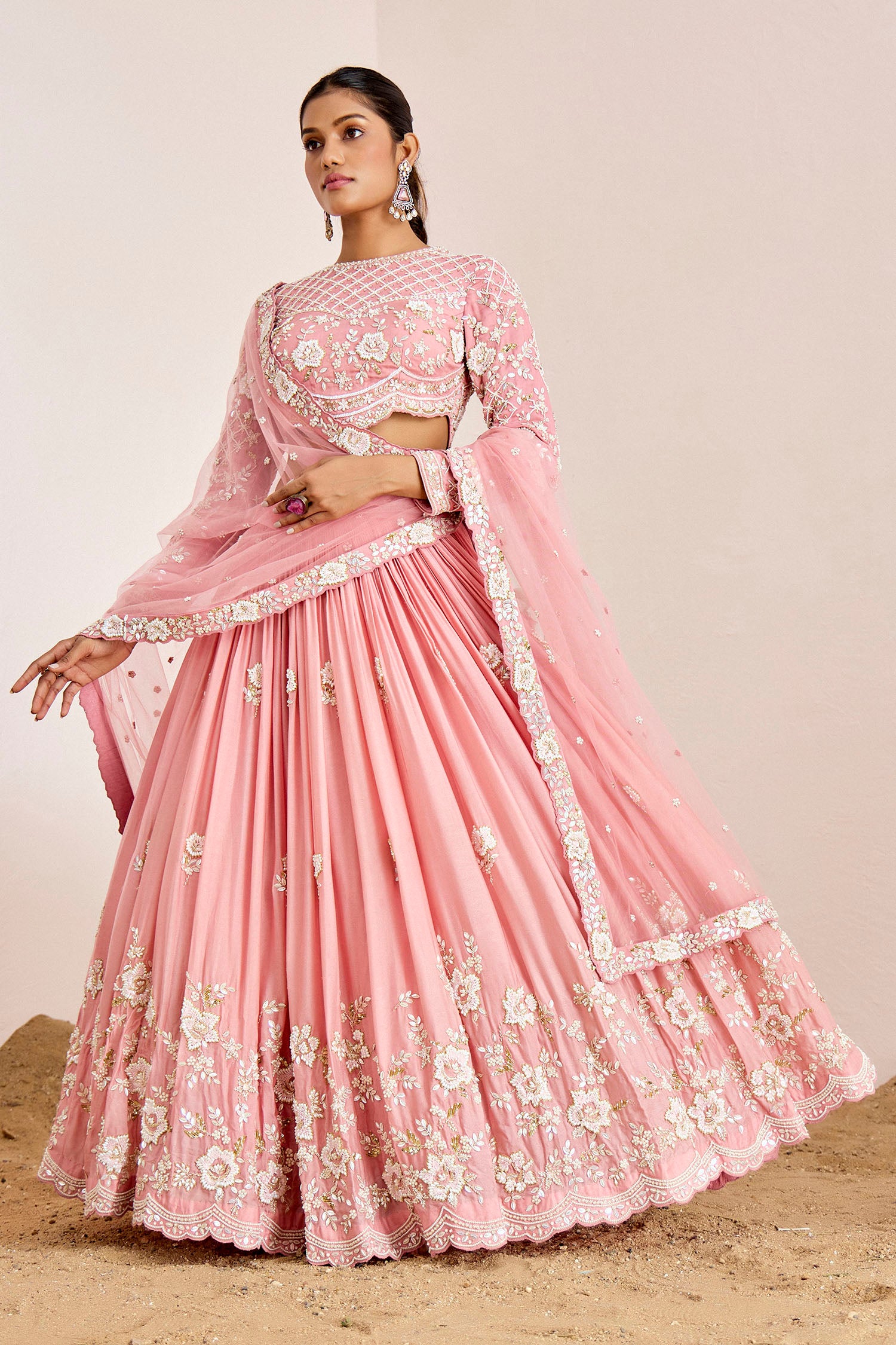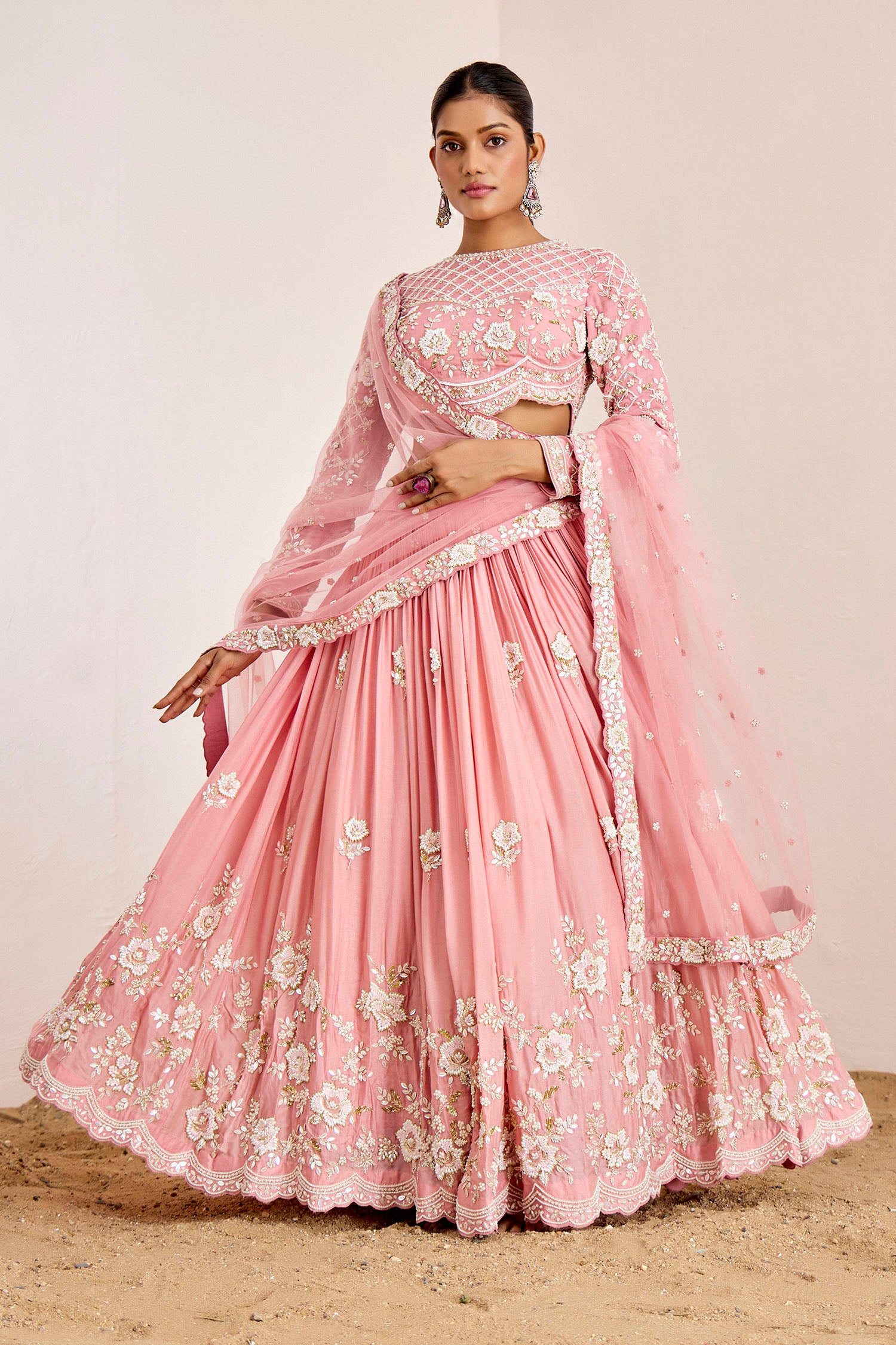 Machine Embroidered Lehenga with Pearl and Sequin Handwork