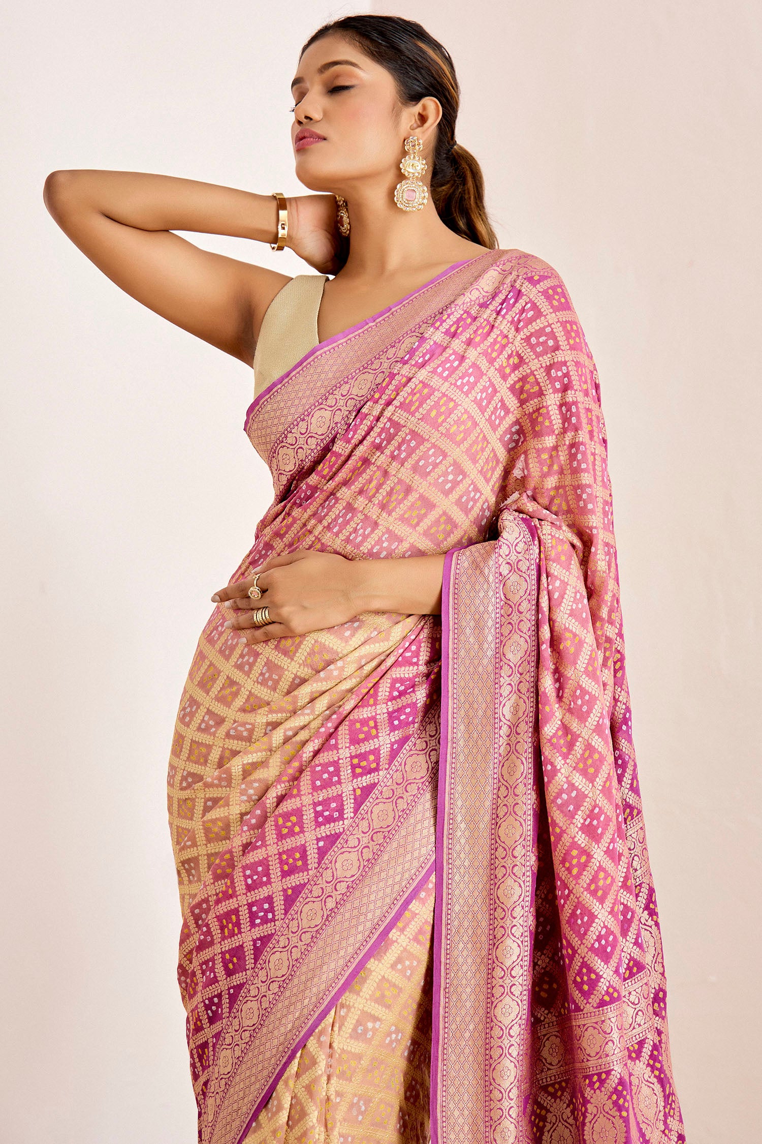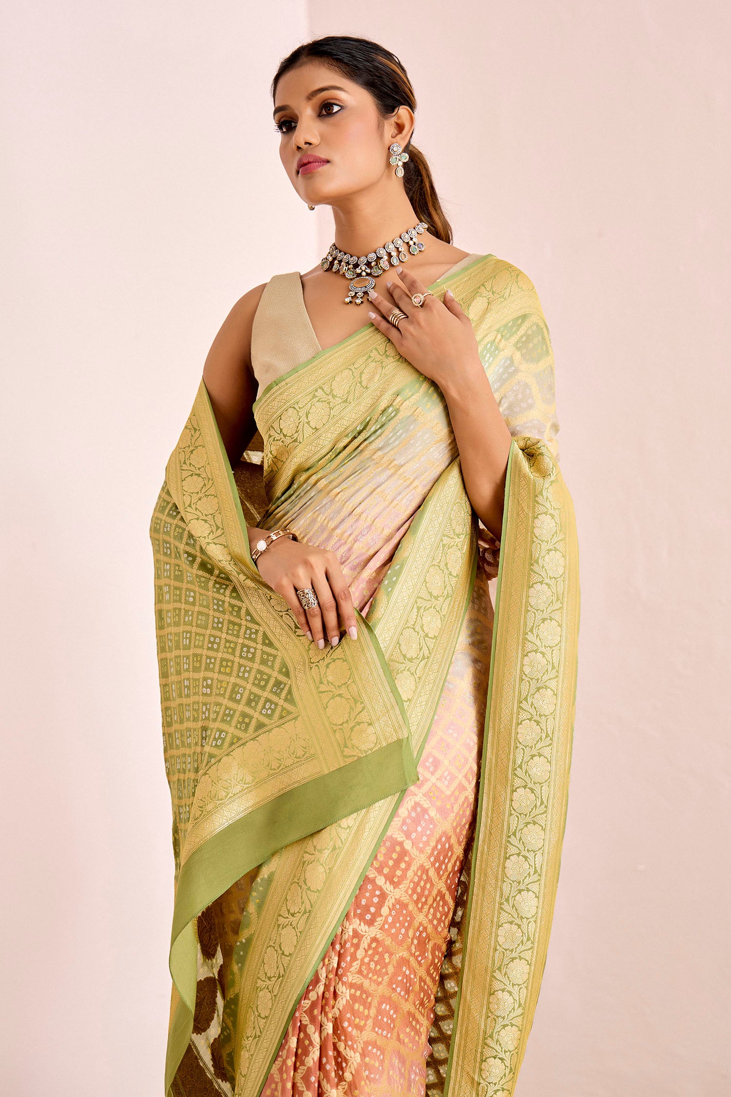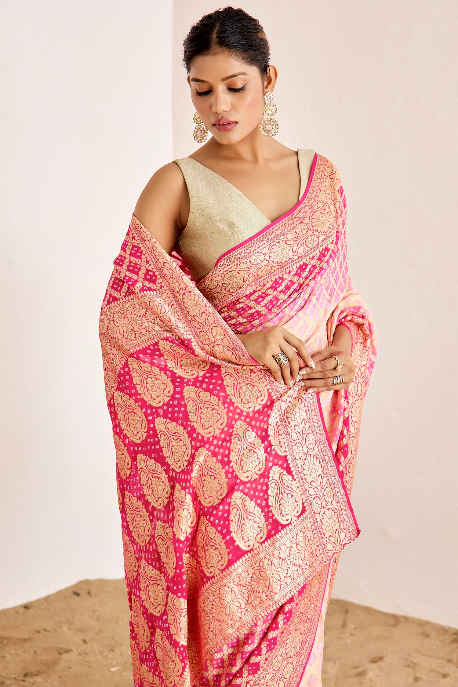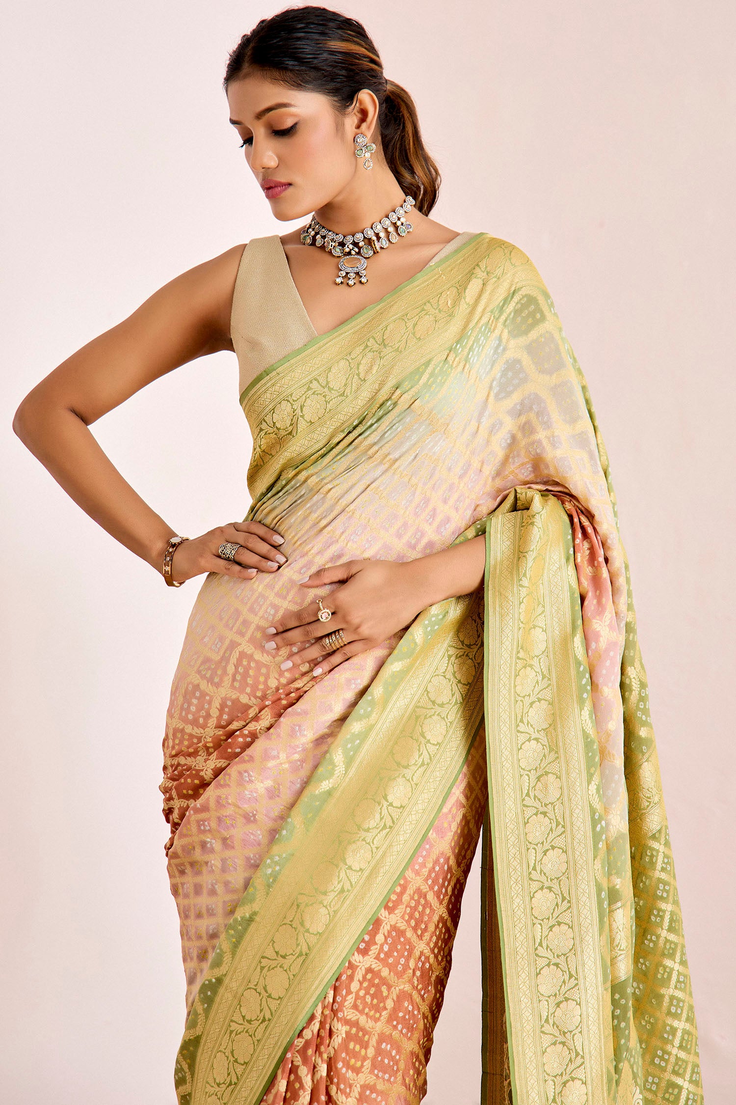 Traditional Banarasee Bandhani Saree in Modern Colors