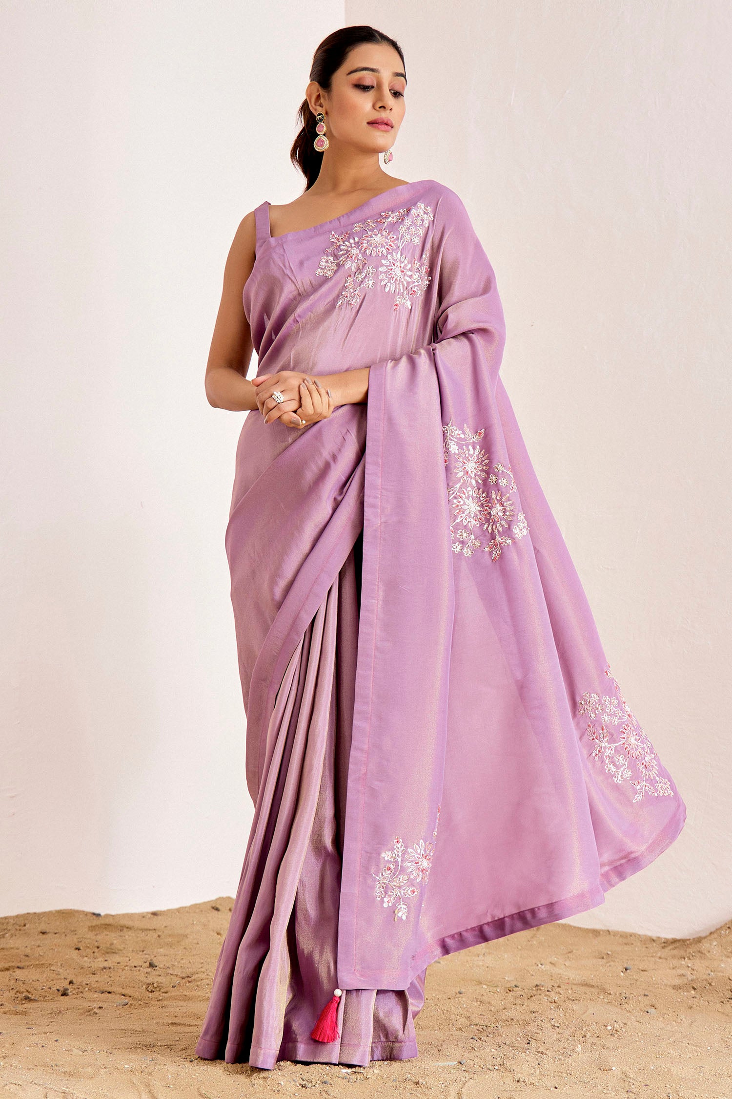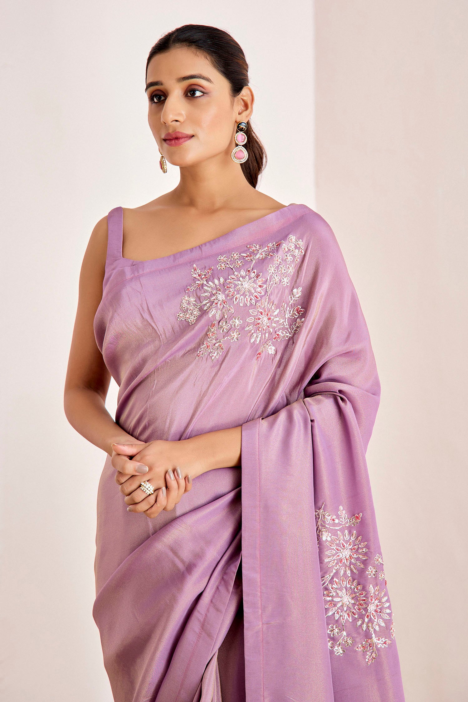 Shimmer Saree with Hand Embroidered Pallu and Embroidered Blouse