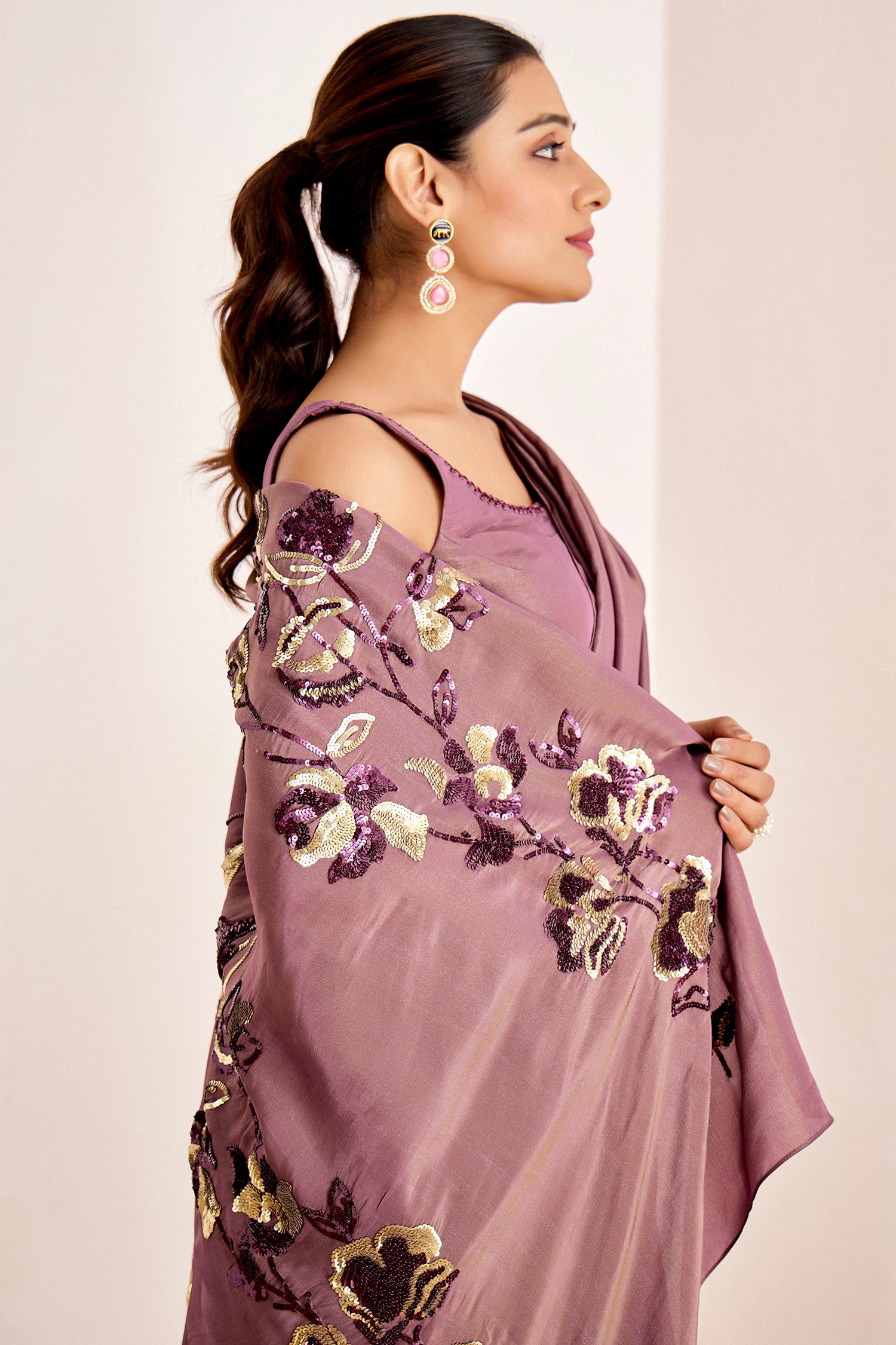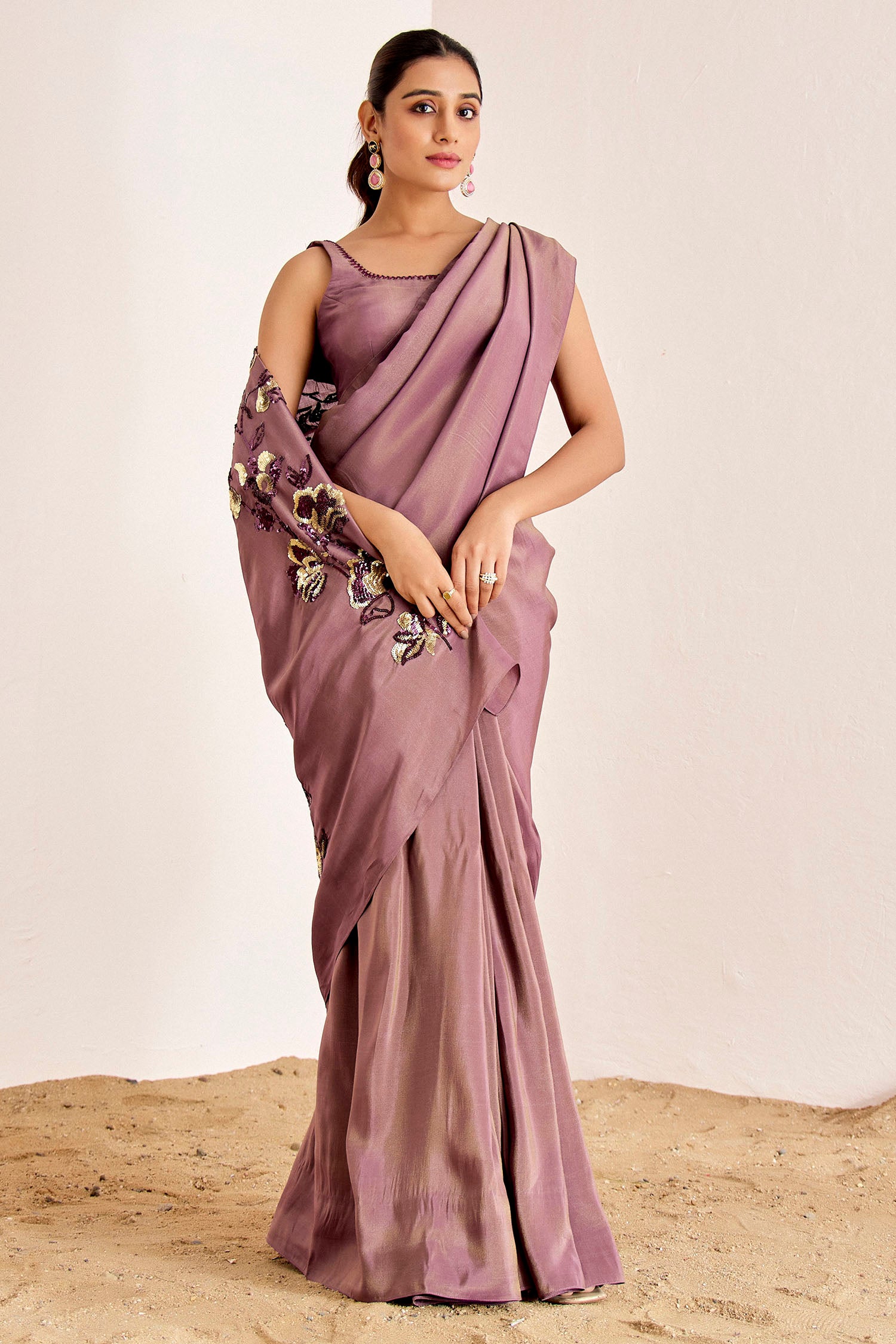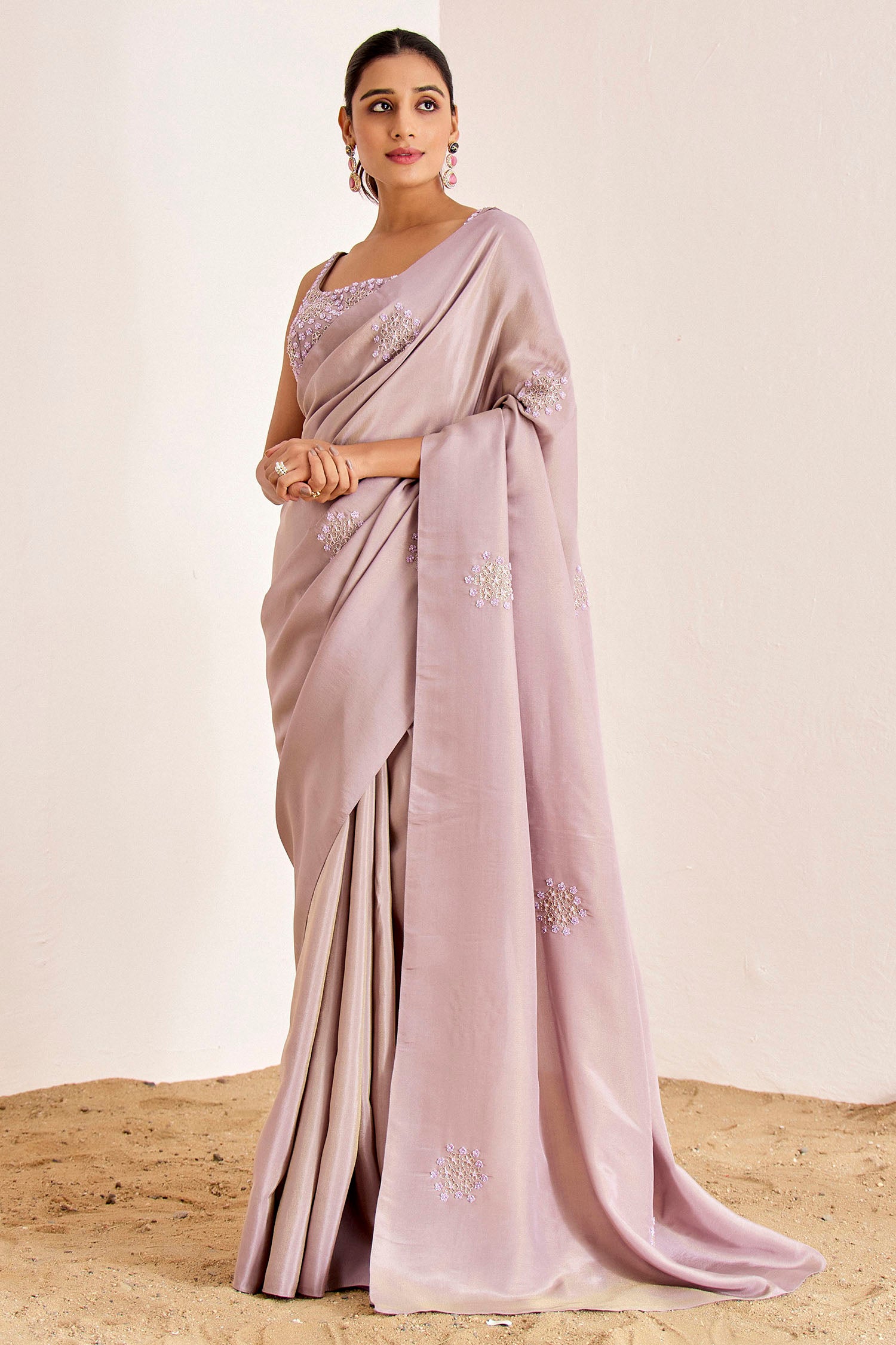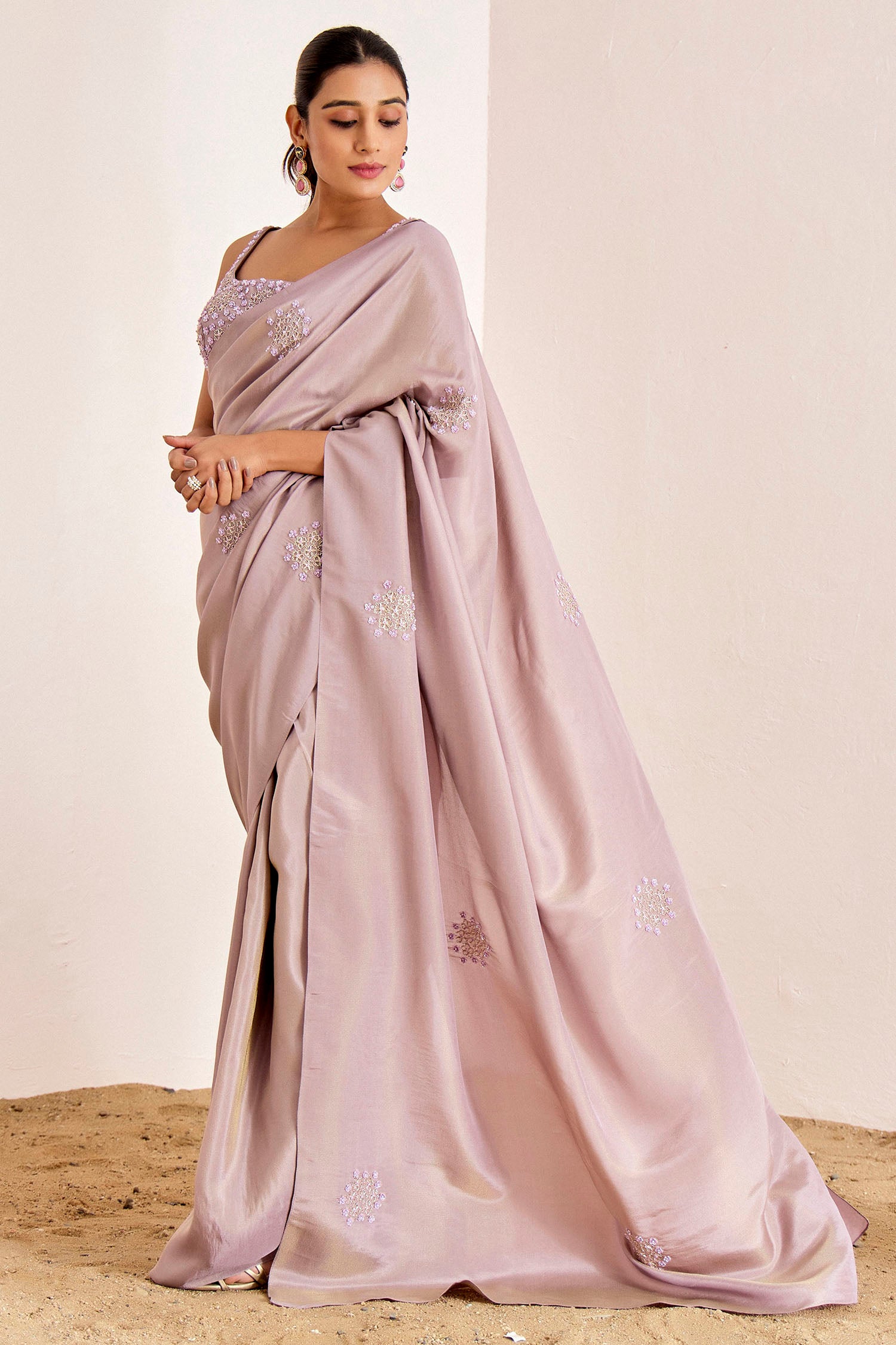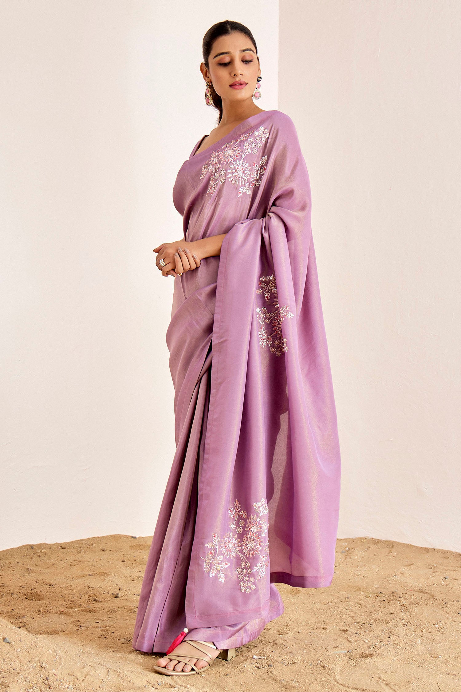 Shimmer Saree with Sequins Embroidered Pallu and Plain Blouse