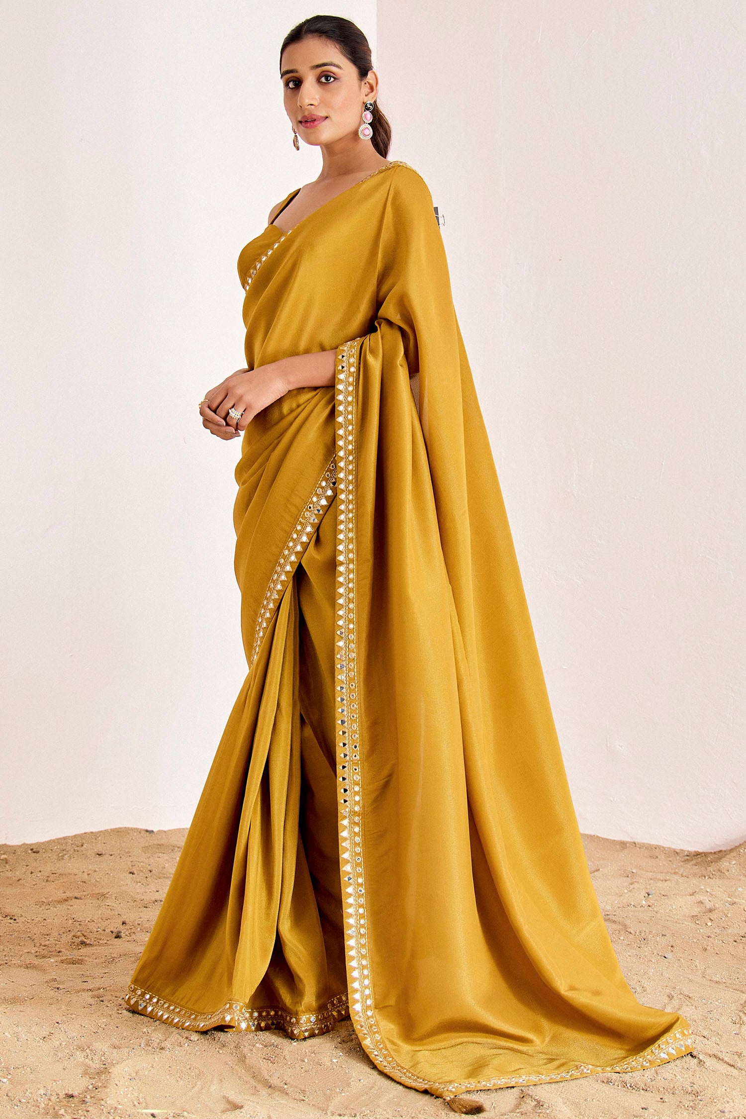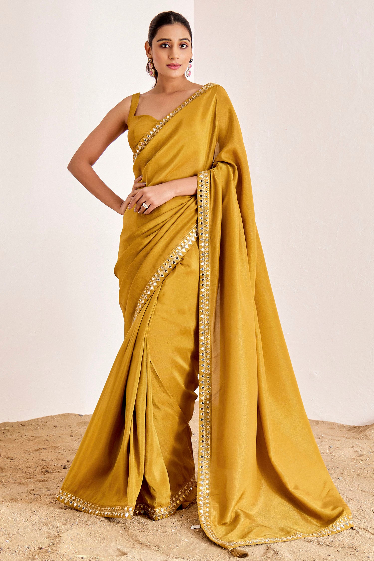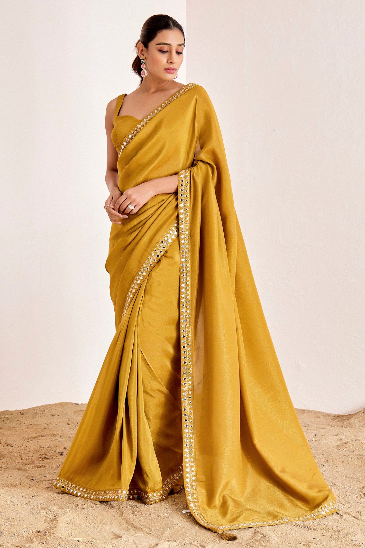 Plain Shimmer Saree with Mirror Work Border and Bustier Blouse