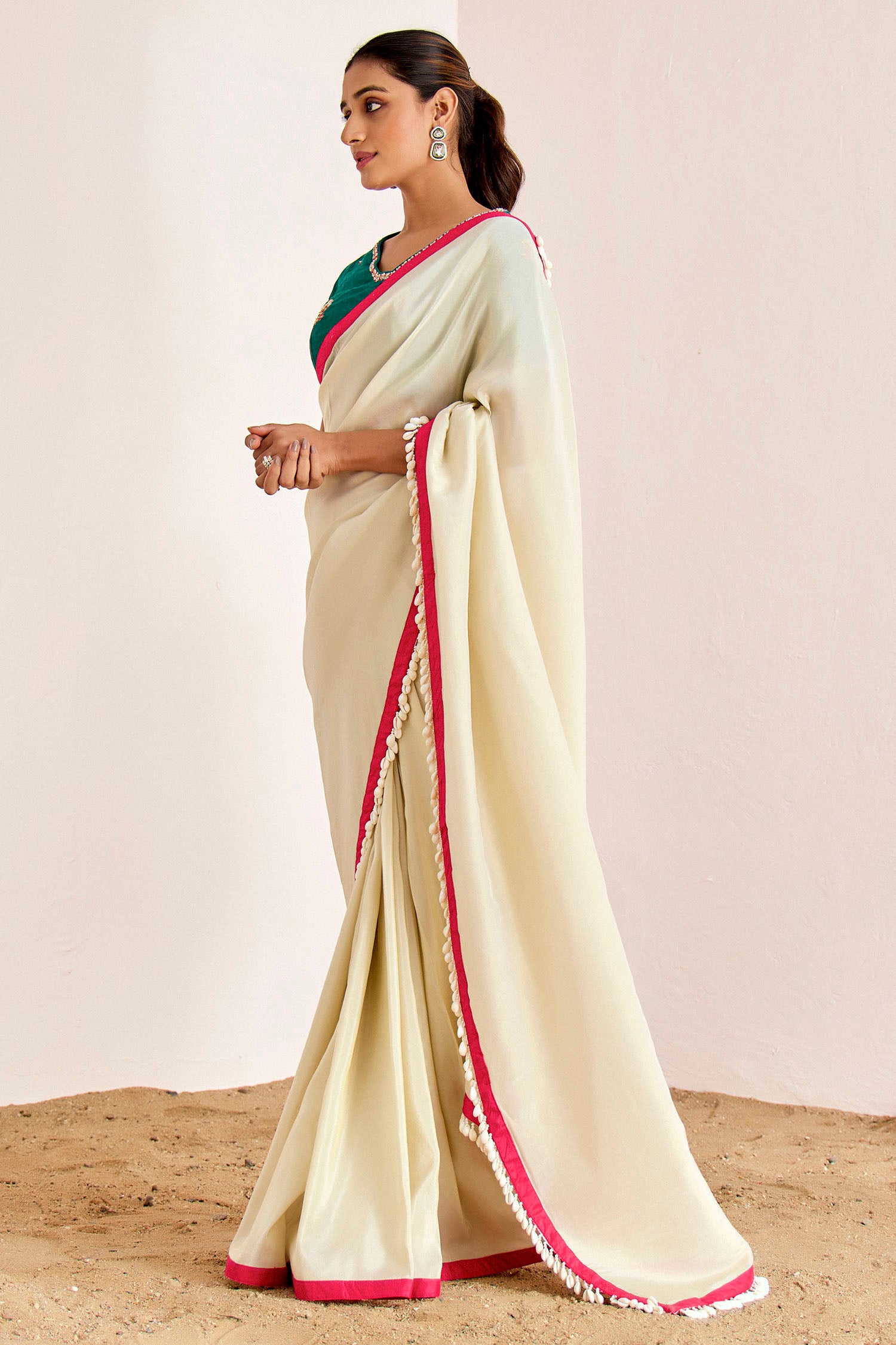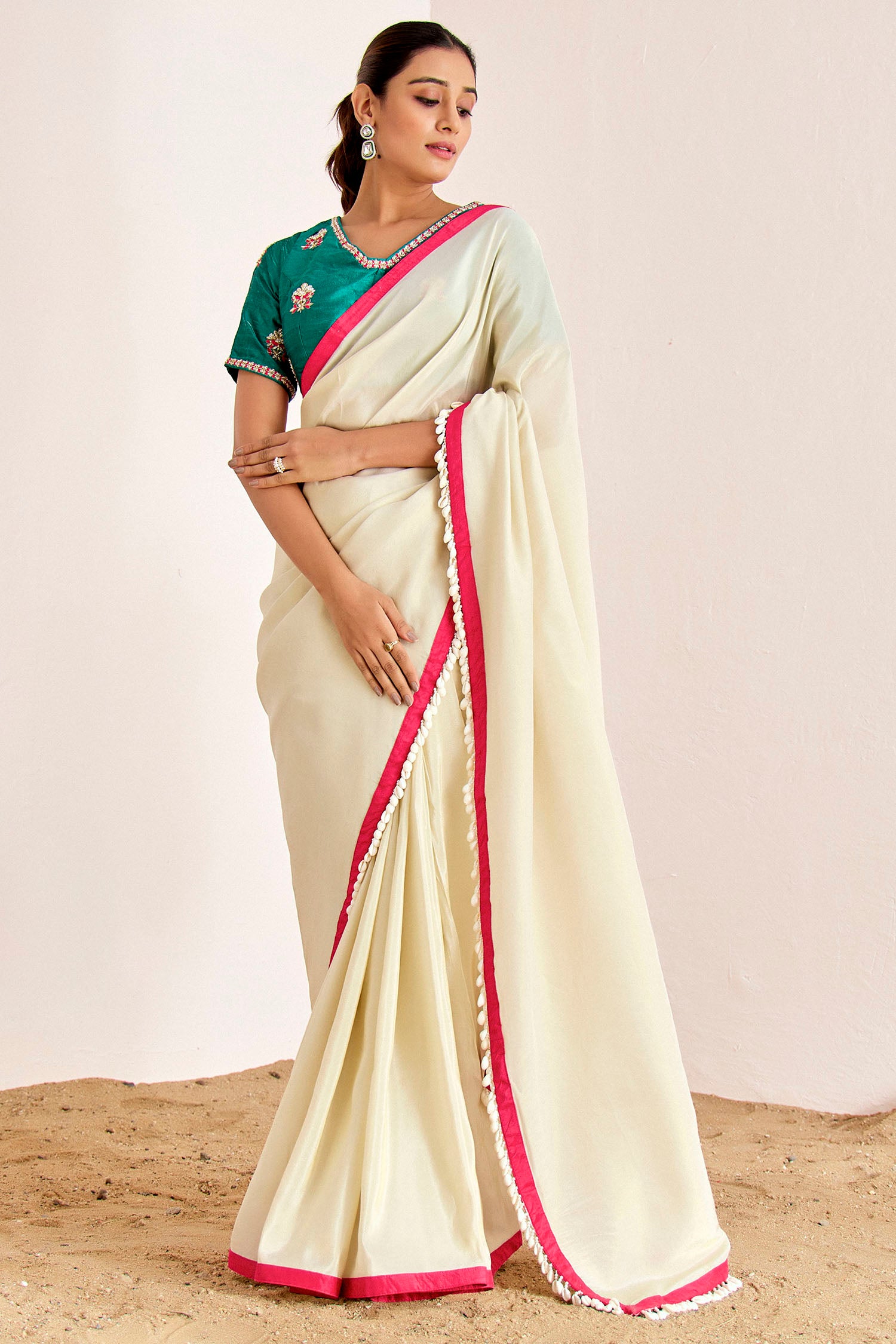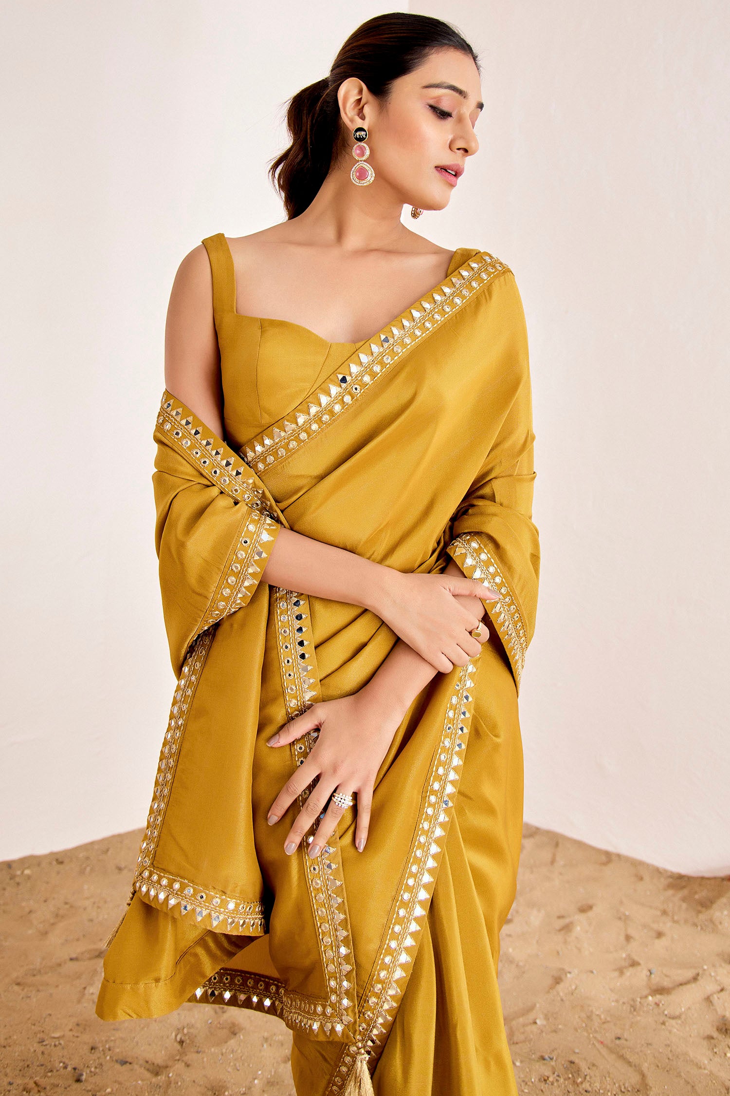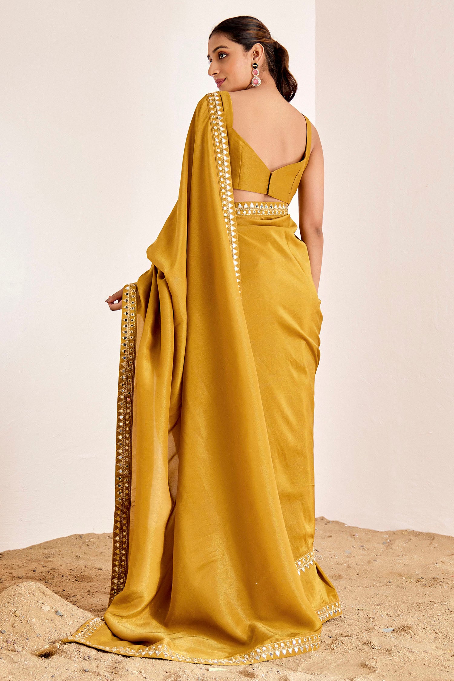 Plain Shimmer Saree with Mirror Work Border and Bustier Blouse