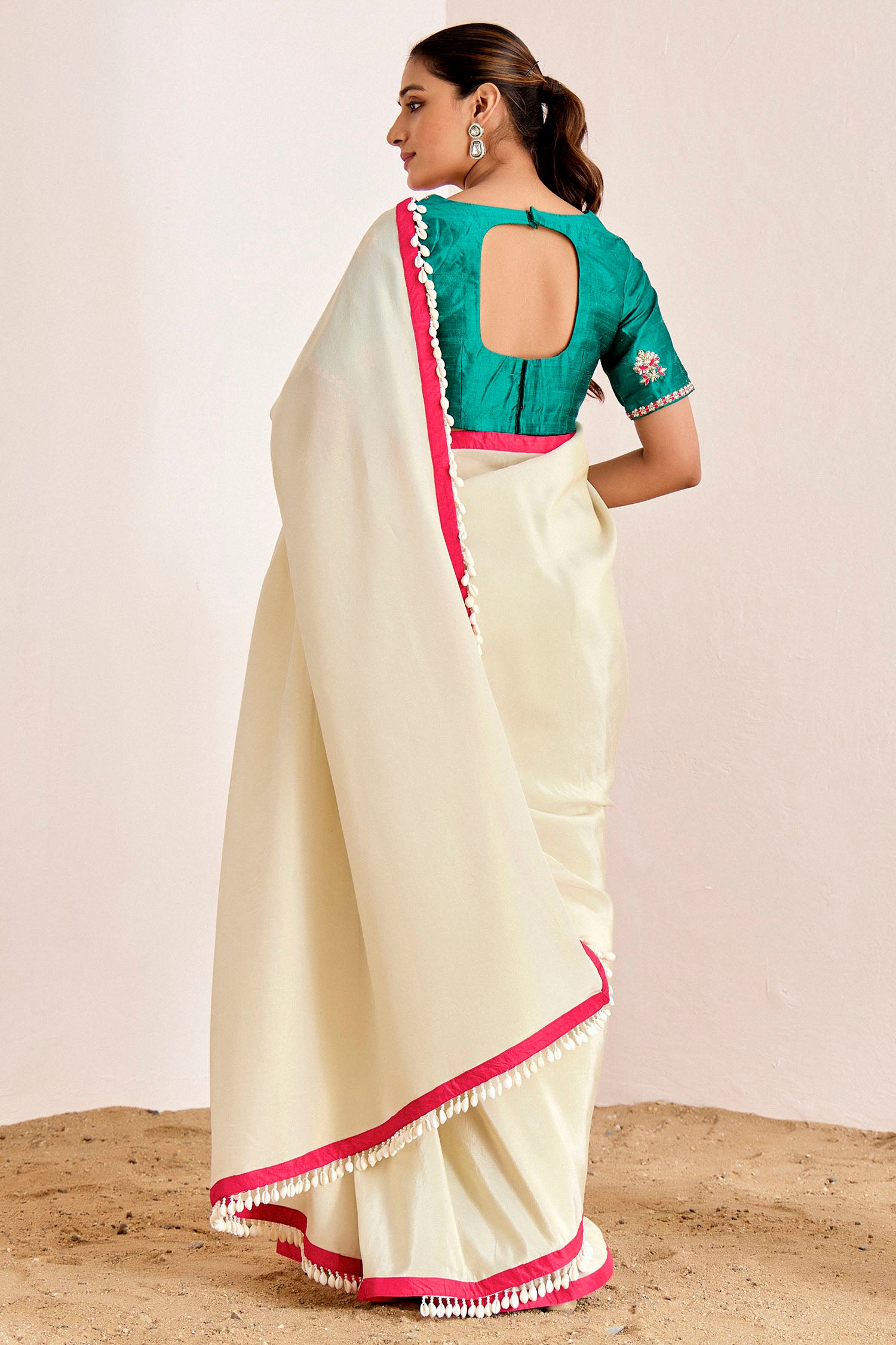 Plain Shimmer Saree with Kodi Pallu and Hand Embroidered Blouse