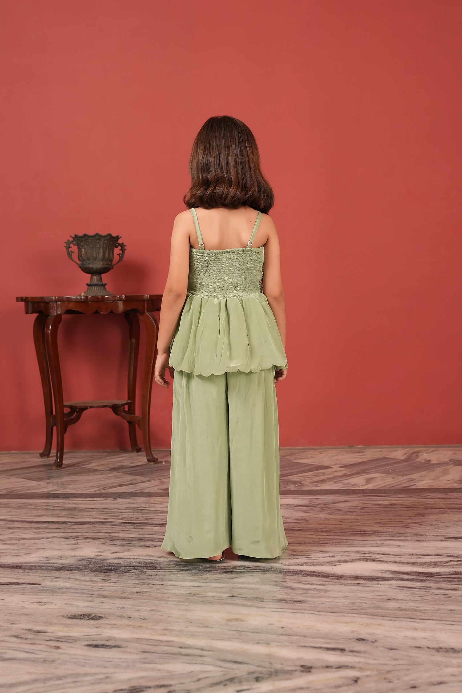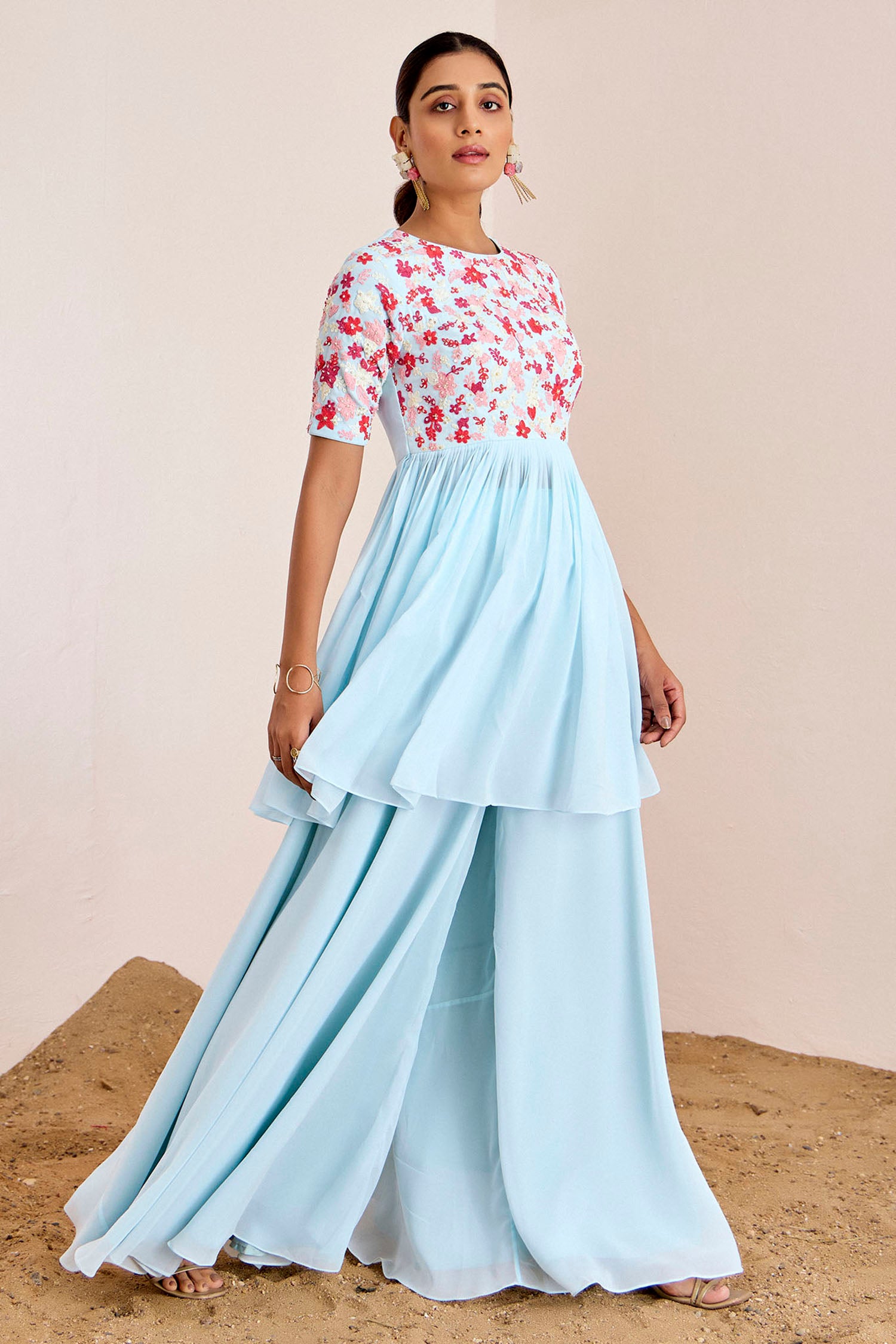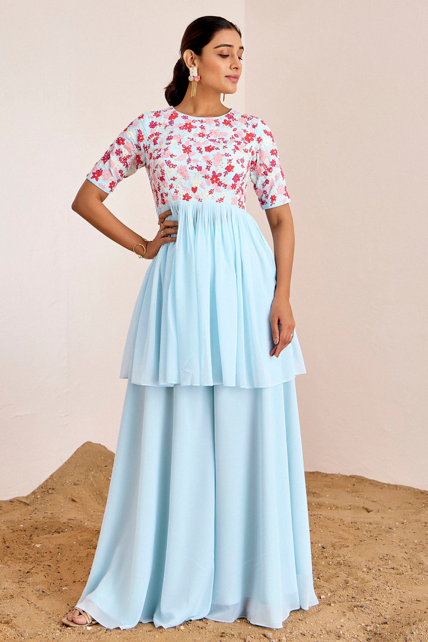 Embroidered Peplum Top & Palazzo Fusion Set