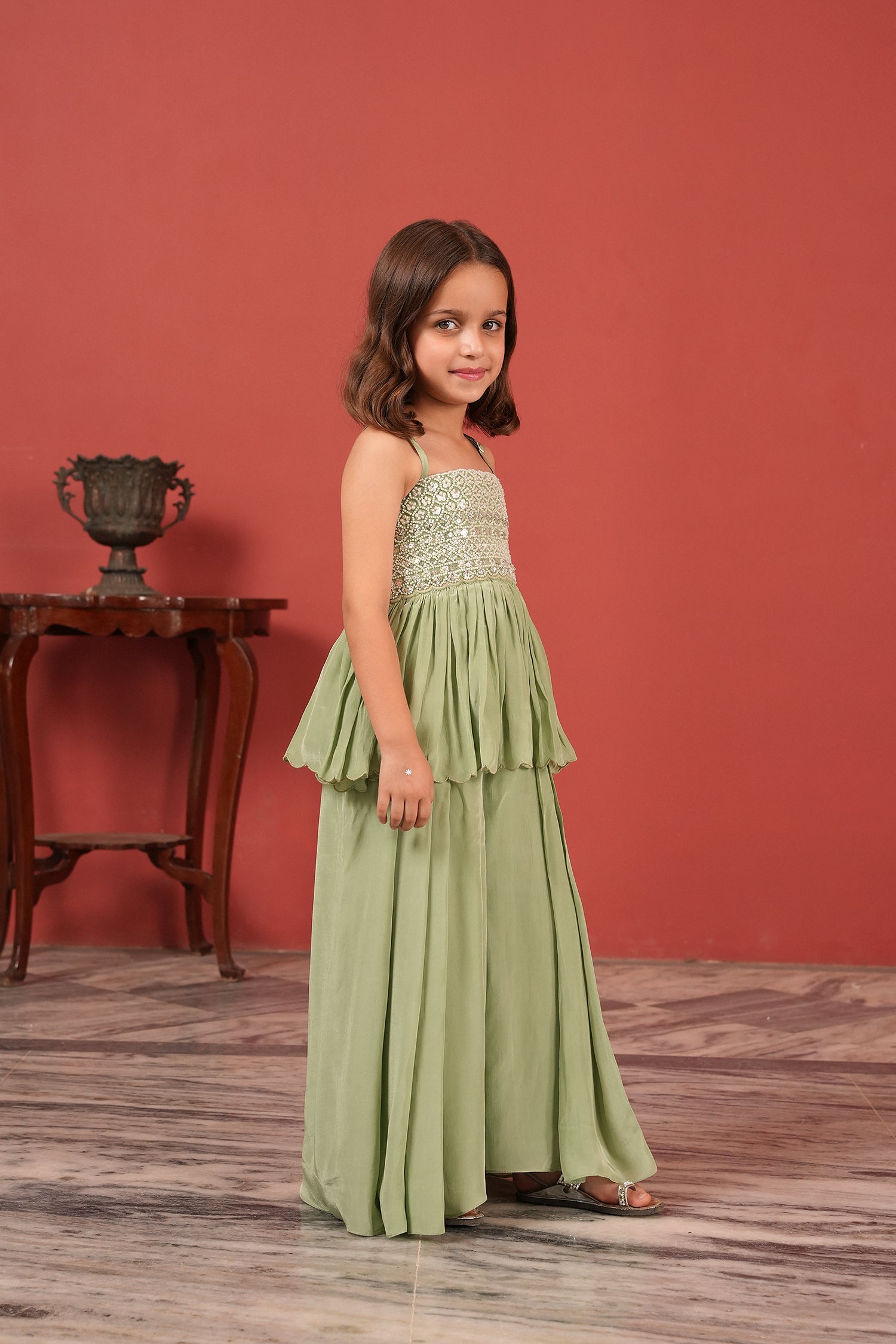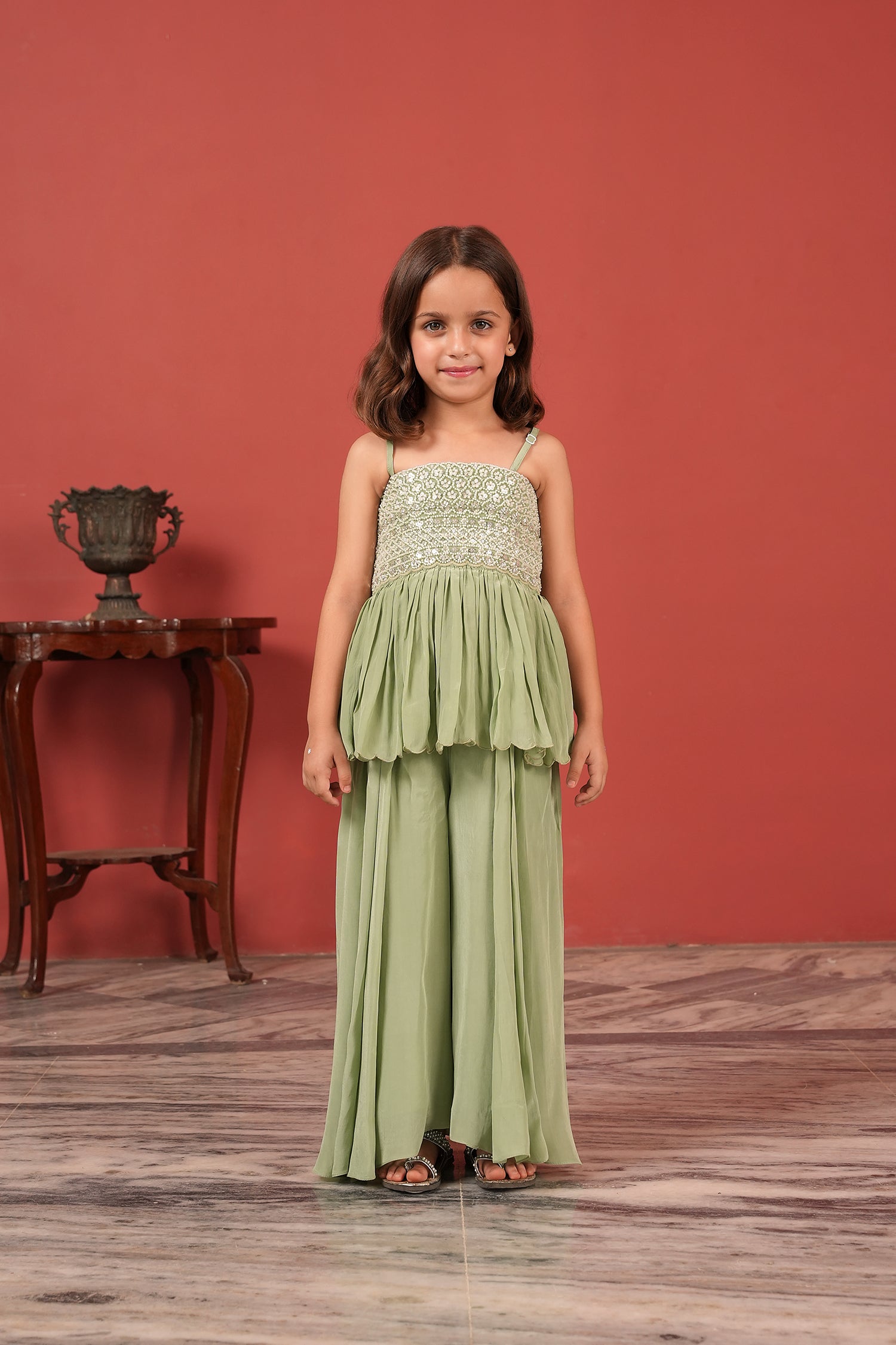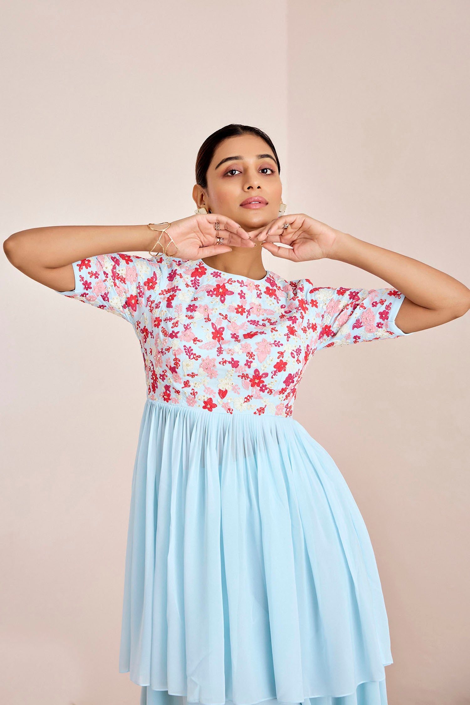 Embroidered Peplum Top & Palazzo Fusion Set