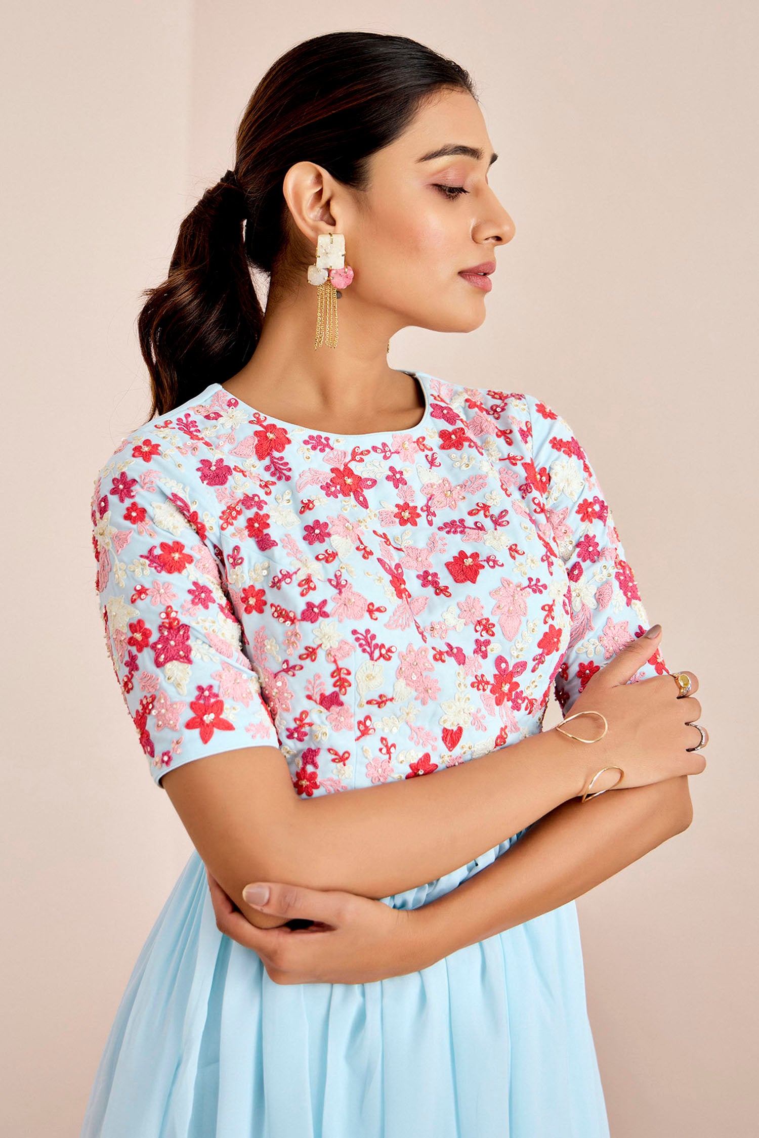 Full-Flared Skirt Set with flawless blouse