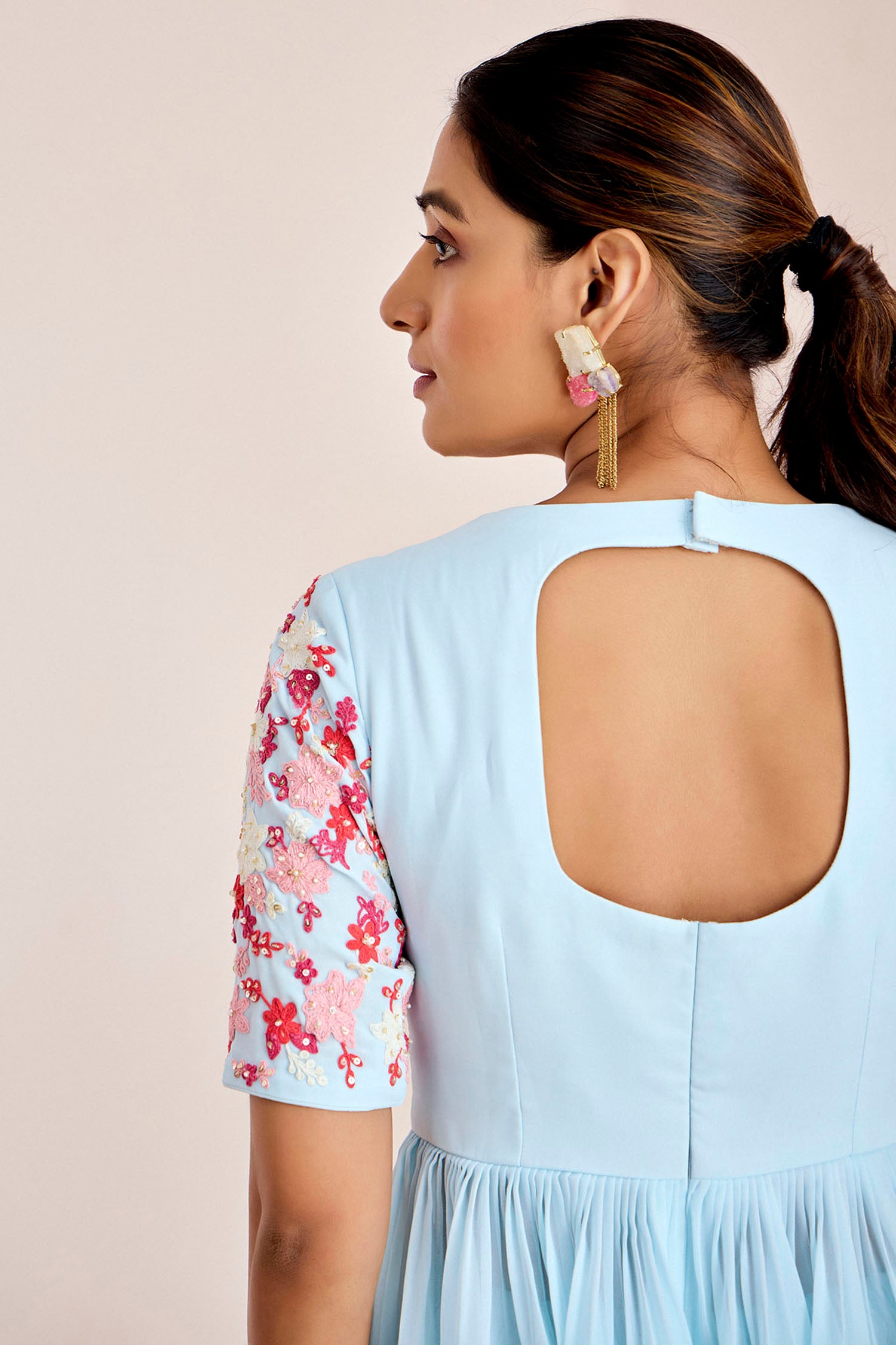 Hand-Embroidered Cutwork Blouse with Sequin Saree Set