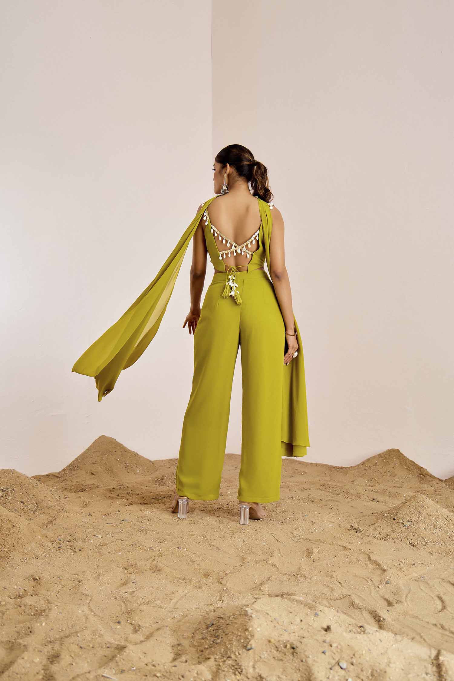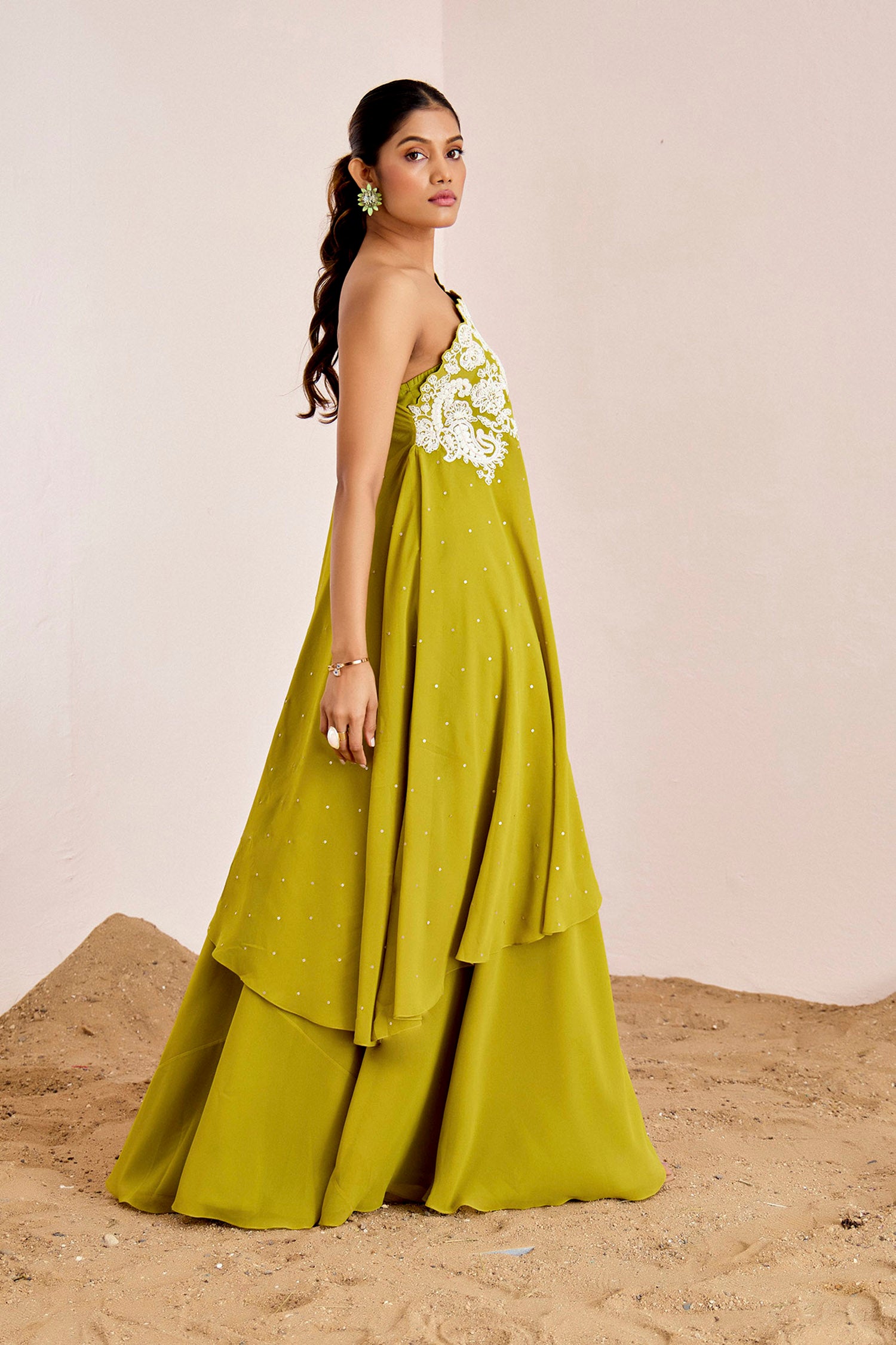 Green handcrafted lehenga set