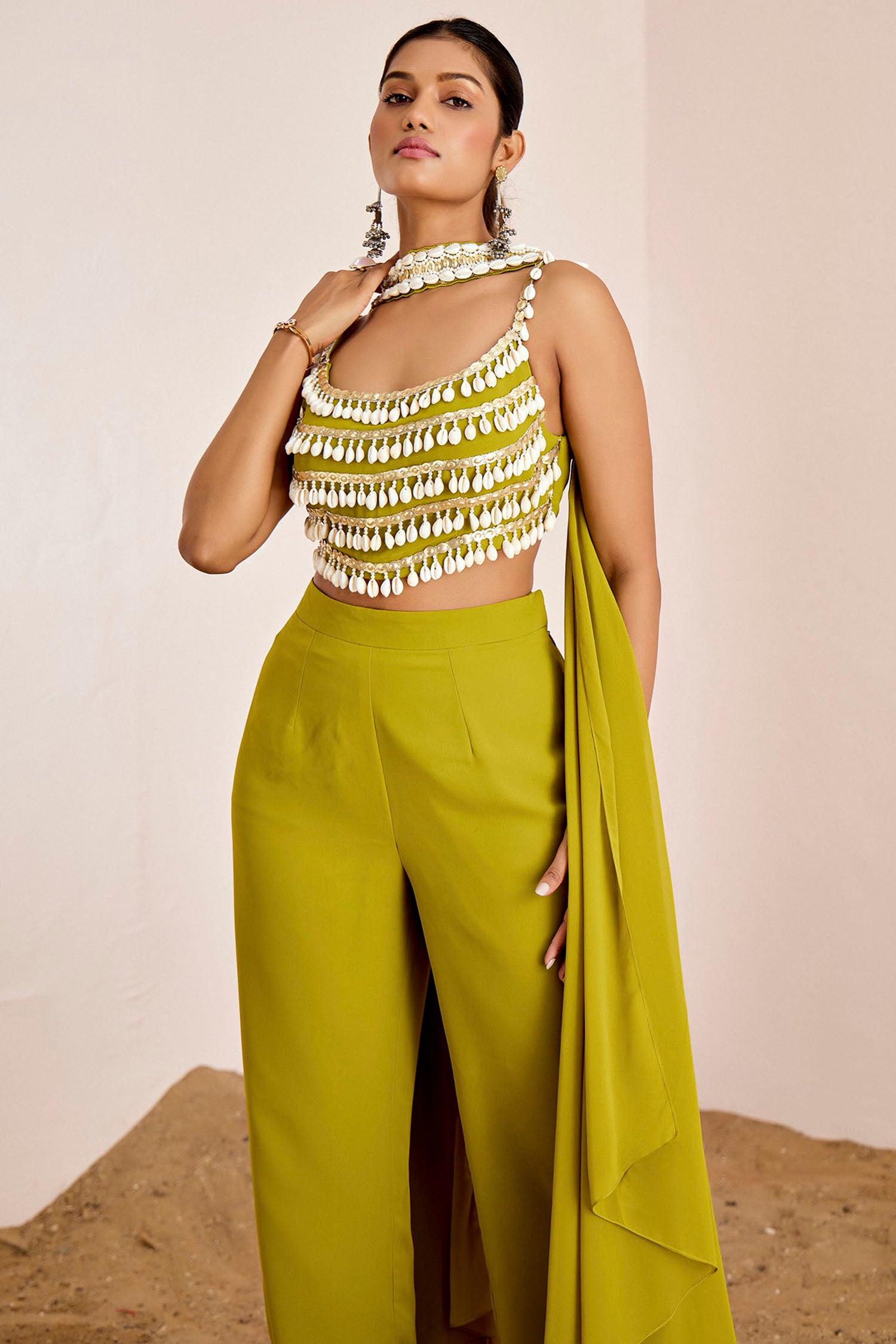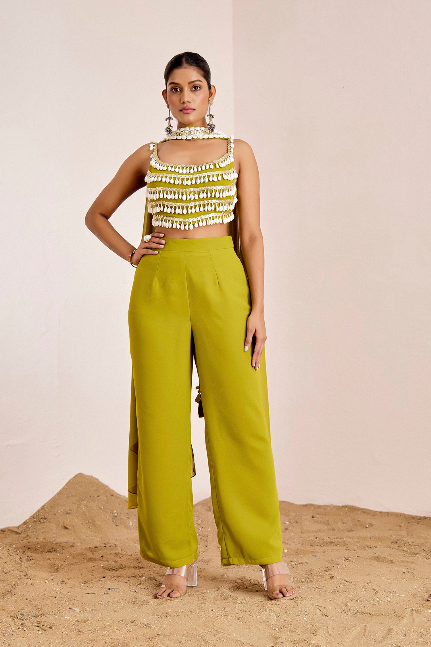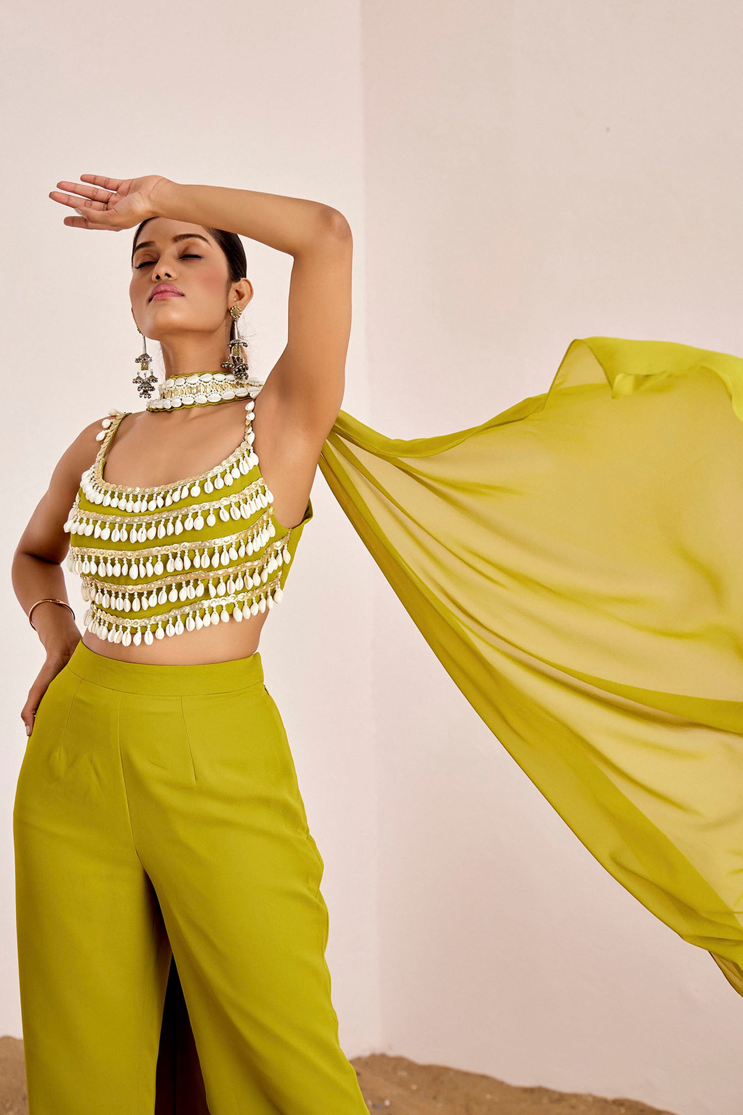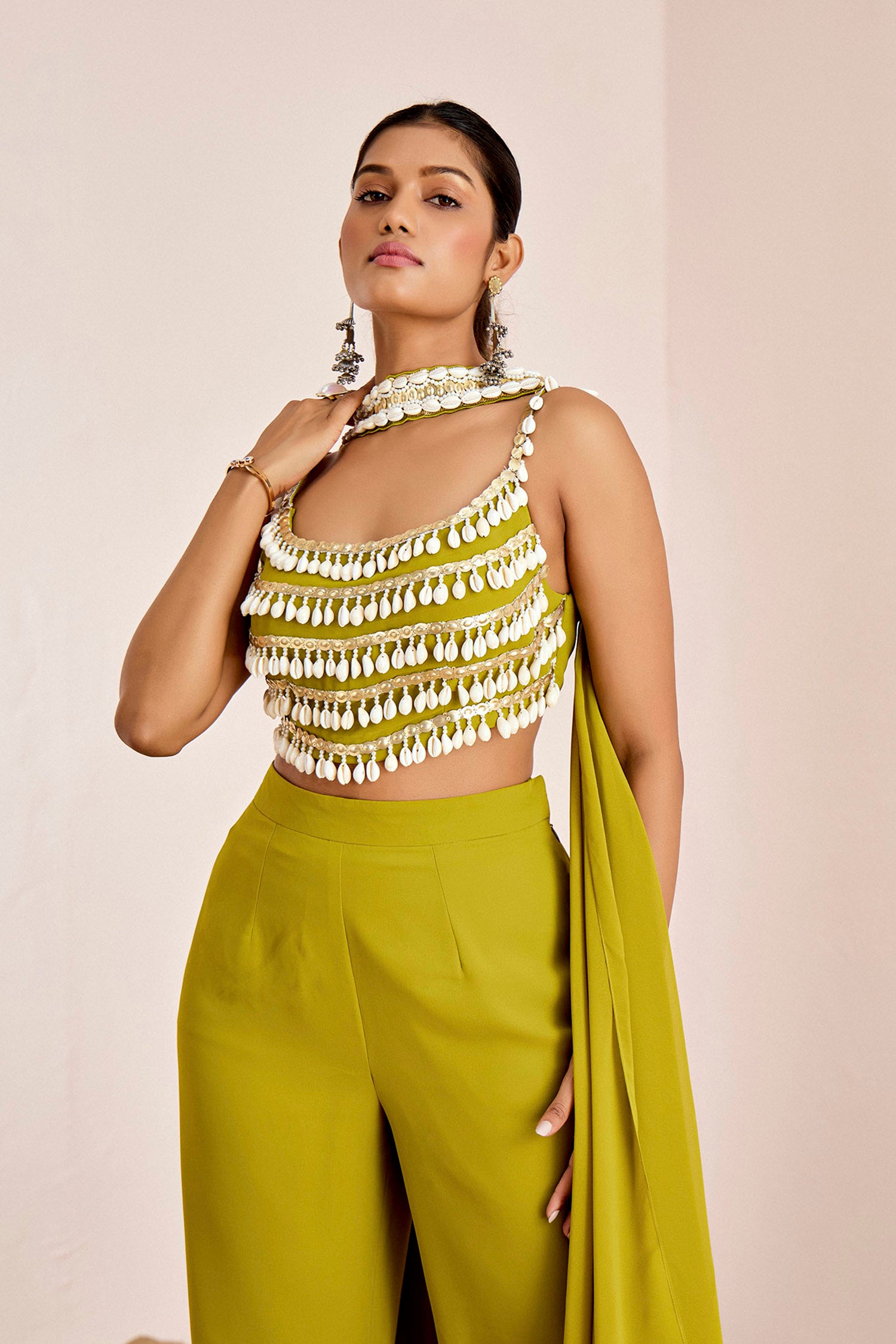 Kodi & Sequins Strappy Blouse with Straight Pants and Choker Dupatta