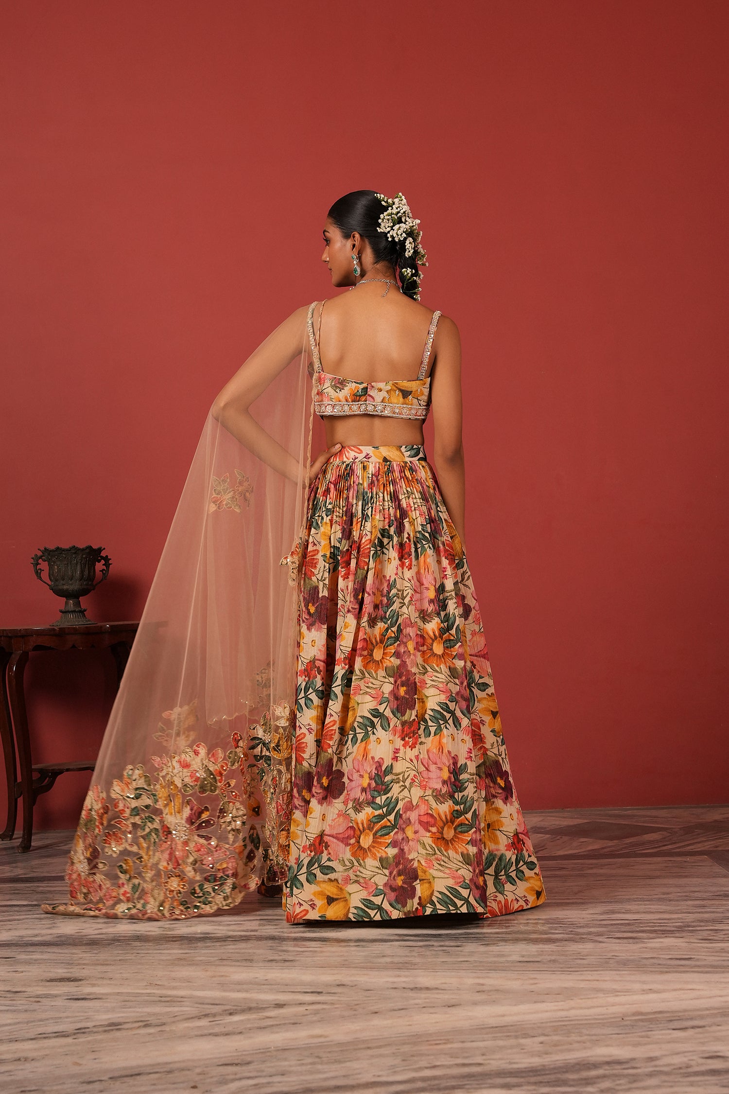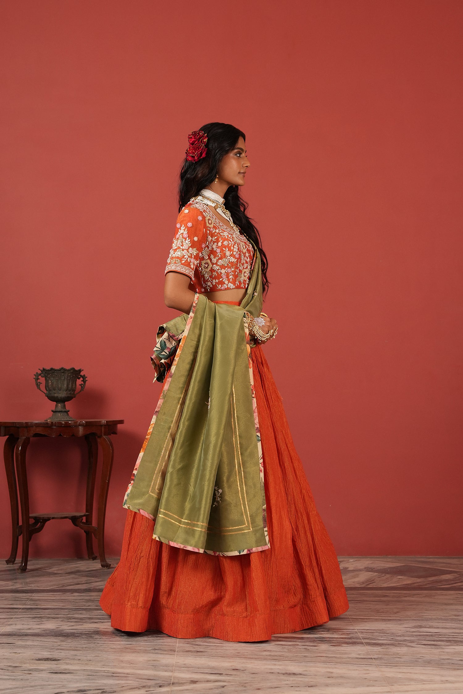 Orange Zardozi Hand-Embroidered Lehenga Set