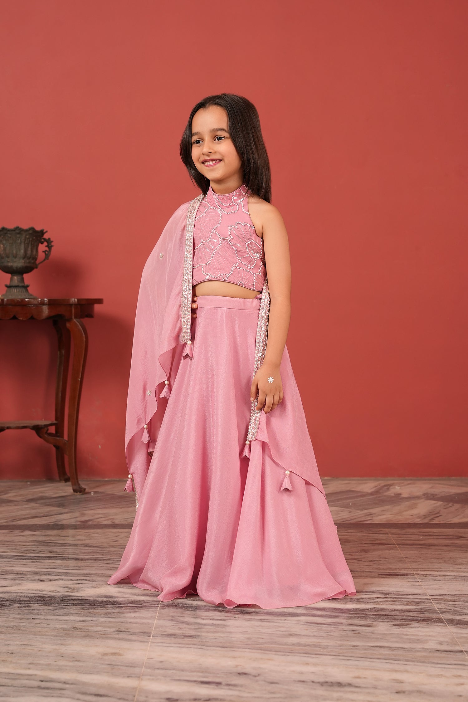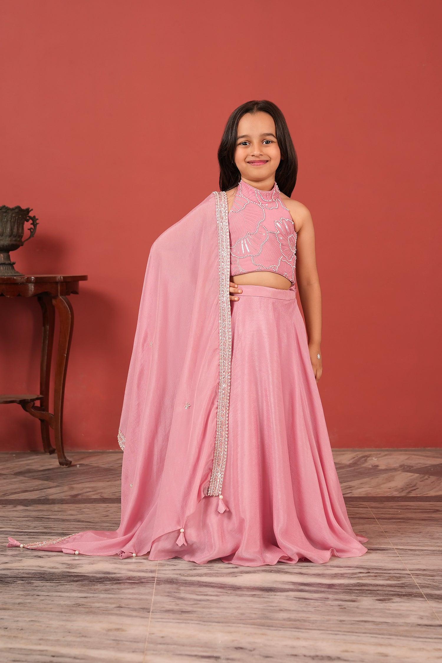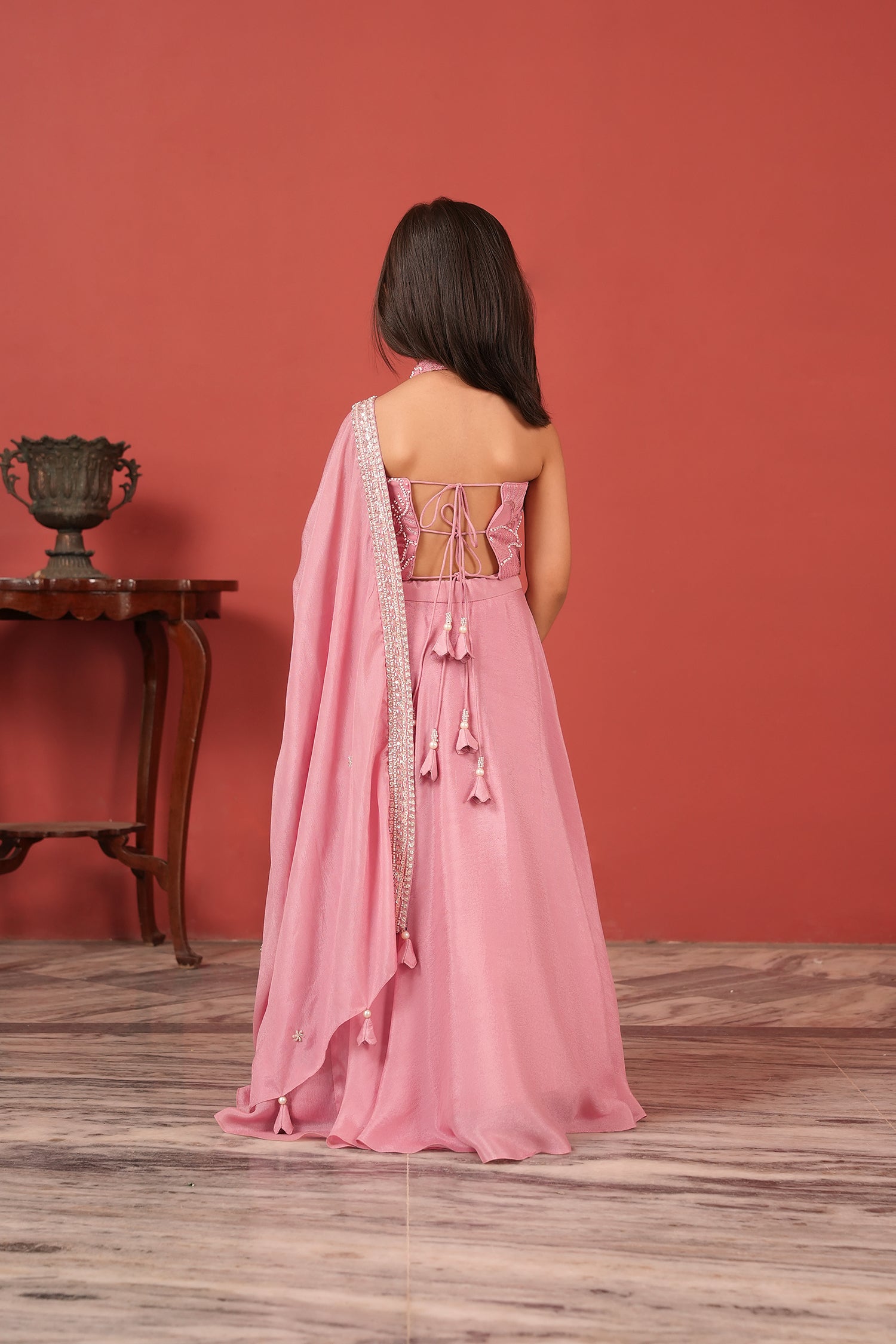 Pink Handcrafted Lehenga Set For Girls