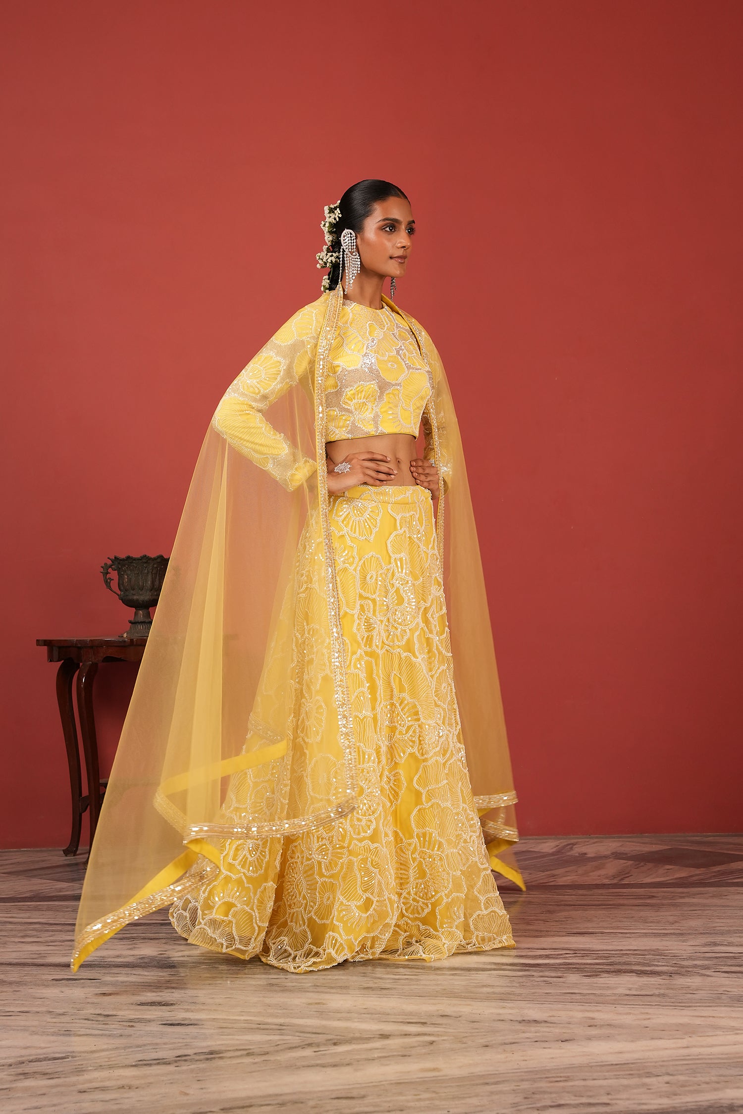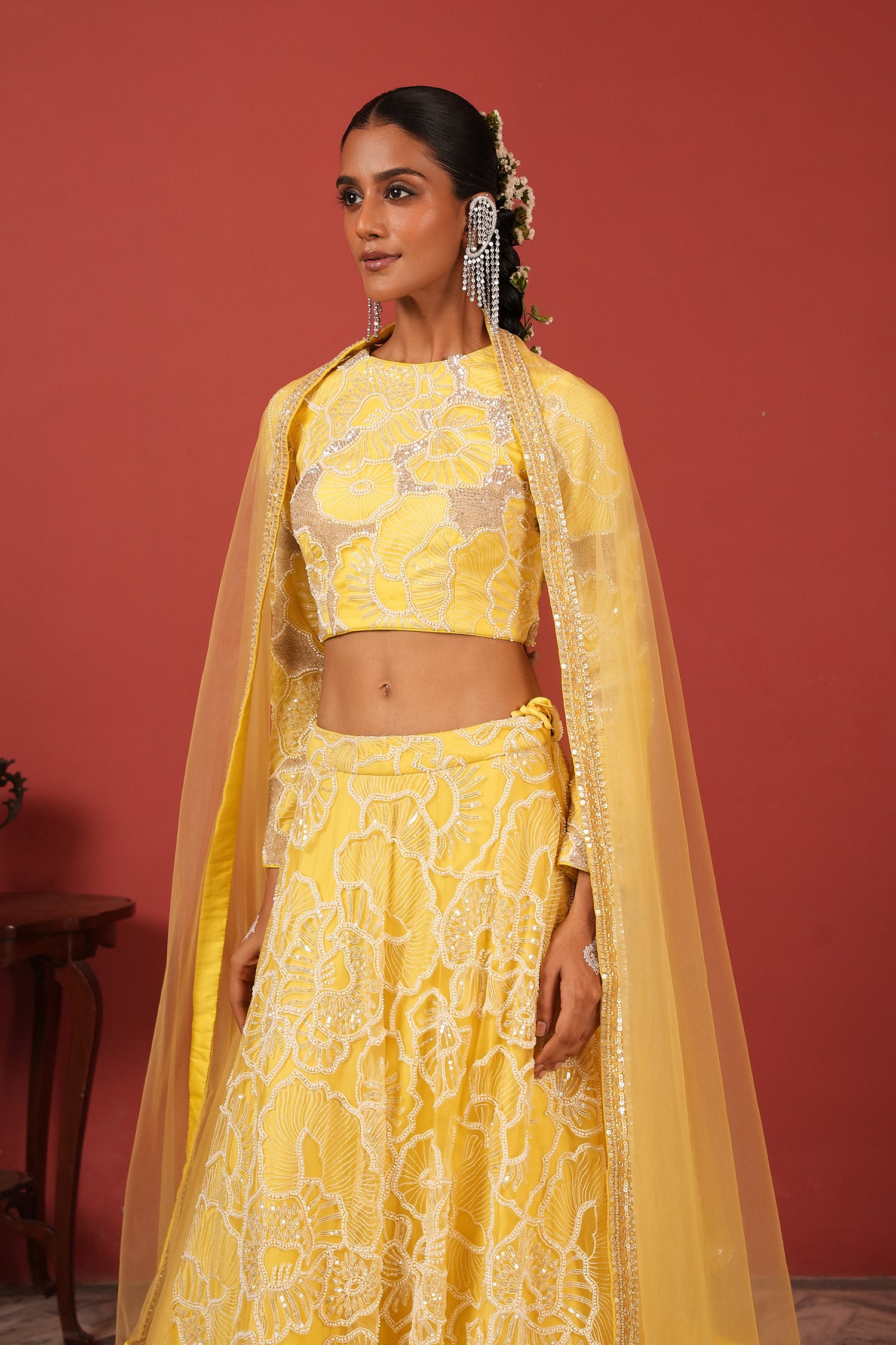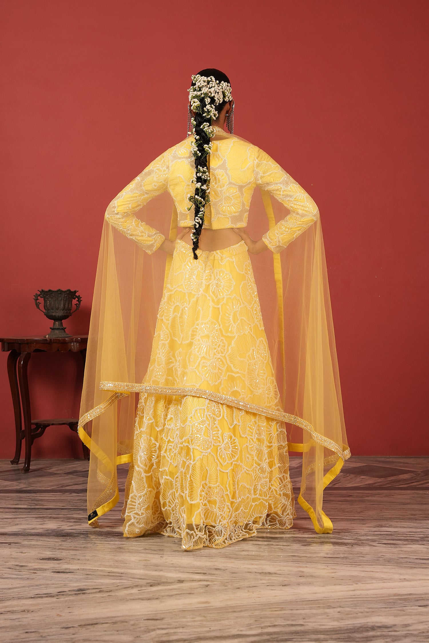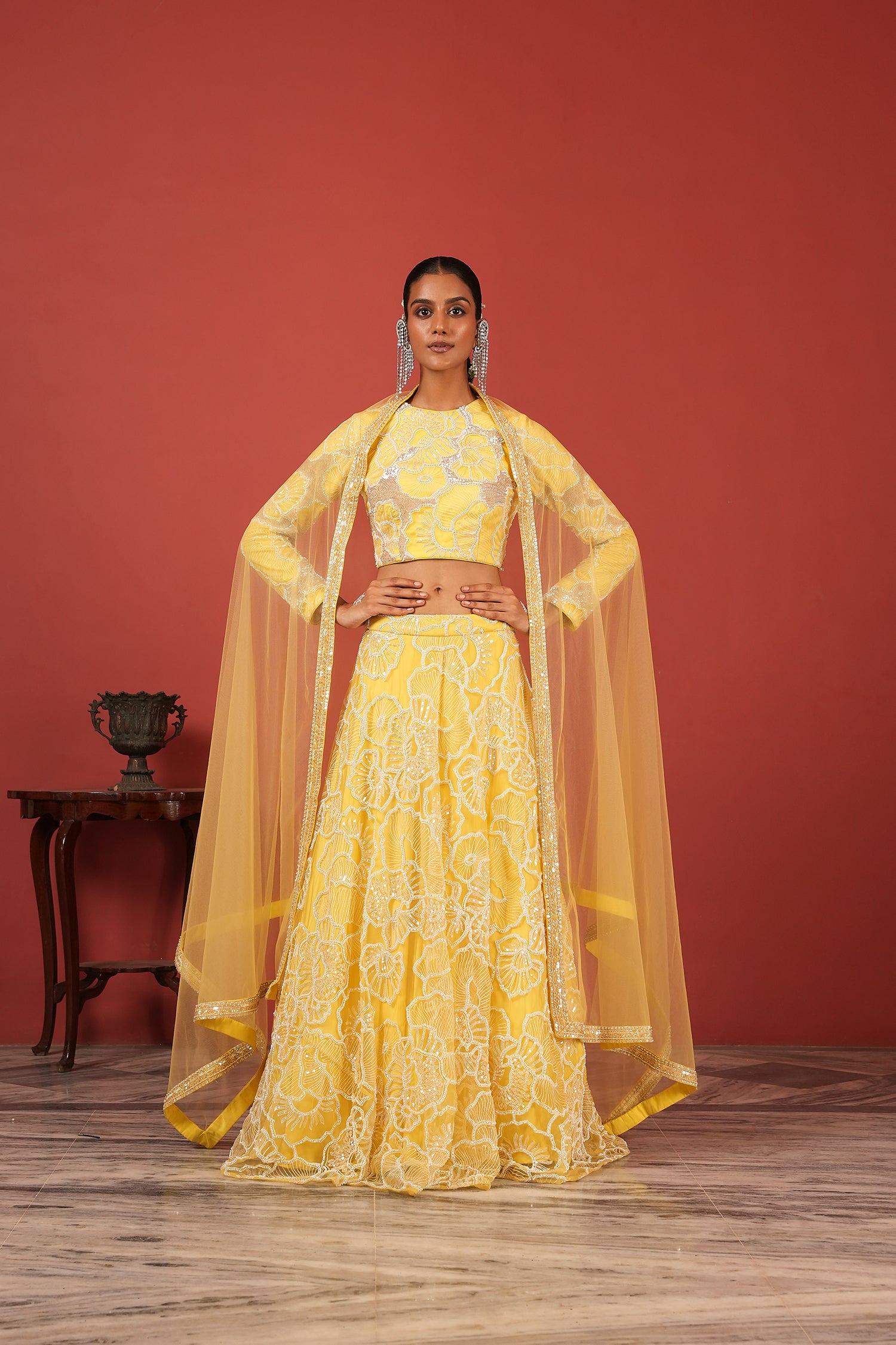 Sunshine Yellow Hand-Embroidered Lehenga Set