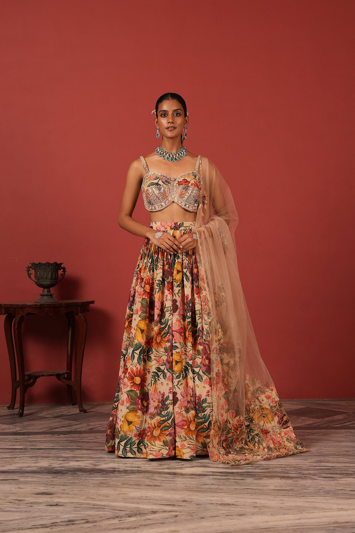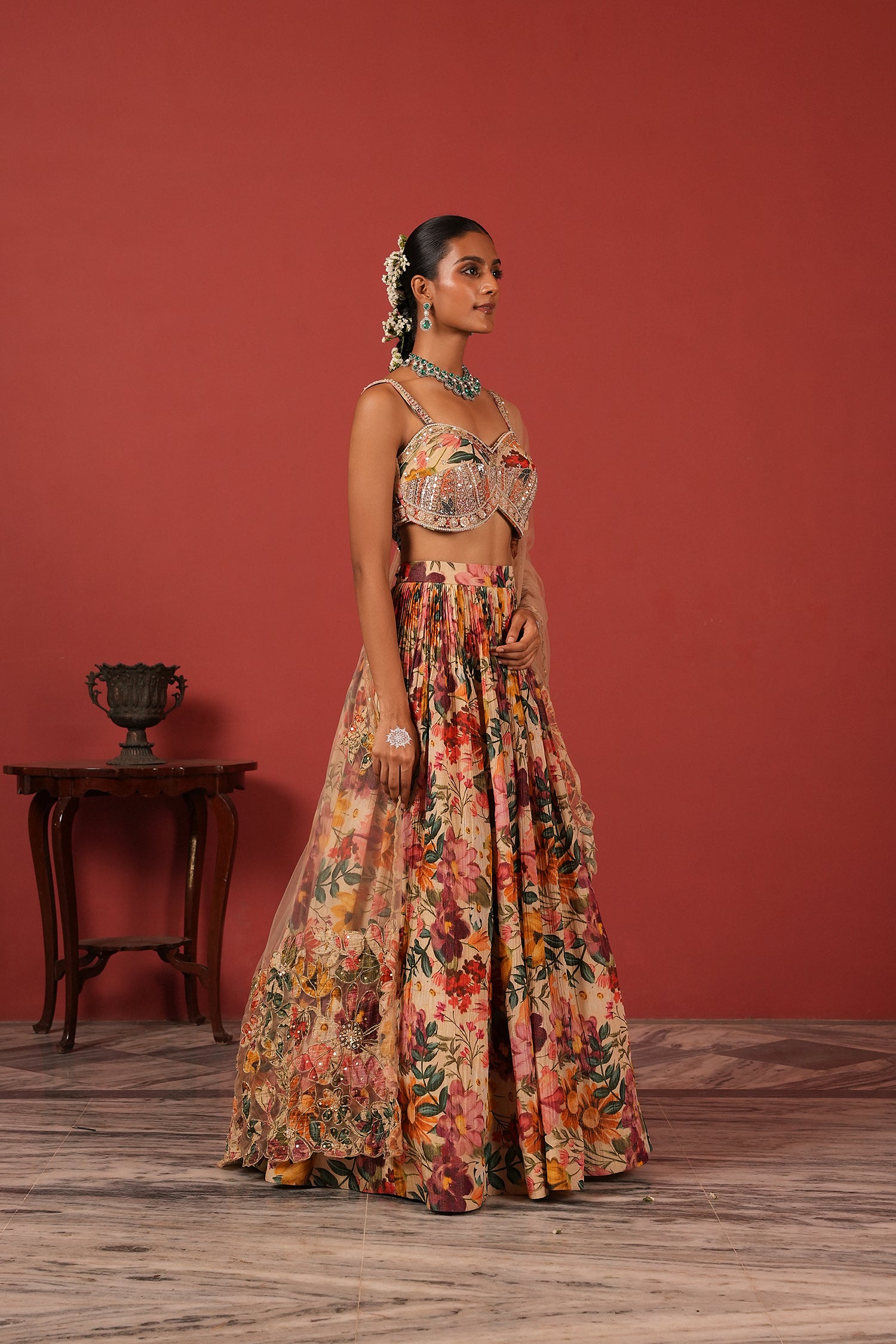 Green Bustier Blouse Lehenga Set
