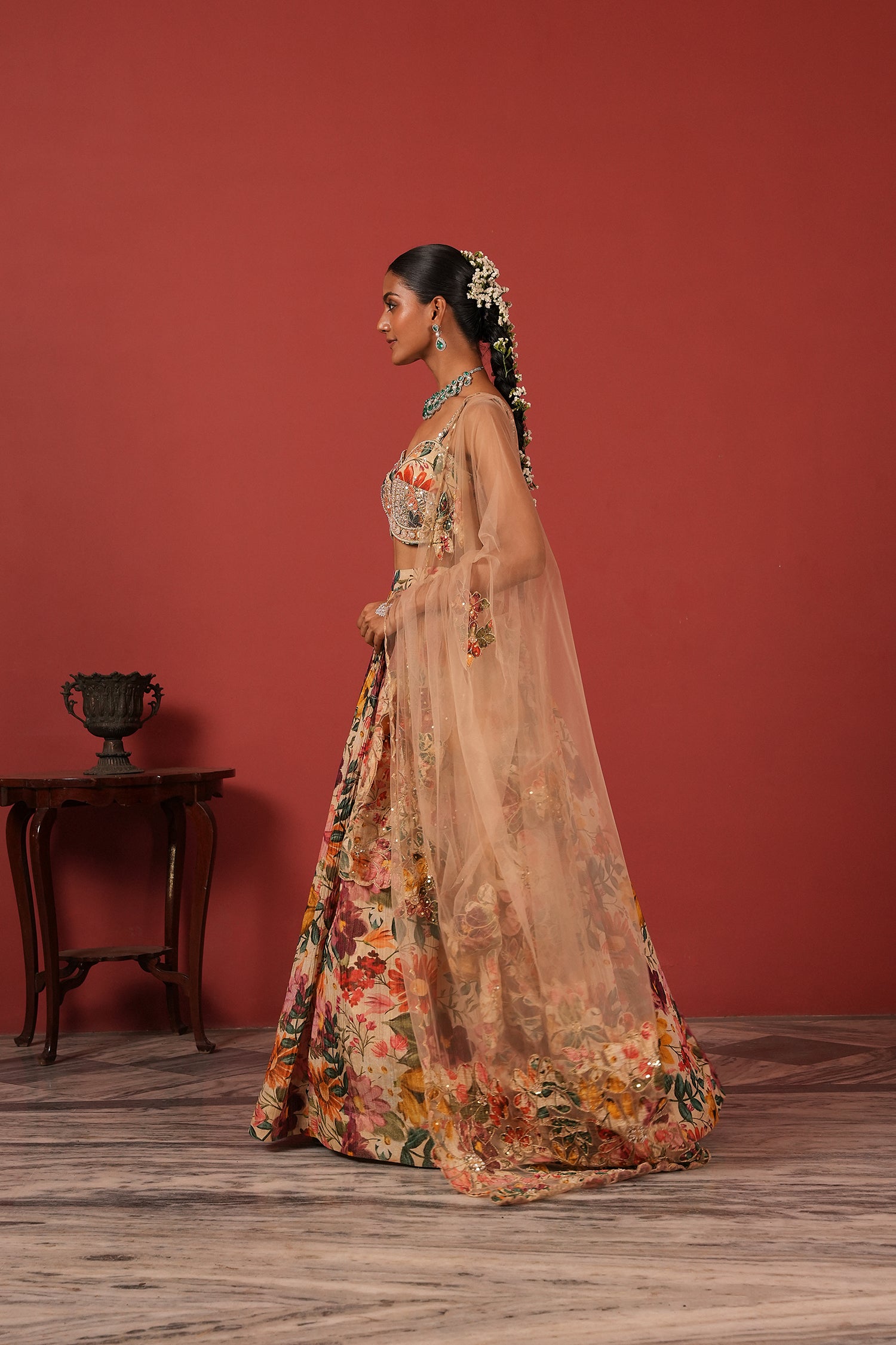 Handcrafted Lehenga Set with Tassel Sleeve Blouse & Fully Embroidered