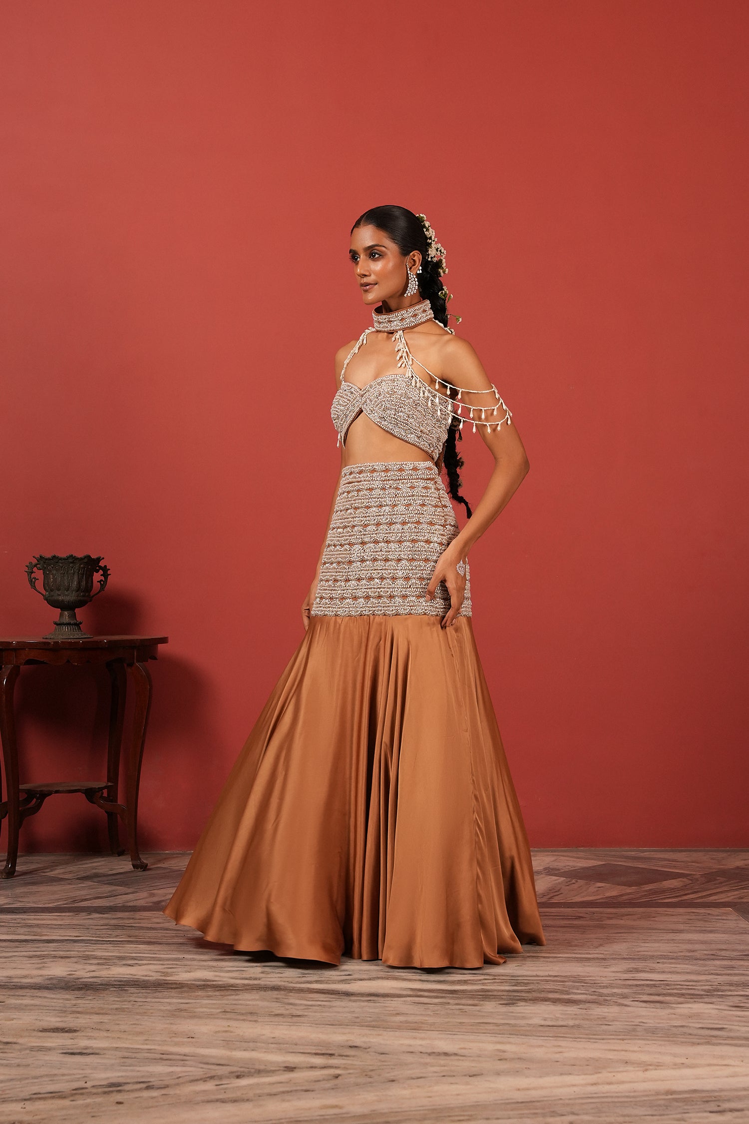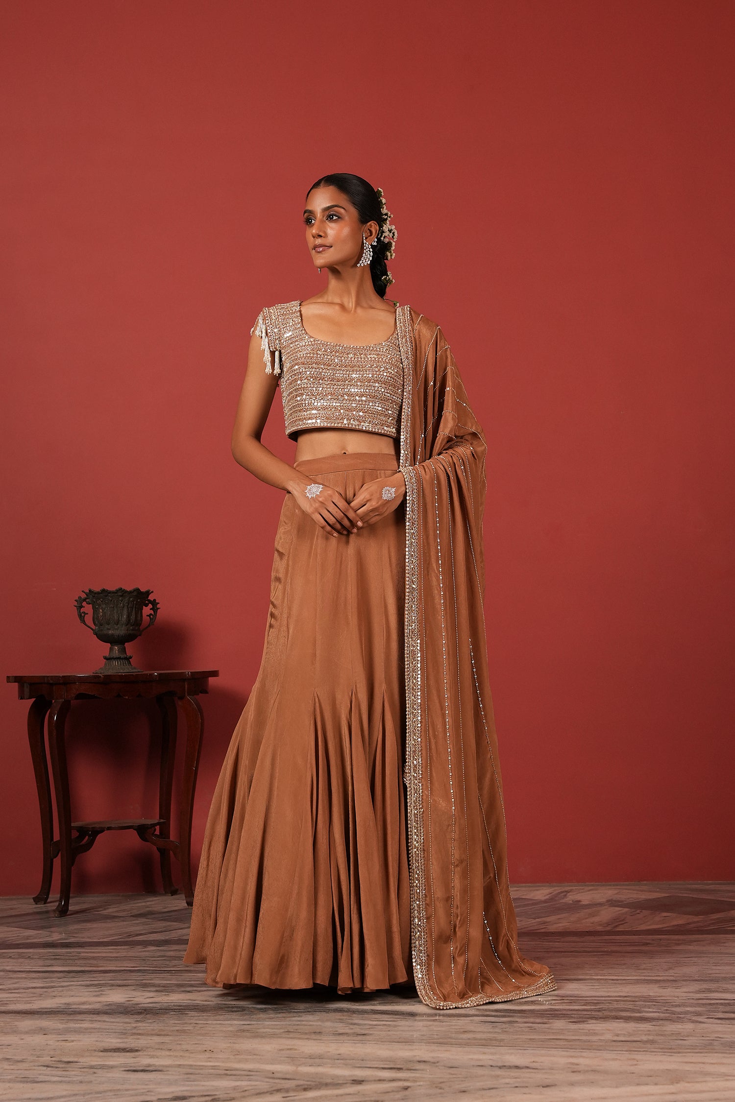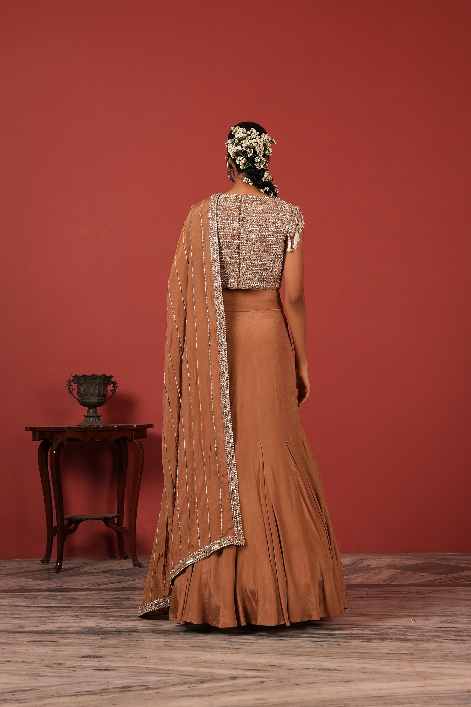 Brown Fusion Lehenga Set