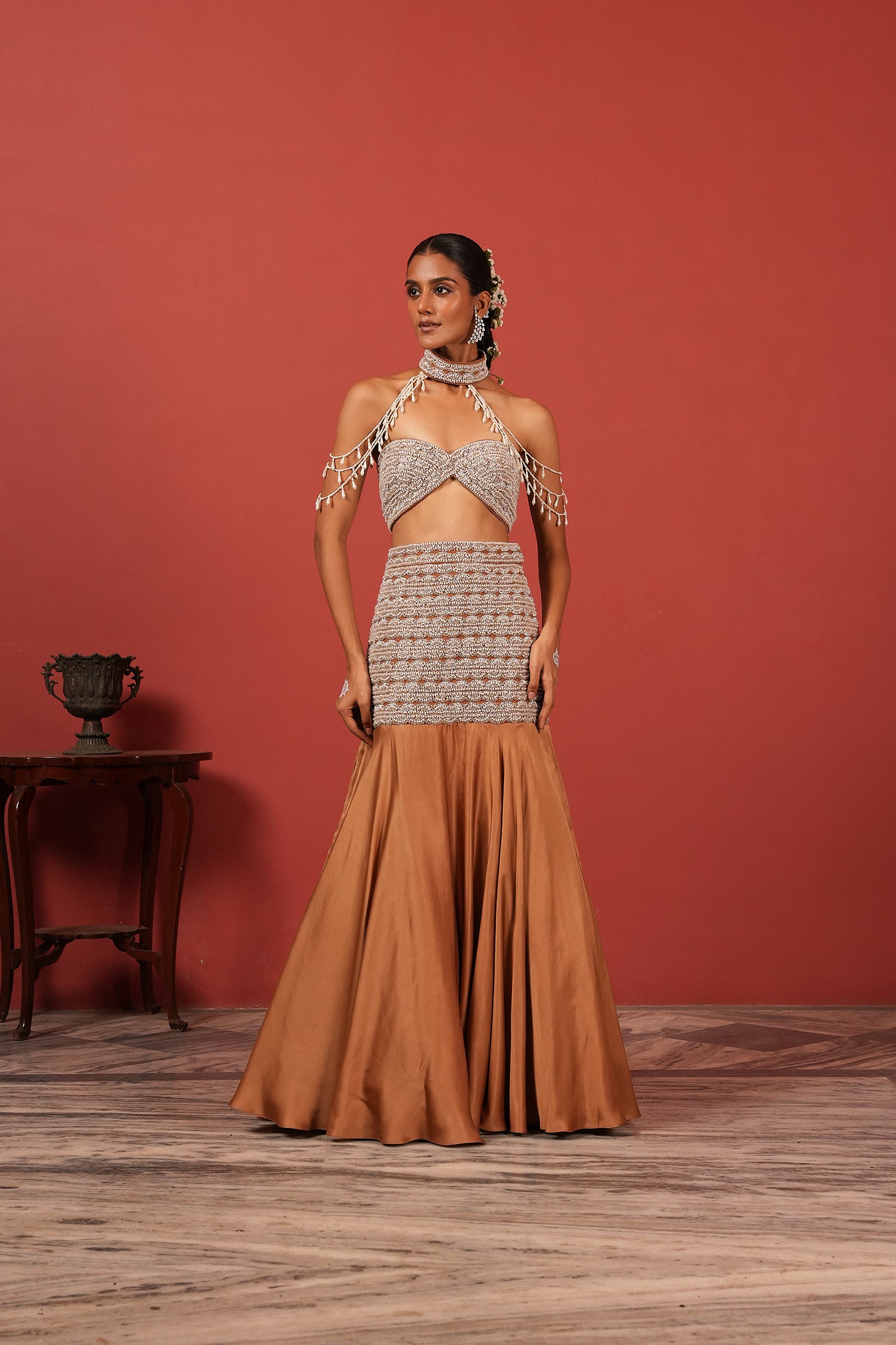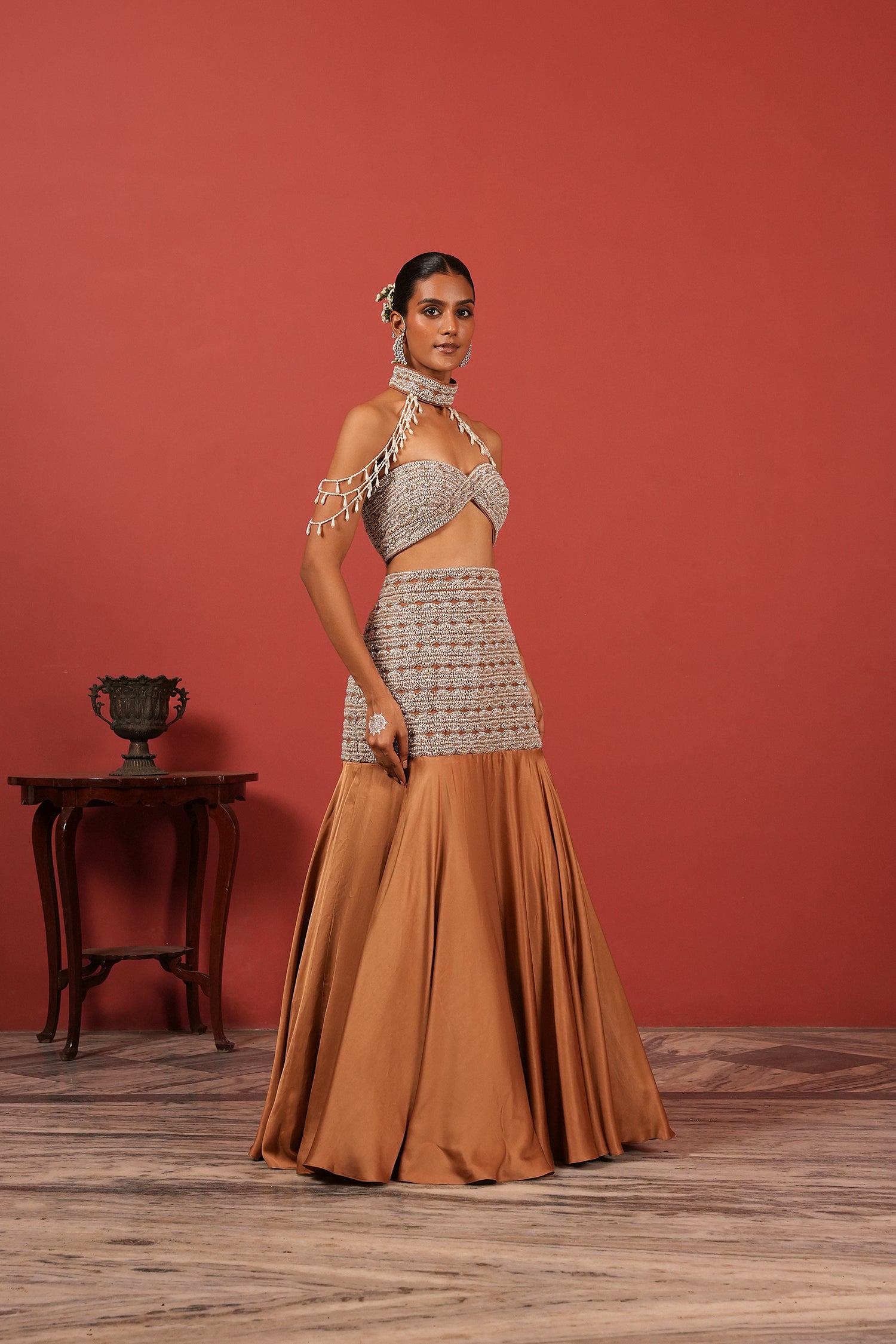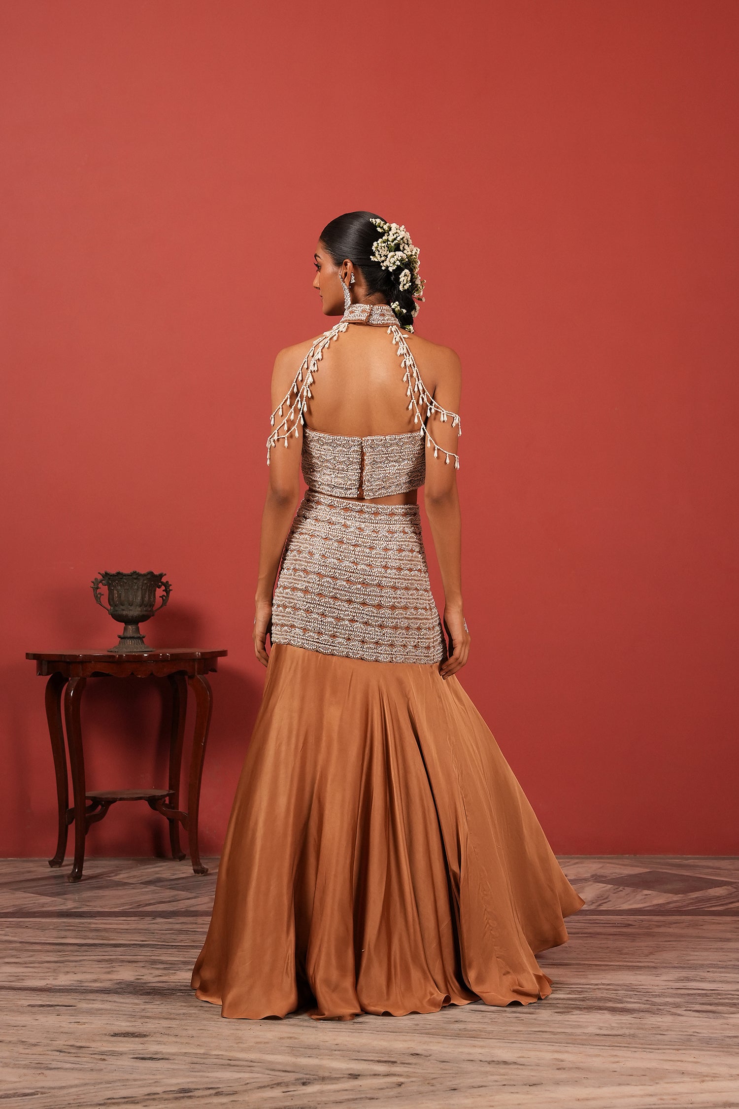 Brown Fusion Lehenga Set
