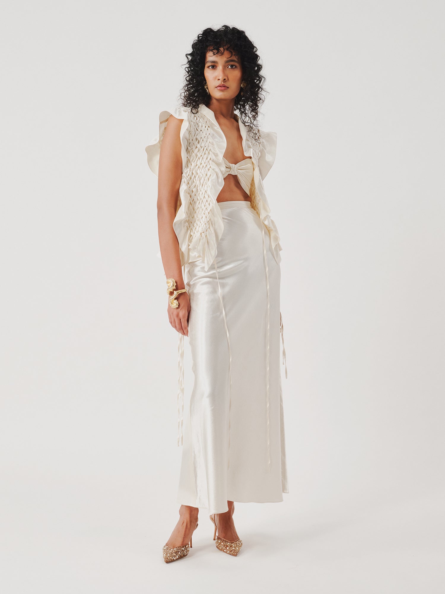 Add drama to your wardrobe with our drape skirt set selection. These skirts come with coordinated tops or embellished blouses that complement each curve while allowing movement and ease. Ideal for mehendi ceremonies, festive dinners, or photo shoots, these cape skirt sets embrace the playful and artistic side of Indo-western fashion. From layered tulles to ruched satins and metallic finishes, our skirts offer a vibrant spin on traditional silhouettes. If you're building your collection of versatile Indo western outfits, don't skip this trend-forward category at Fashefy Women.