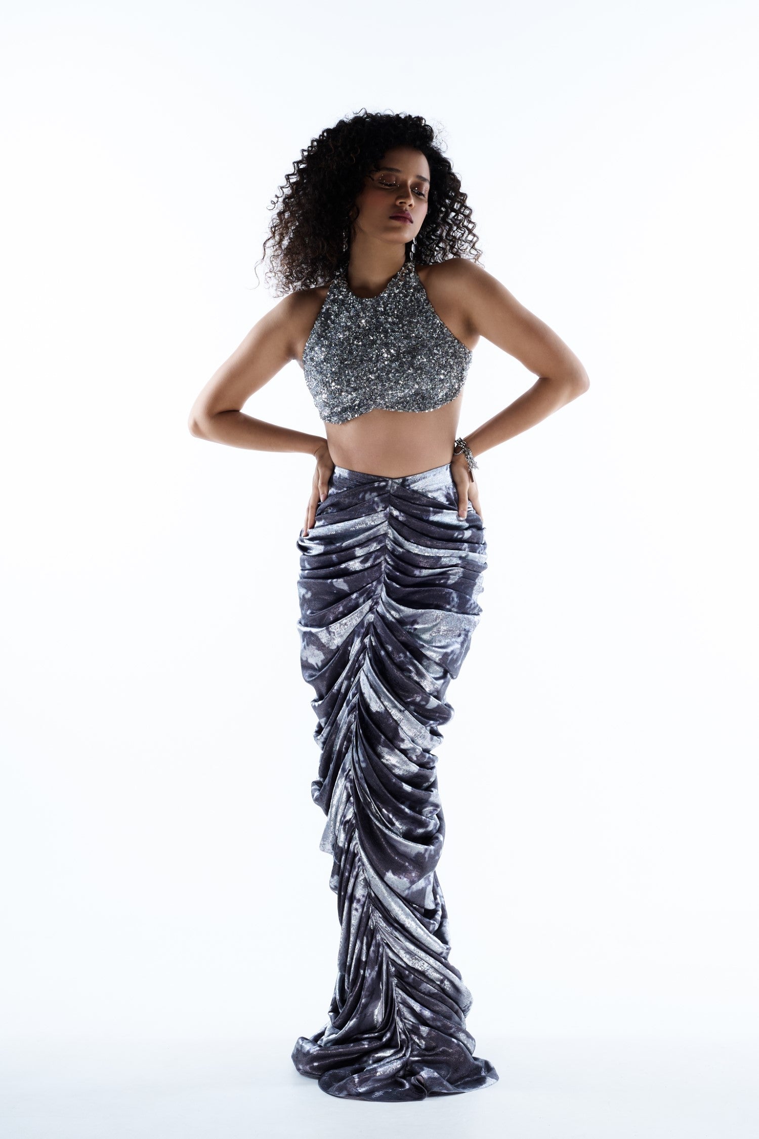 Add drama to your wardrobe with our drape skirt set selection. These skirts come with coordinated tops or embellished blouses that complement each curve while allowing movement and ease. Ideal for mehendi ceremonies, festive dinners, or photo shoots, these cape skirt sets embrace the playful and artistic side of Indo-western fashion. From layered tulles to ruched satins and metallic finishes, our skirts offer a vibrant spin on traditional silhouettes. If you're building your collection of versatile Indo western outfits, don't skip this trend-forward category at Fashefy Women.