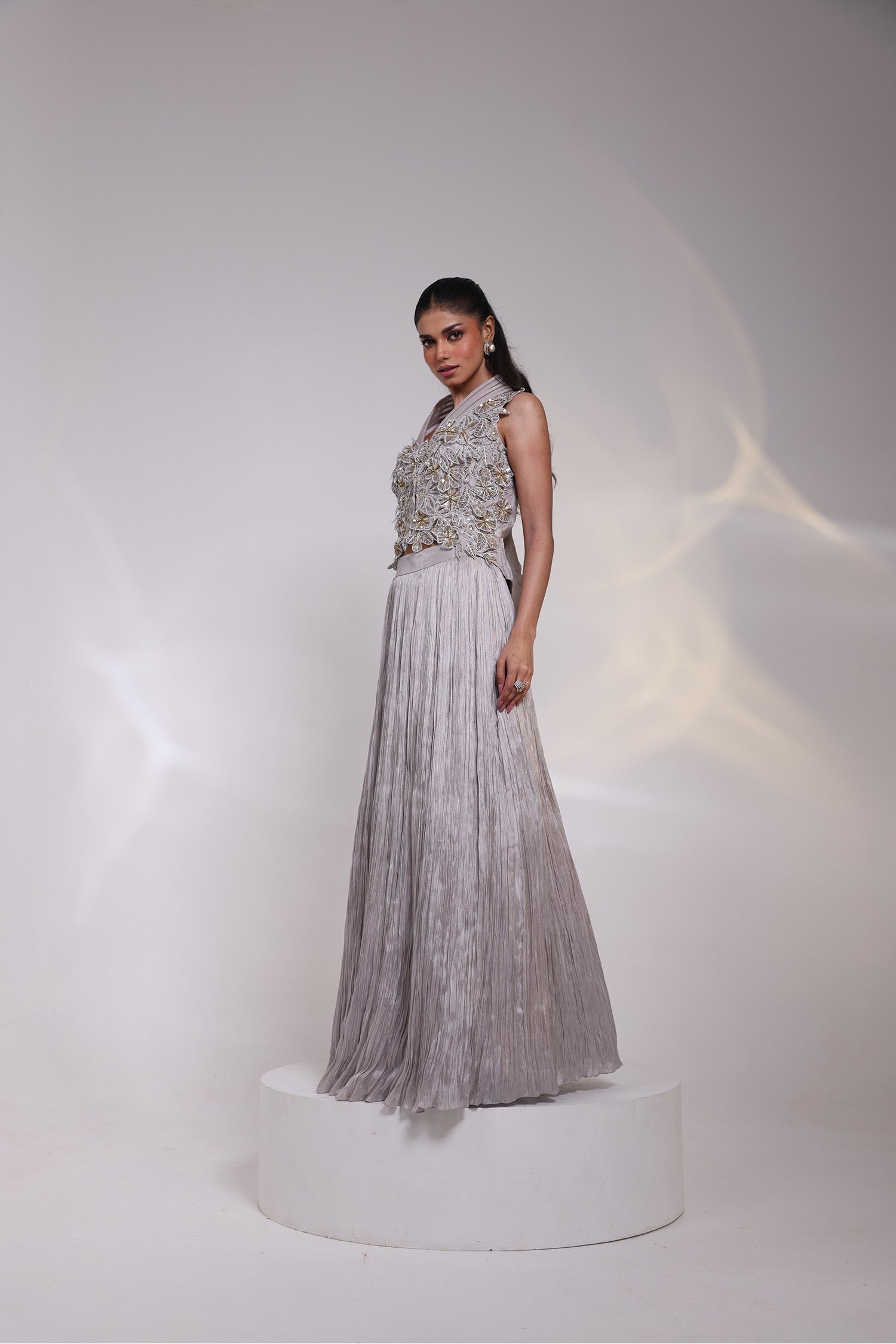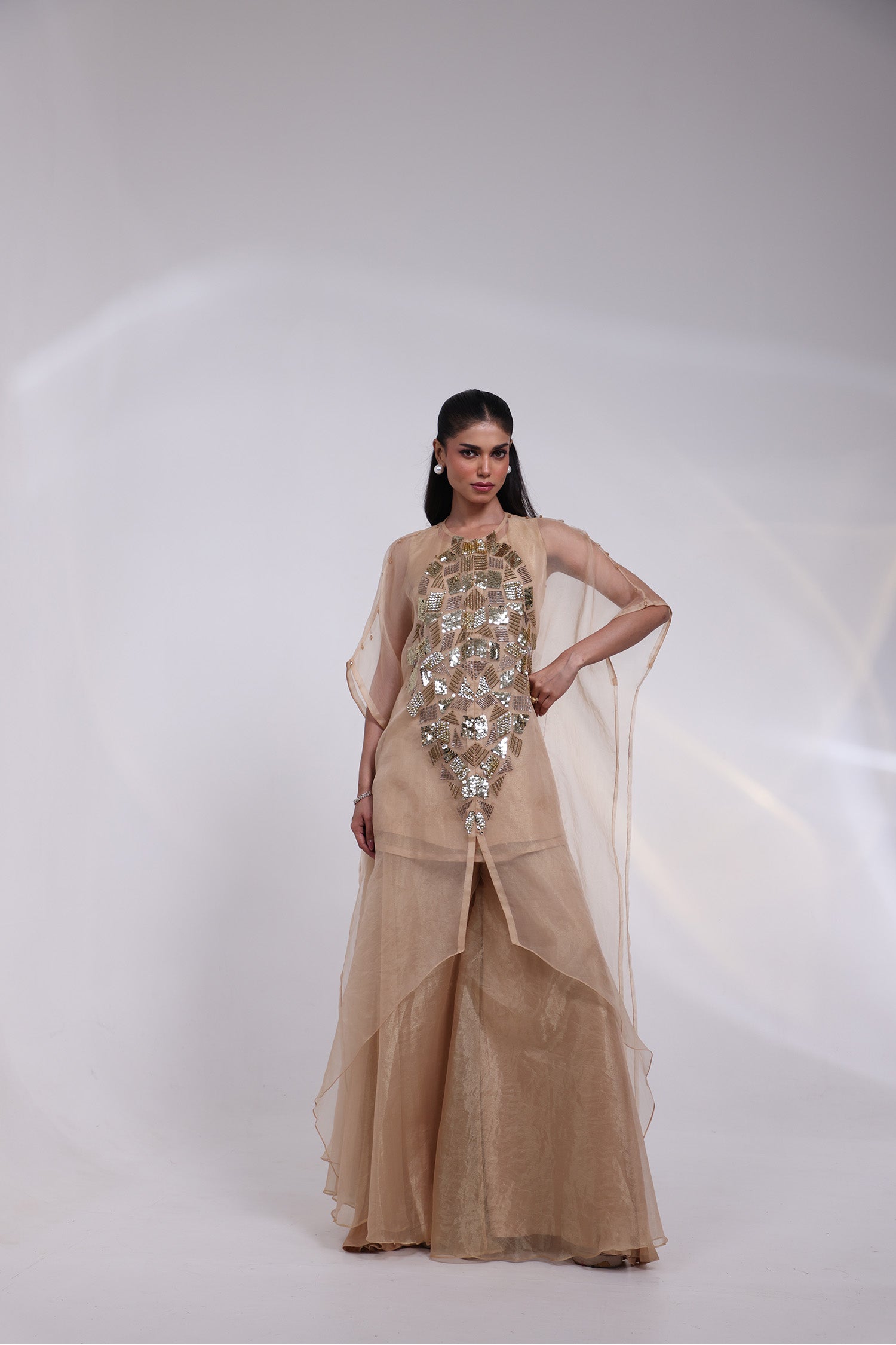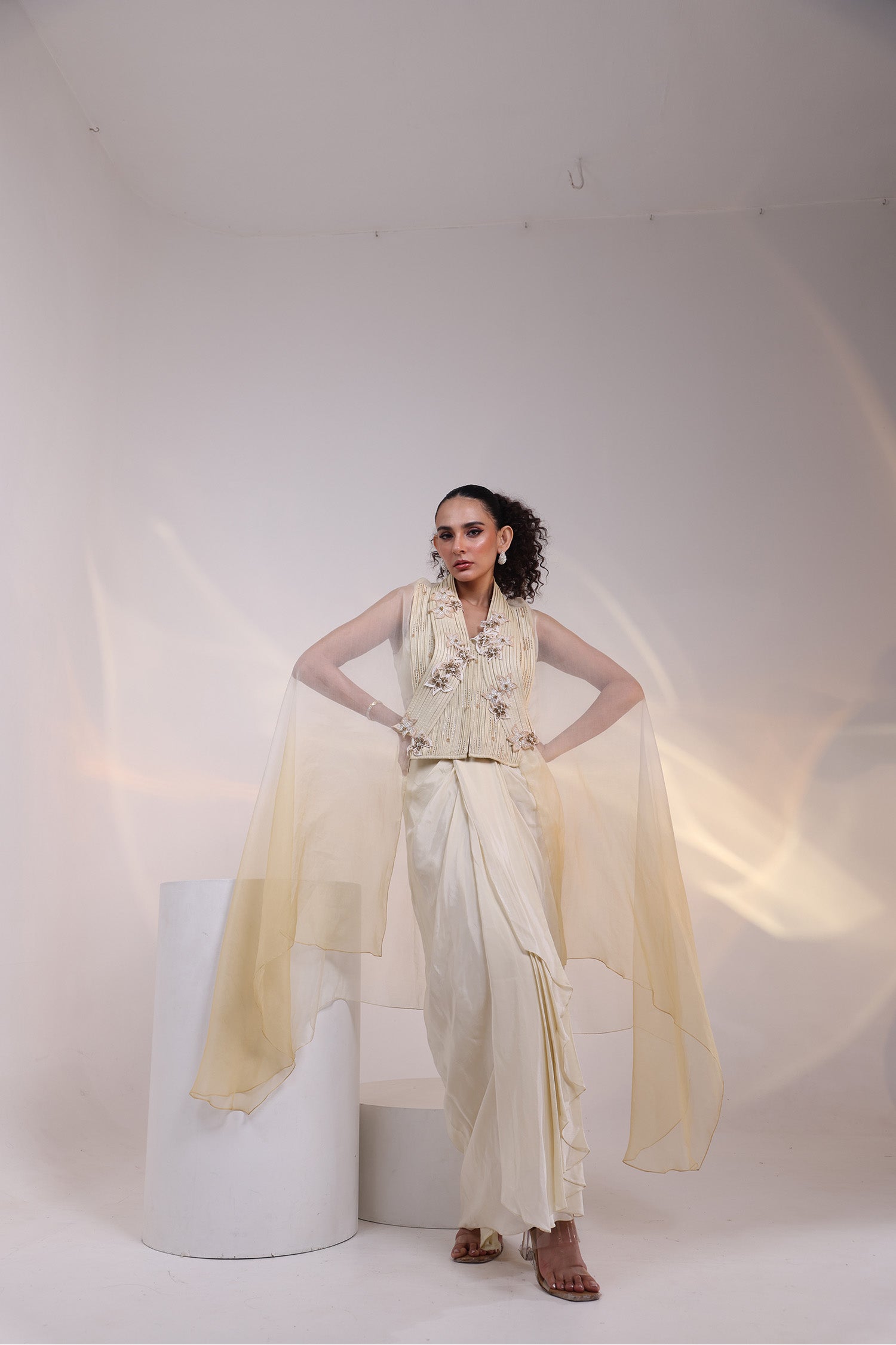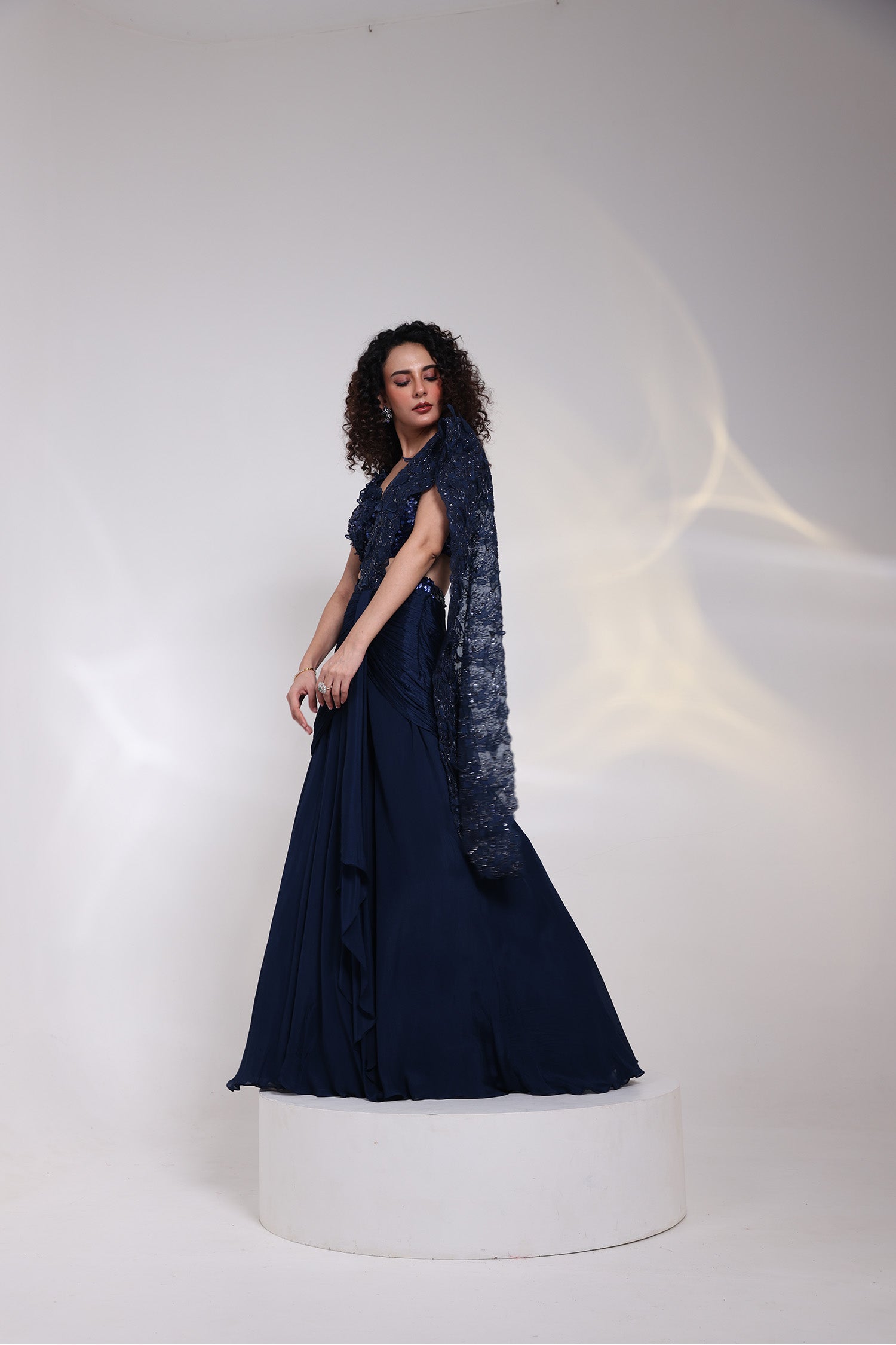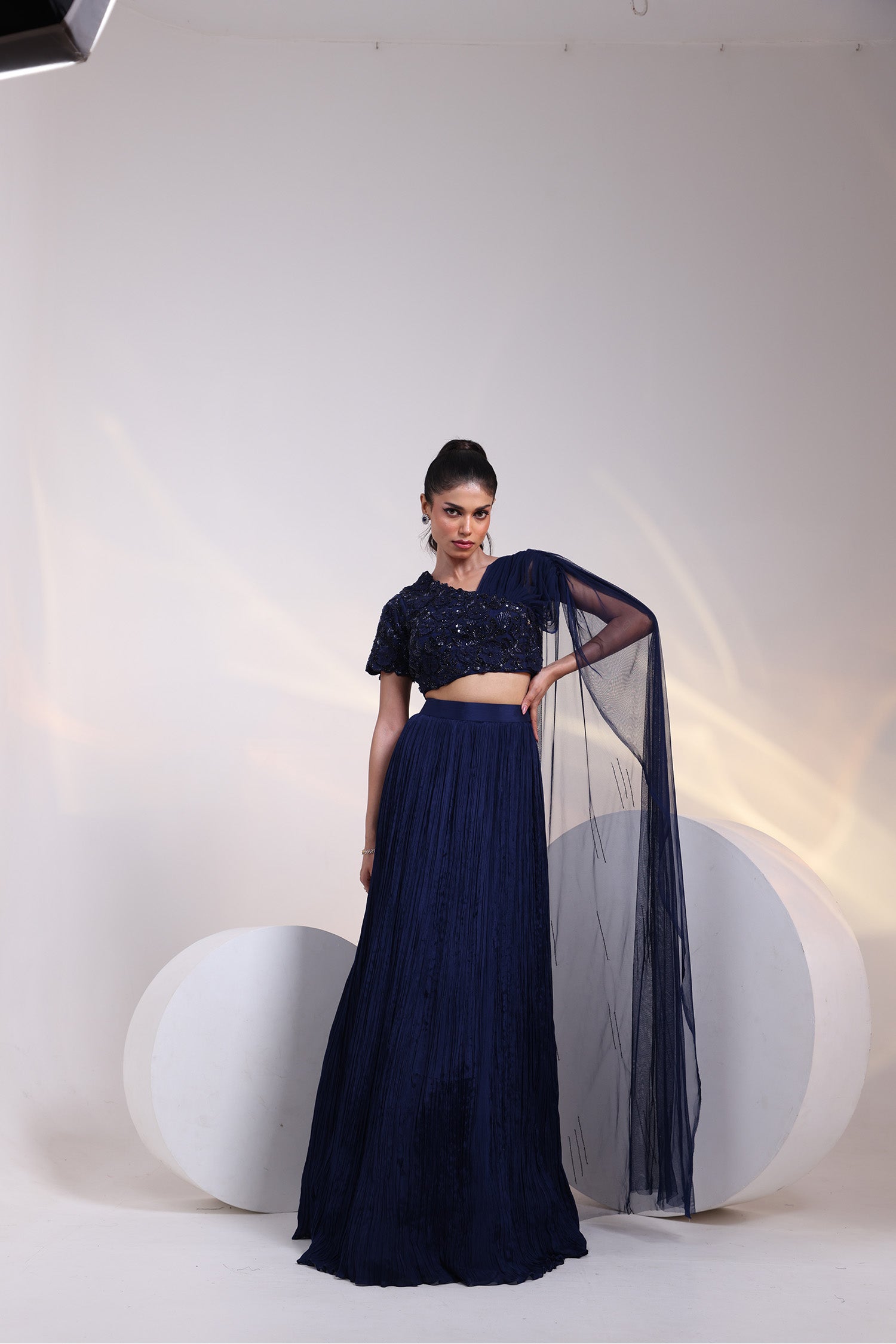 Add drama to your wardrobe with our drape skirt set selection. These skirts come with coordinated tops or embellished blouses that complement each curve while allowing movement and ease. Ideal for mehendi ceremonies, festive dinners, or photo shoots, these cape skirt sets embrace the playful and artistic side of Indo-western fashion. From layered tulles to ruched satins and metallic finishes, our skirts offer a vibrant spin on traditional silhouettes. If you're building your collection of versatile Indo western outfits, don't skip this trend-forward category at Fashefy Women.