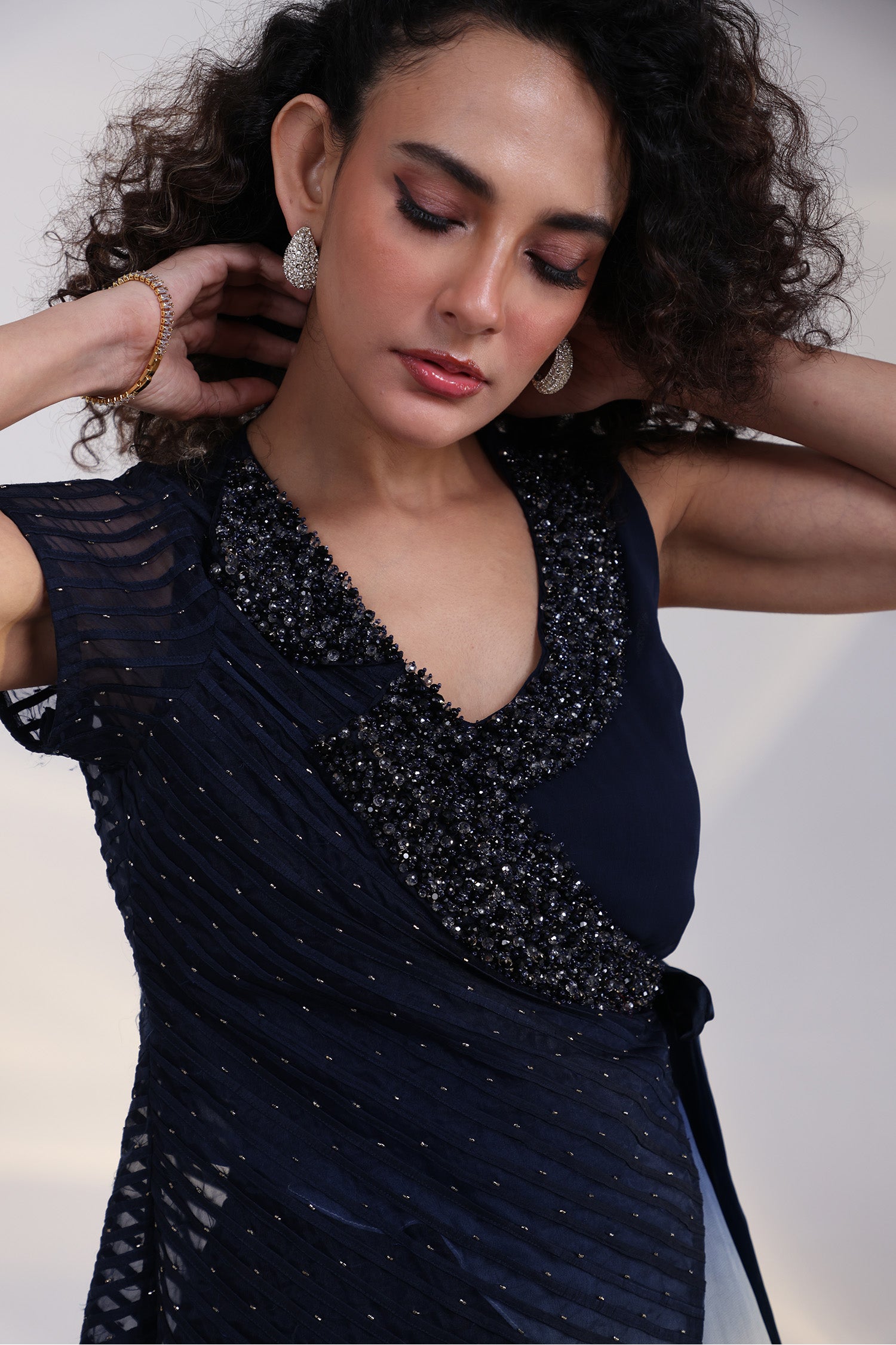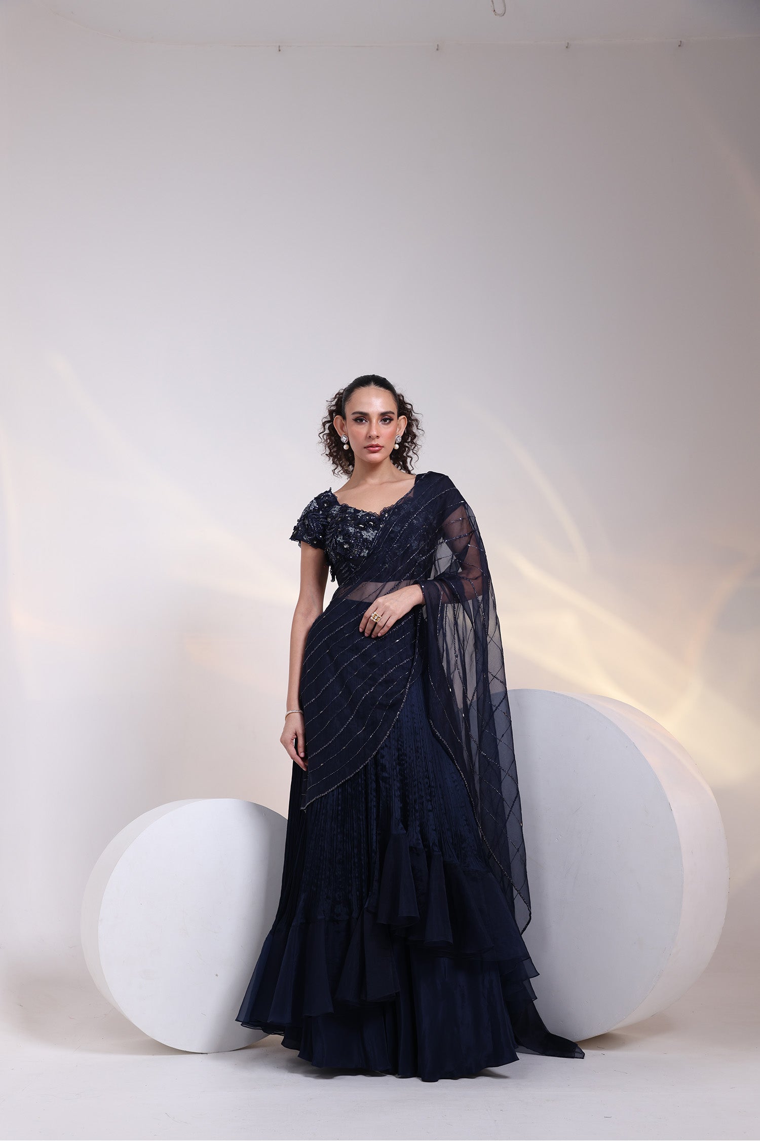 Fashefy Women Sarees have always held a special place in Indian fashion, and at Fashefy Women, we give them a refreshing makeover. Our Indo Western Sarees are designed to combine the grace of traditional draping with modern cuts and experimental elements. Expect ready-to-wear fashefy women's sarees with pre-stitched pleats, bold ruffles, off-shoulder blouses, and metallic hues that are perfect for both traditional functions and high-end parties. These draped sarees bring an innovative approach to the classic staple, capturing the spirit of fancy Indo-Western outfits through a sophisticated yet daring lens. Style them with minimal jewelry and modern heels for a stunning look.