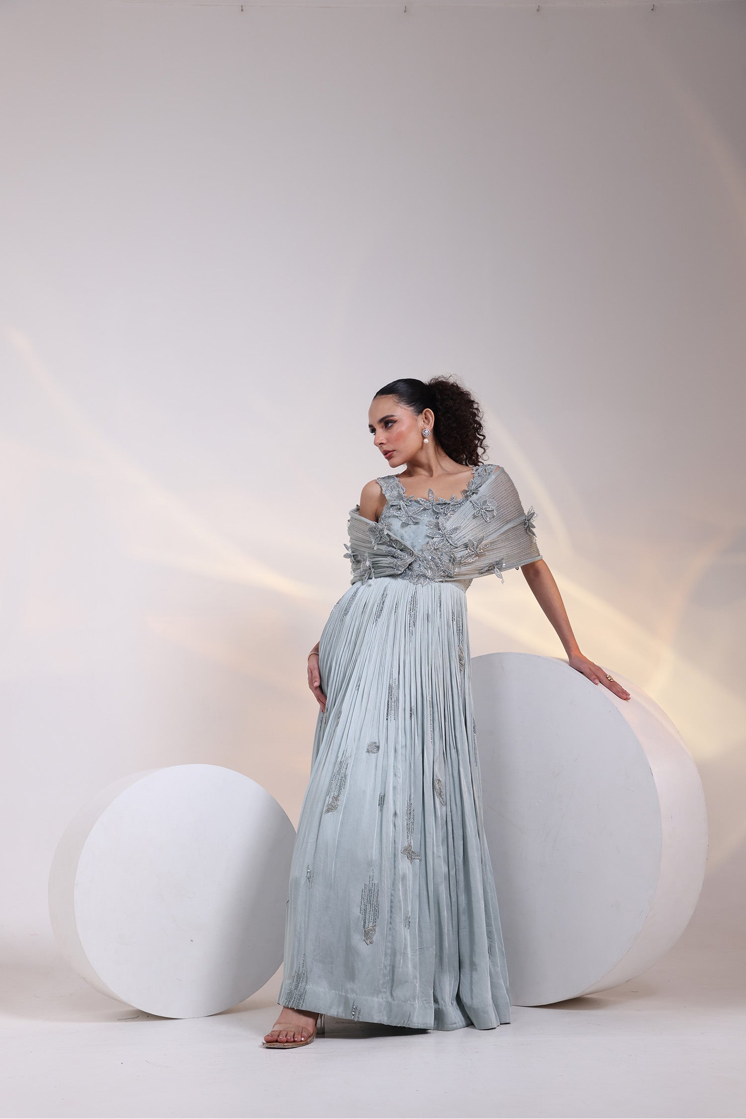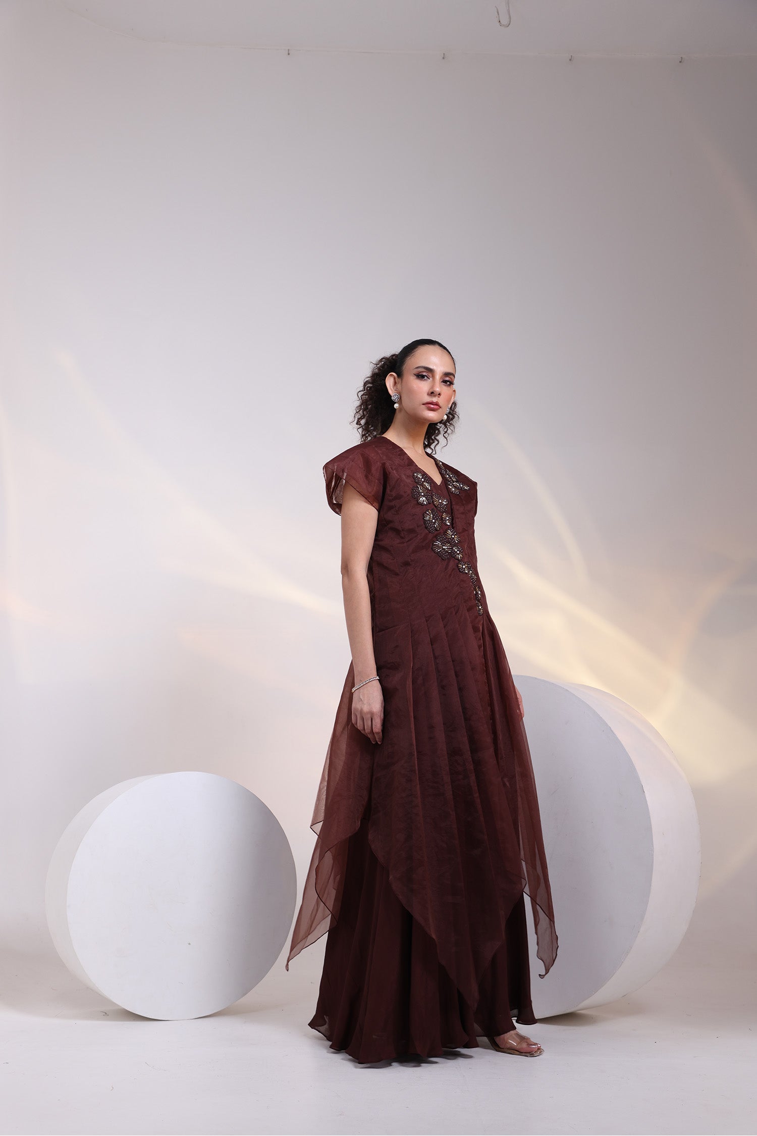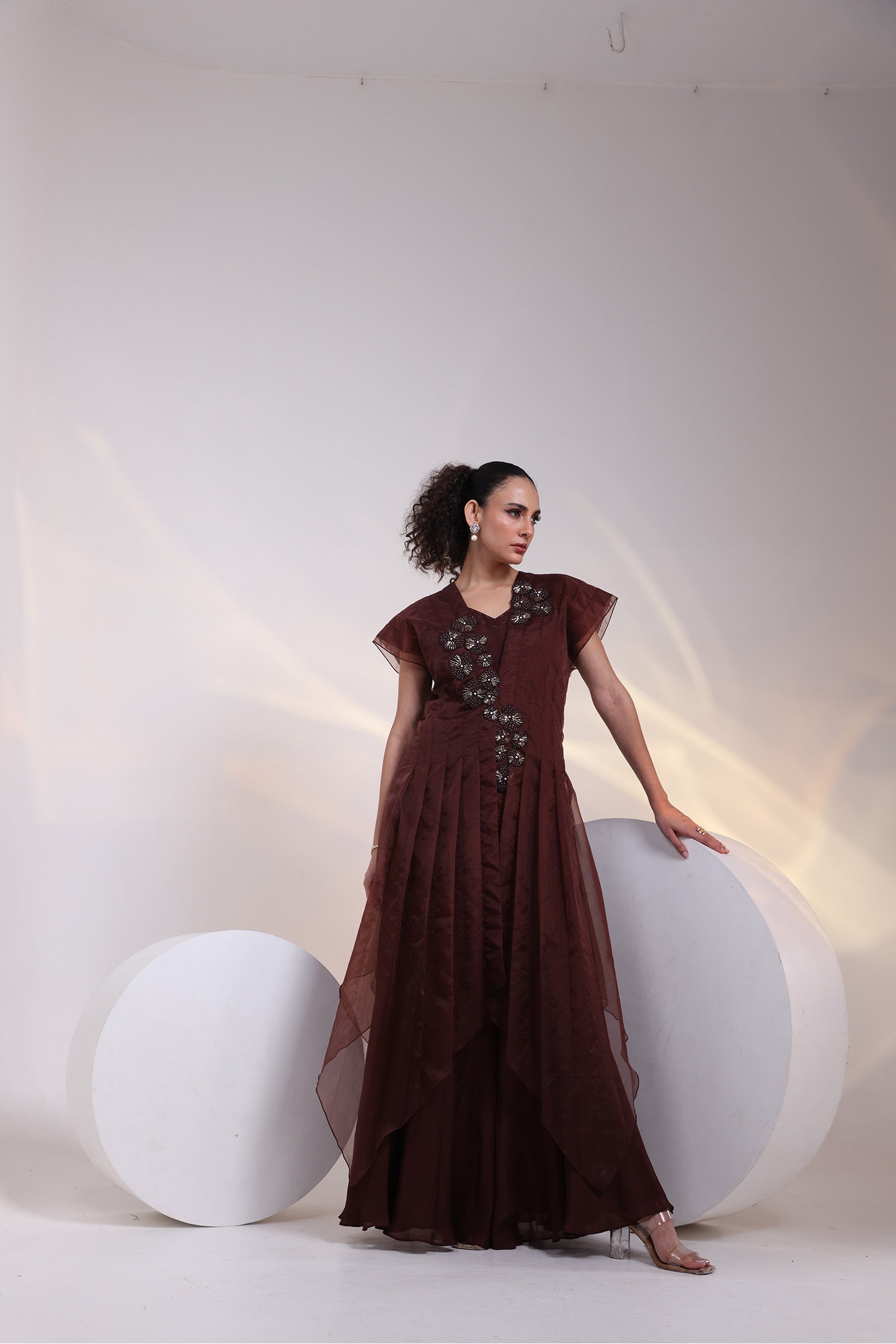 Make a show-stopping entrance with our curated selection of party wear gown styles. These gowns take cues from western red carpets but are brought to life with Indian craftsmanship—think intricate zardosi, mirror work, and rich fabrics like velvet and organza. Whether you're attending a wedding reception or an upscale gala, these gowns make it easy to express your personal style through fusion fashion. They are the ultimate embodiment of how Indo western gowns for wedding can make any woman feel royal and radiant with Fashefy Women..