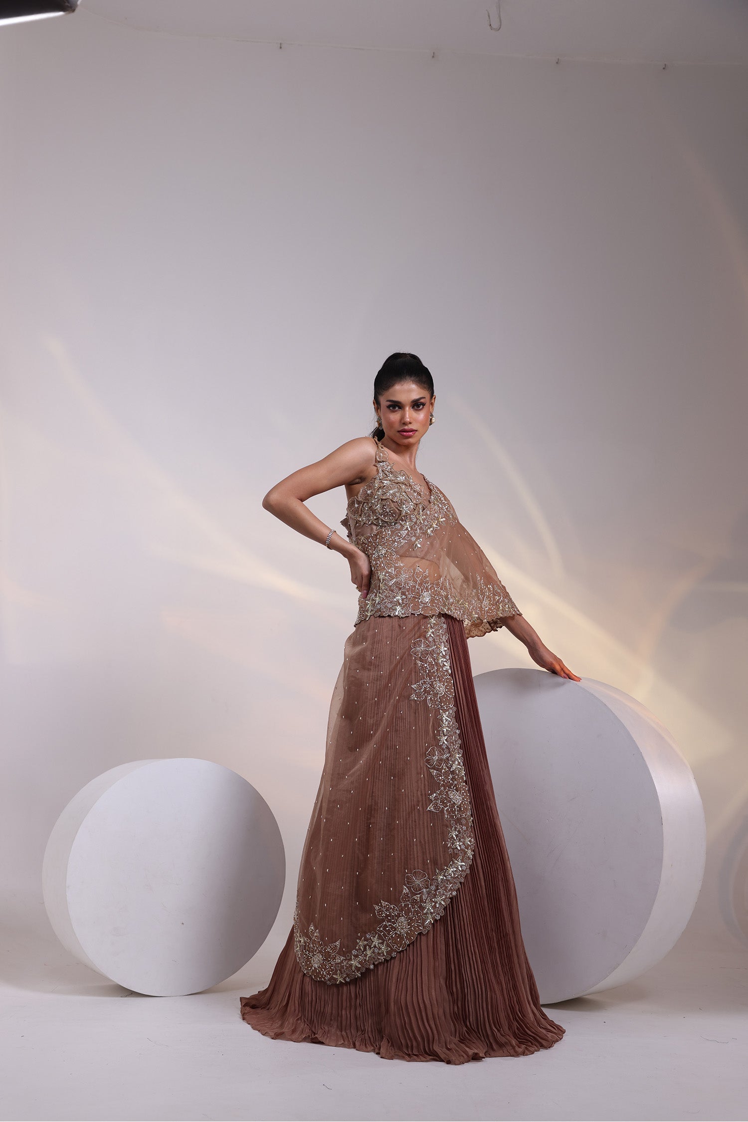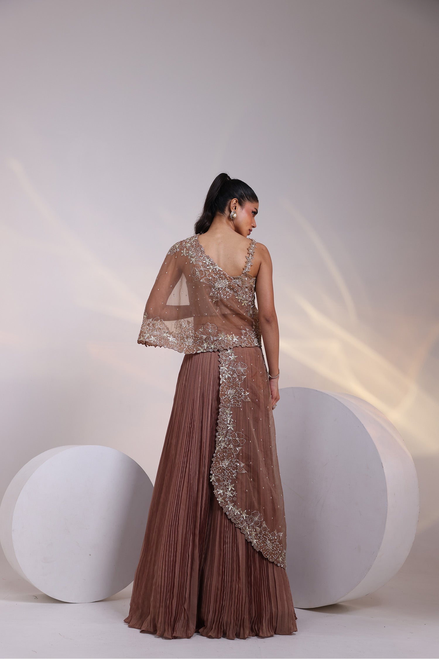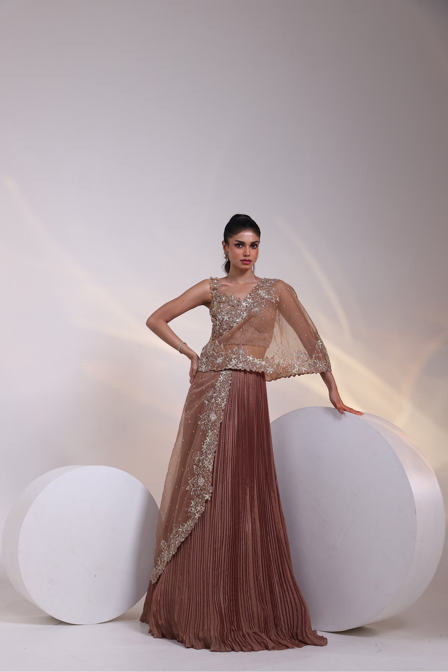Add drama to your wardrobe with our drape skirt set selection. These skirts come with coordinated tops or embellished blouses that complement each curve while allowing movement and ease. Ideal for mehendi ceremonies, festive dinners, or photo shoots, these cape skirt sets embrace the playful and artistic side of Indo-western fashion. From layered tulles to ruched satins and metallic finishes, our skirts offer a vibrant spin on traditional silhouettes. If you're building your collection of versatile Indo western outfits, don't skip this trend-forward category at Fashefy Women.