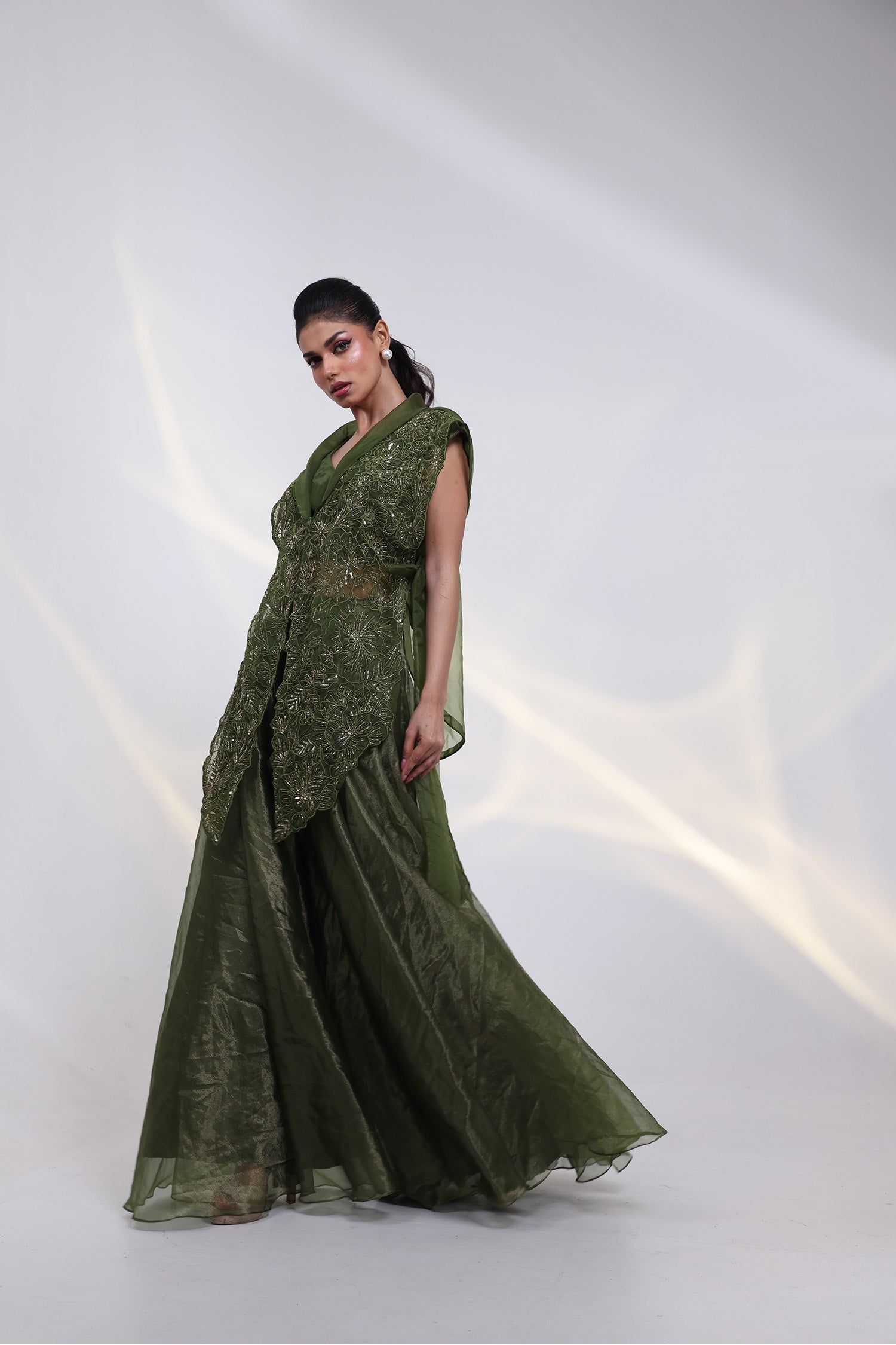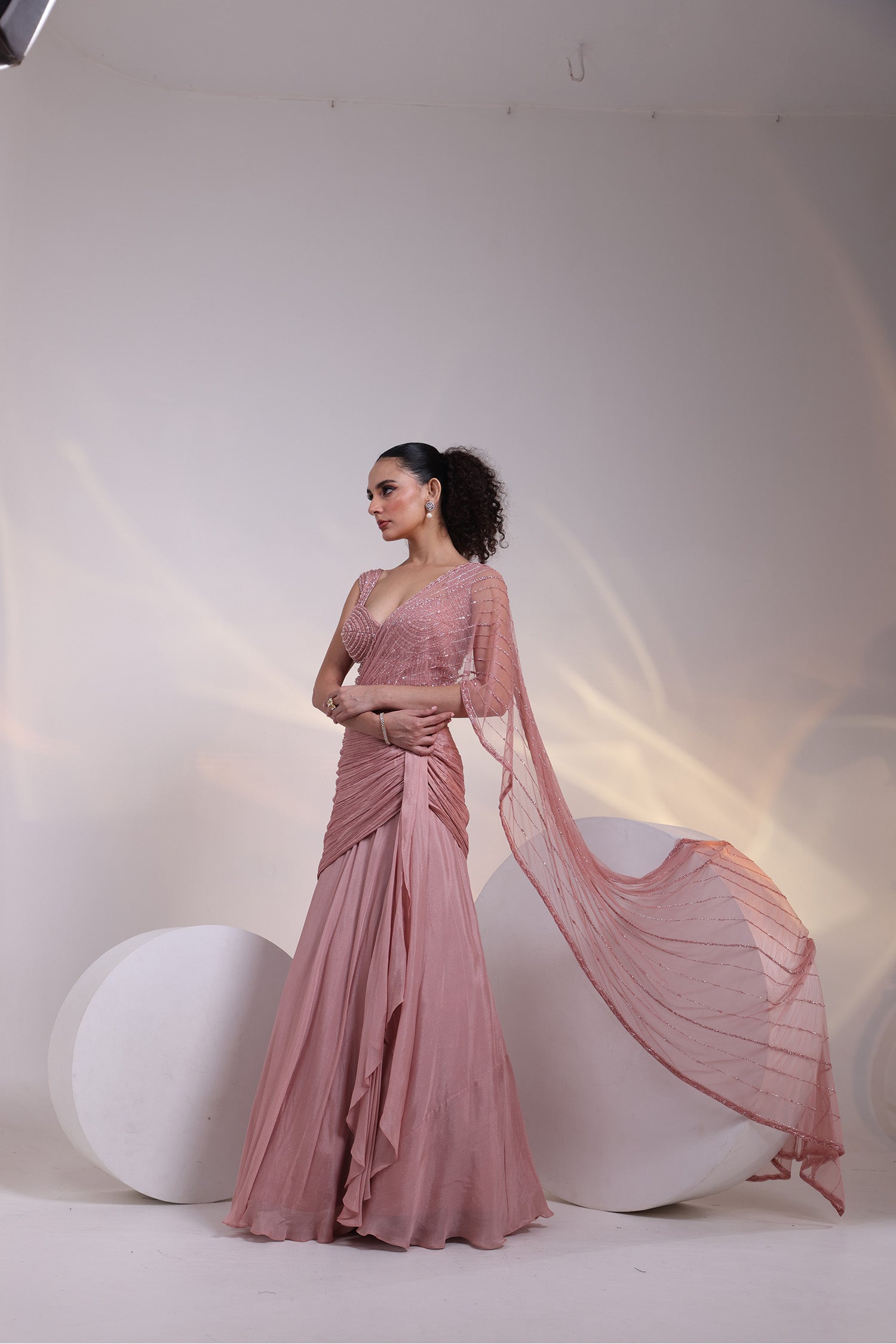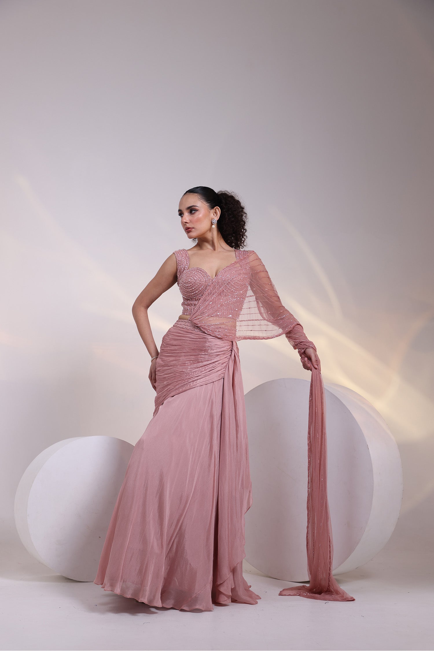 Add drama to your wardrobe with our drape skirt set selection. These skirts come with coordinated tops or embellished blouses that complement each curve while allowing movement and ease. Ideal for mehendi ceremonies, festive dinners, or photo shoots, these cape skirt sets embrace the playful and artistic side of Indo-western fashion. From layered tulles to ruched satins and metallic finishes, our skirts offer a vibrant spin on traditional silhouettes. If you're building your collection of versatile Indo western outfits, don't skip this trend-forward category at Fashefy Women.