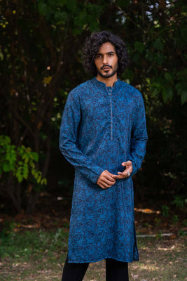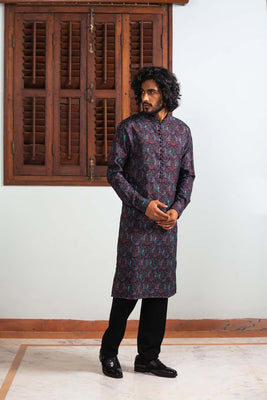 Introducing Brown Mosaic, a stunning Brown Printed Kurta adorned with a captivating mix of geometric placement and floral motifs. This kurta seamlessly combines the essence of nature with modern aesthetics, promising timeless style and grace. Paired best with black trousers due to kurta's black detail in the collar.