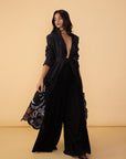 Trench : Intricate hand embroidered floral cutwork applique trench coat with detachable belt