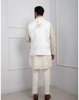 Lead the Way in Vivid Gold Work on Ivory Silk Nehru, Shimmering All the Way to Your Special Event.