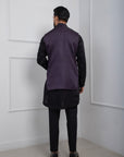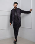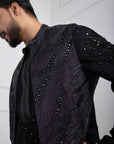 Make a Statement With Our Abstract Patterned Nehru in Dark Purple, Decked With Shimmering Mirror Embellished Across the Nehru in Waves.