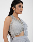 Radiate Glamour With This Shimmer Drape Set, Combining a Flowing Silhouette With a Dazzling Finish for a Captivating and Stylish Look