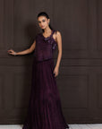 Elevate your style with this luxurious plum lehenga set. Featuring a pleated lehenga skirt paired with a stunning draped cape-style blouse, intricately adorned with hand-beaded embellishments. The ensemble exudes grace and sophistication, making it perfect for weddings, receptions, and festive celebrations. A contemporary twist on traditional elegance!