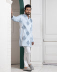 Step into elegance with this regal sky-blue kurta set for men. Made from high-quality fabric, the kurta is adorned with exquisite embroidery that adds a touch of luxury to your ethnic style. Paired with classic white trousers for a clean and sophisticated look, this outfit is perfect for weddings, festive celebrations, and cultural gatherings. Designed for comfort and style, it’s a timeless choice for the modern gentleman.