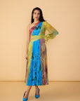 Trio of prints, one shoulder dress with cut out side detailing and part hand micro pleating